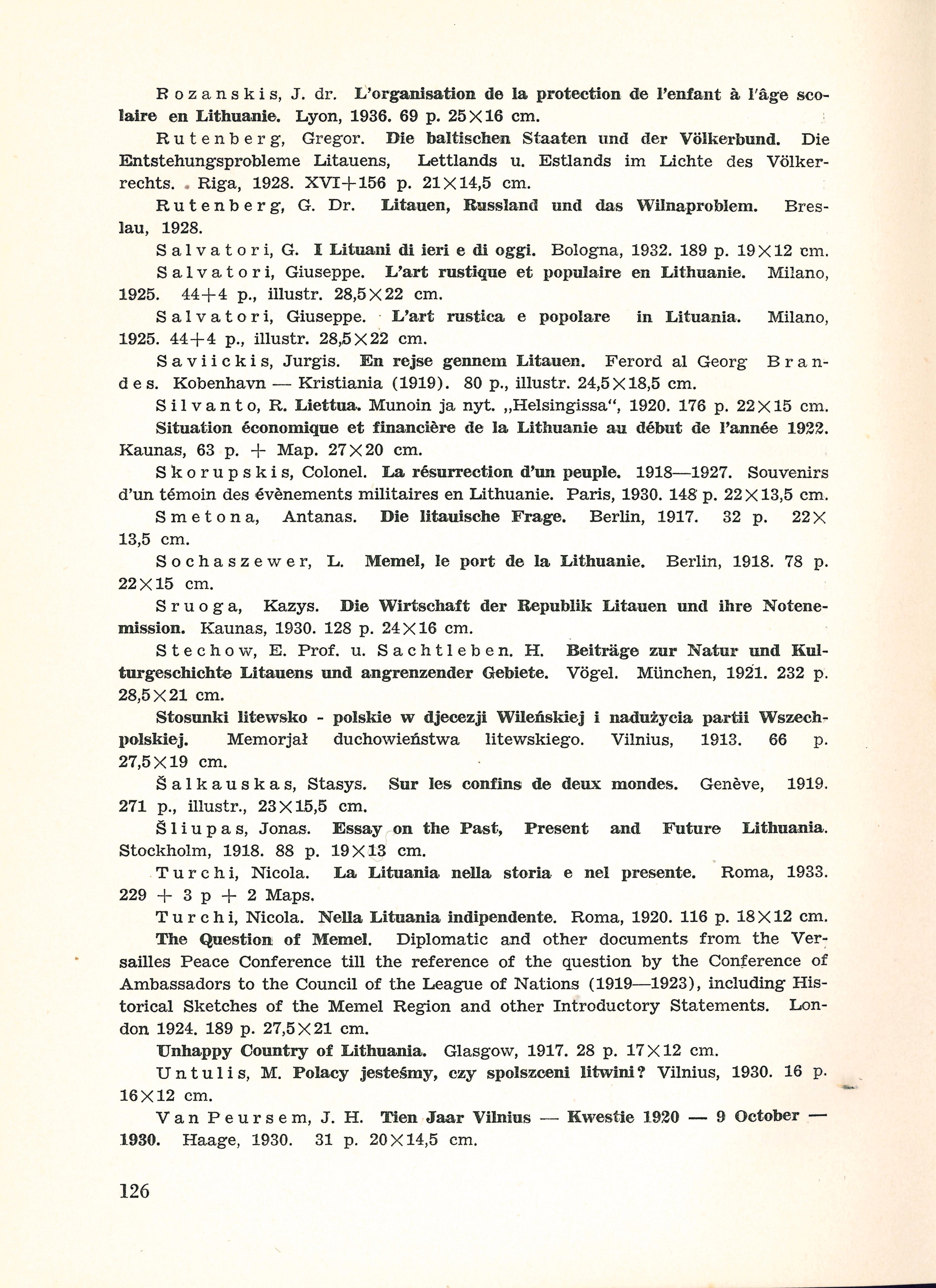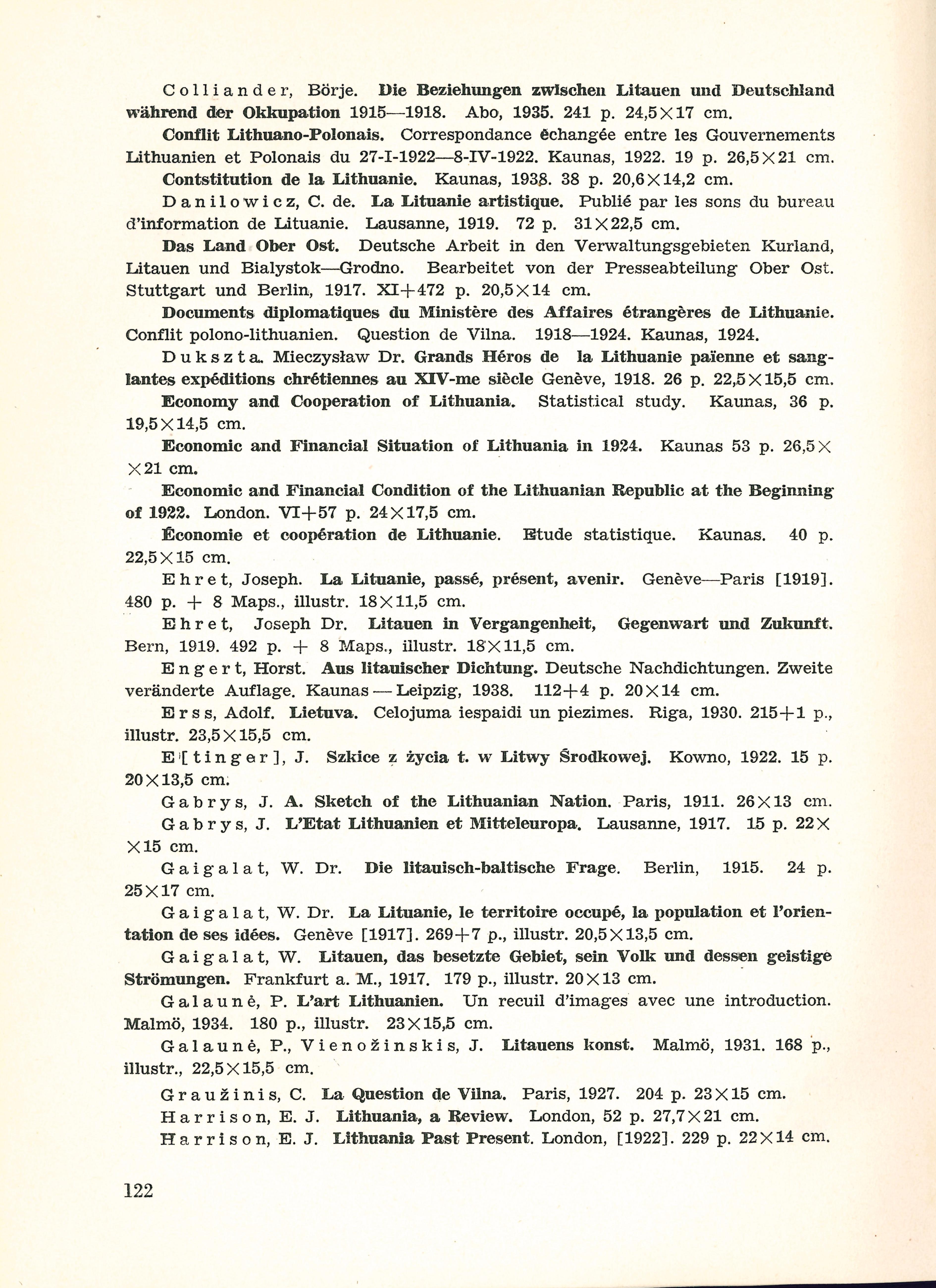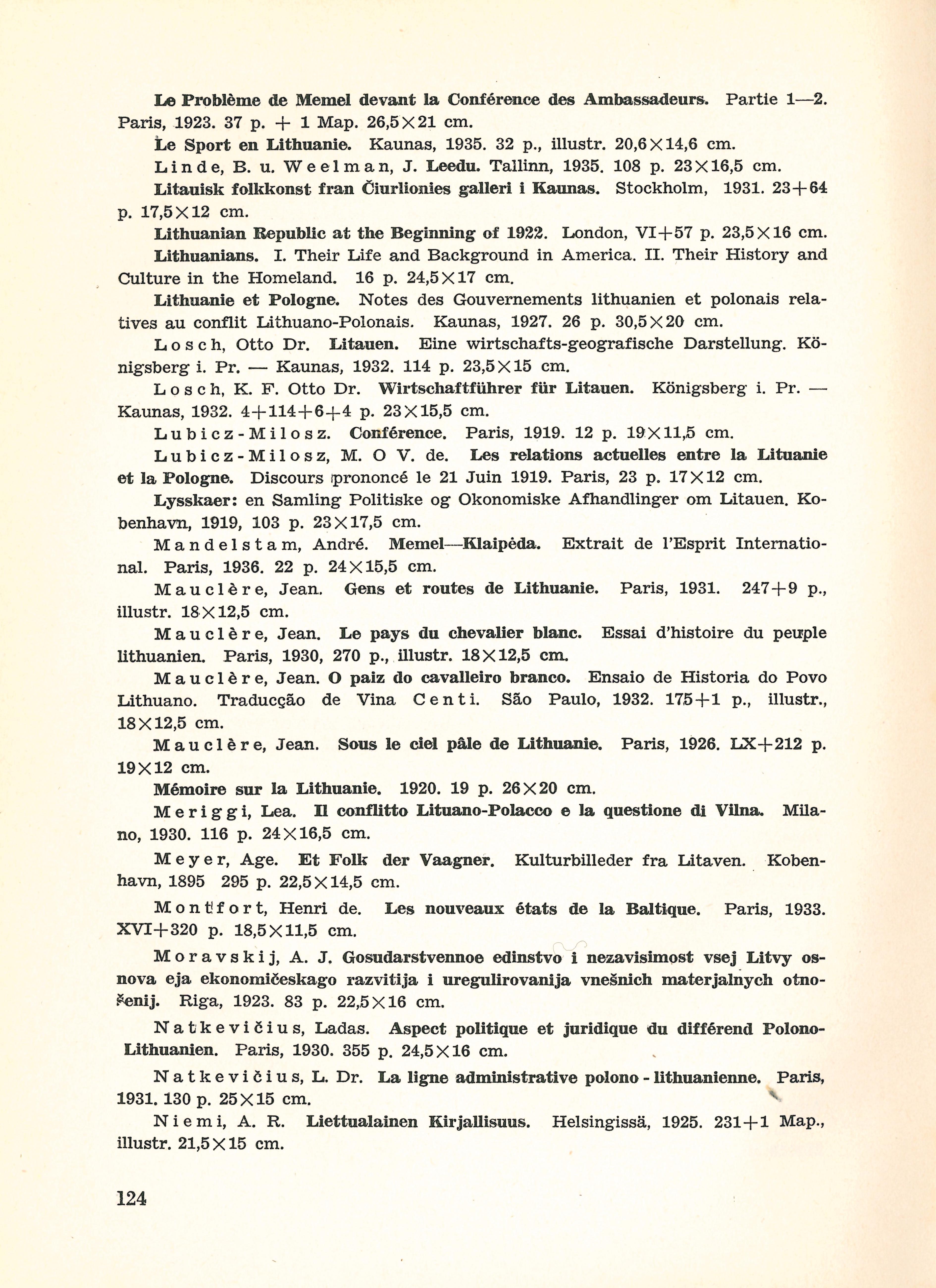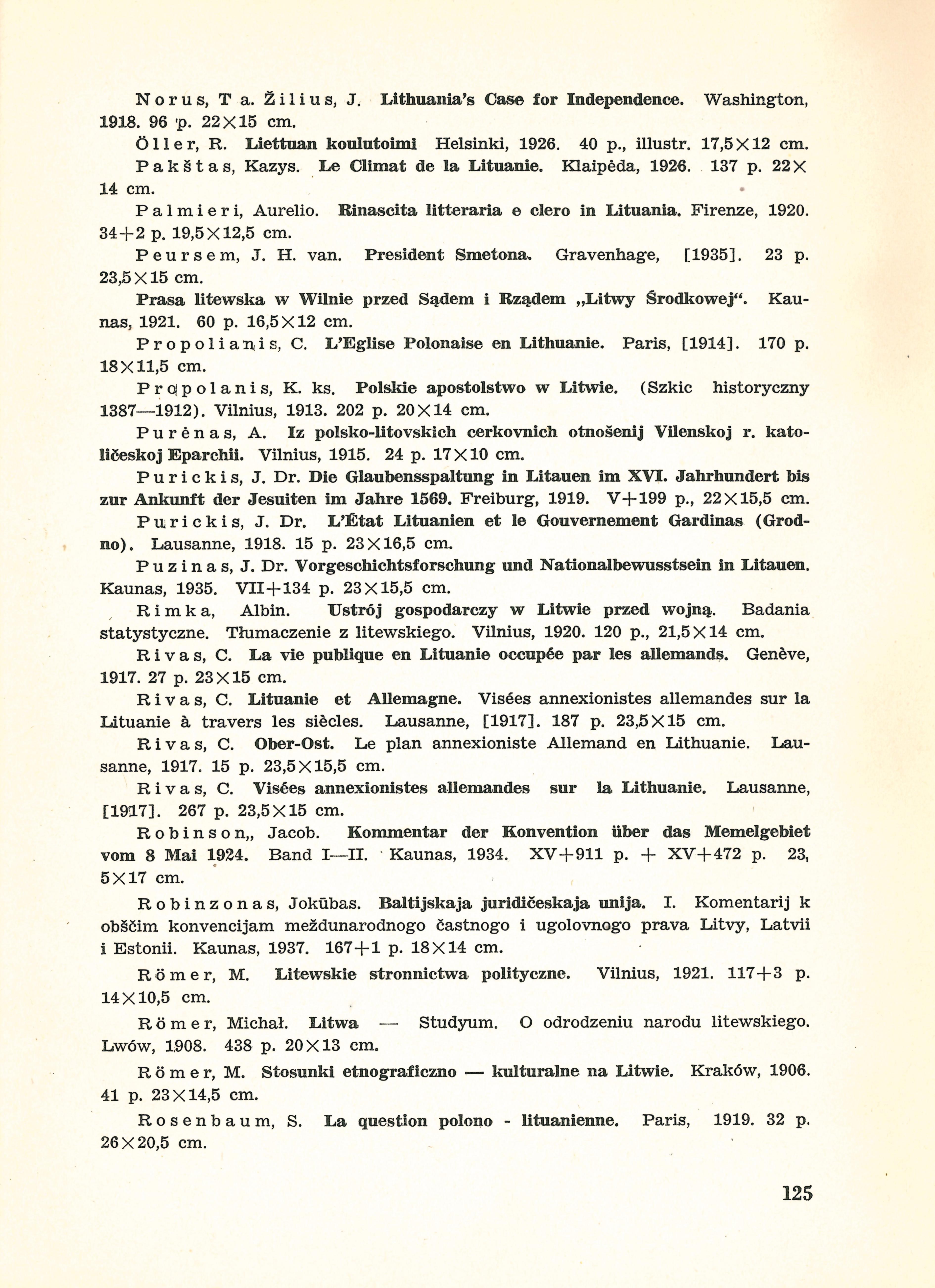 A List of books written in foreign languages on Lithuania / compiled by I. Kisinas. – Iš: Lithuanian culture / edited by Stepas Vykintas. – Kaunas : The Committee for the Celebration of the Twentieth Anniversary of the Independence of Lithuania, 1938. – p. 121-127.