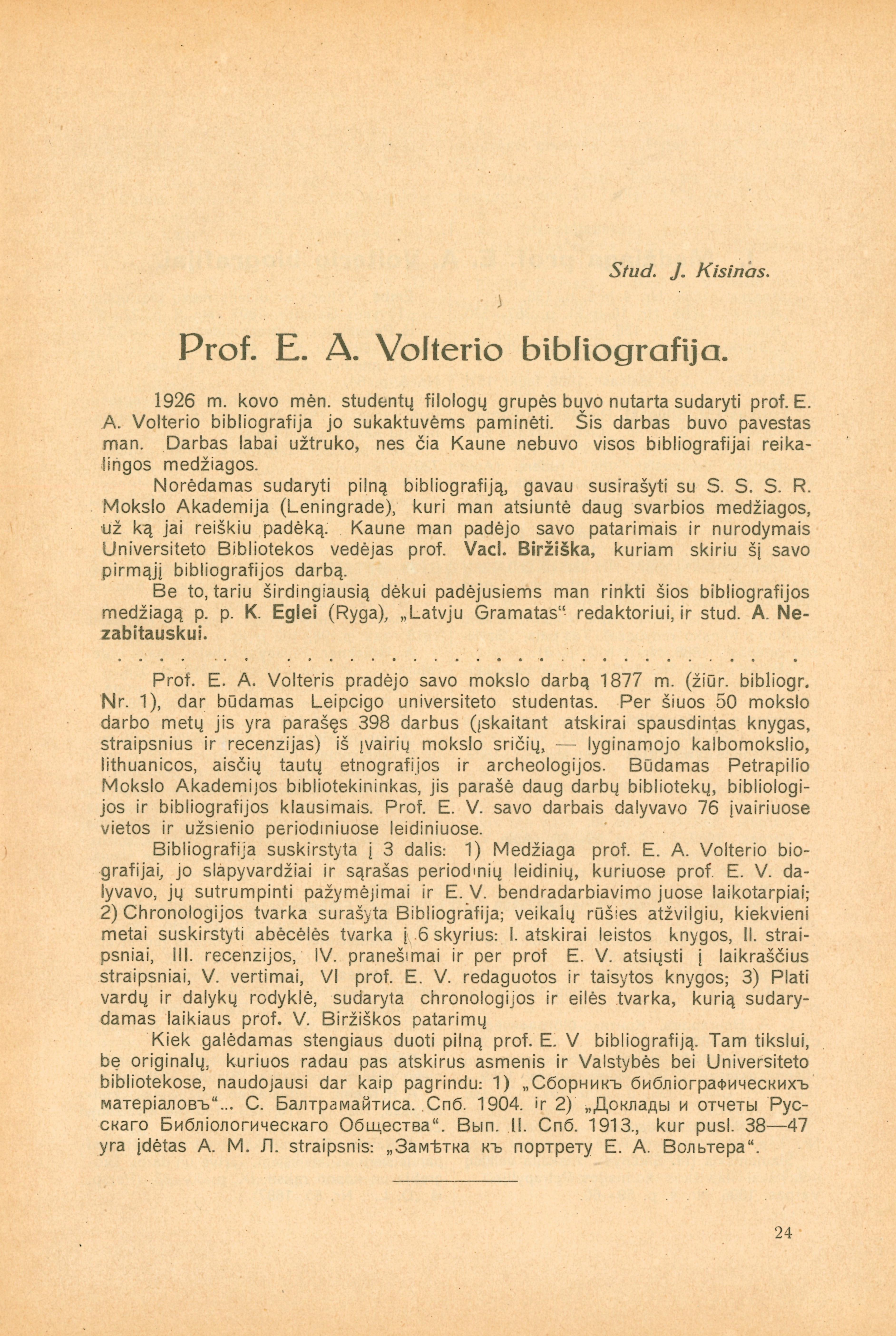 | Antraštė | Prof. E. A. Volterio bibliografija (1928) [lt] |