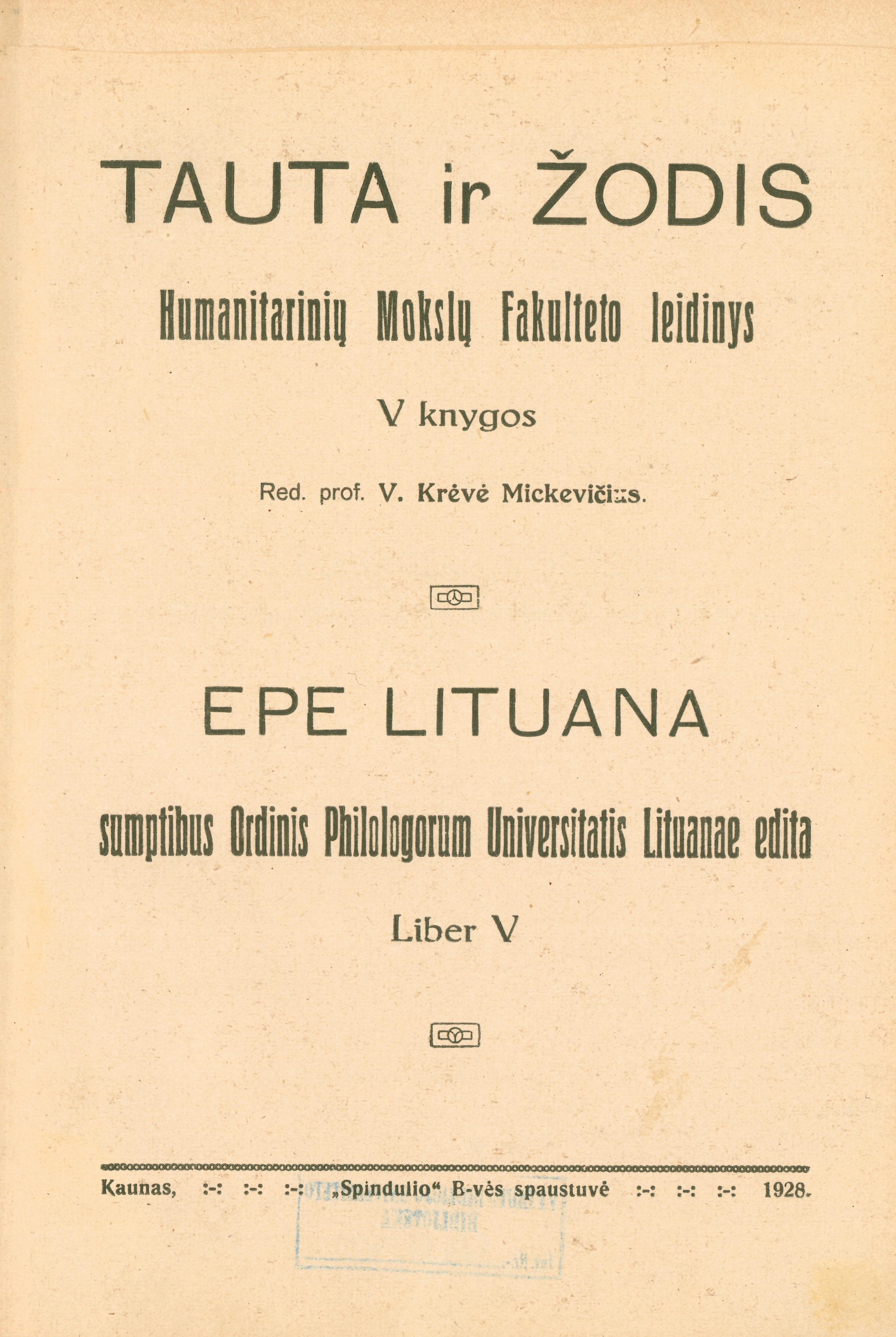 | Published | Kaunas : Spindulio bendrovės spaustuvė, 1928 |