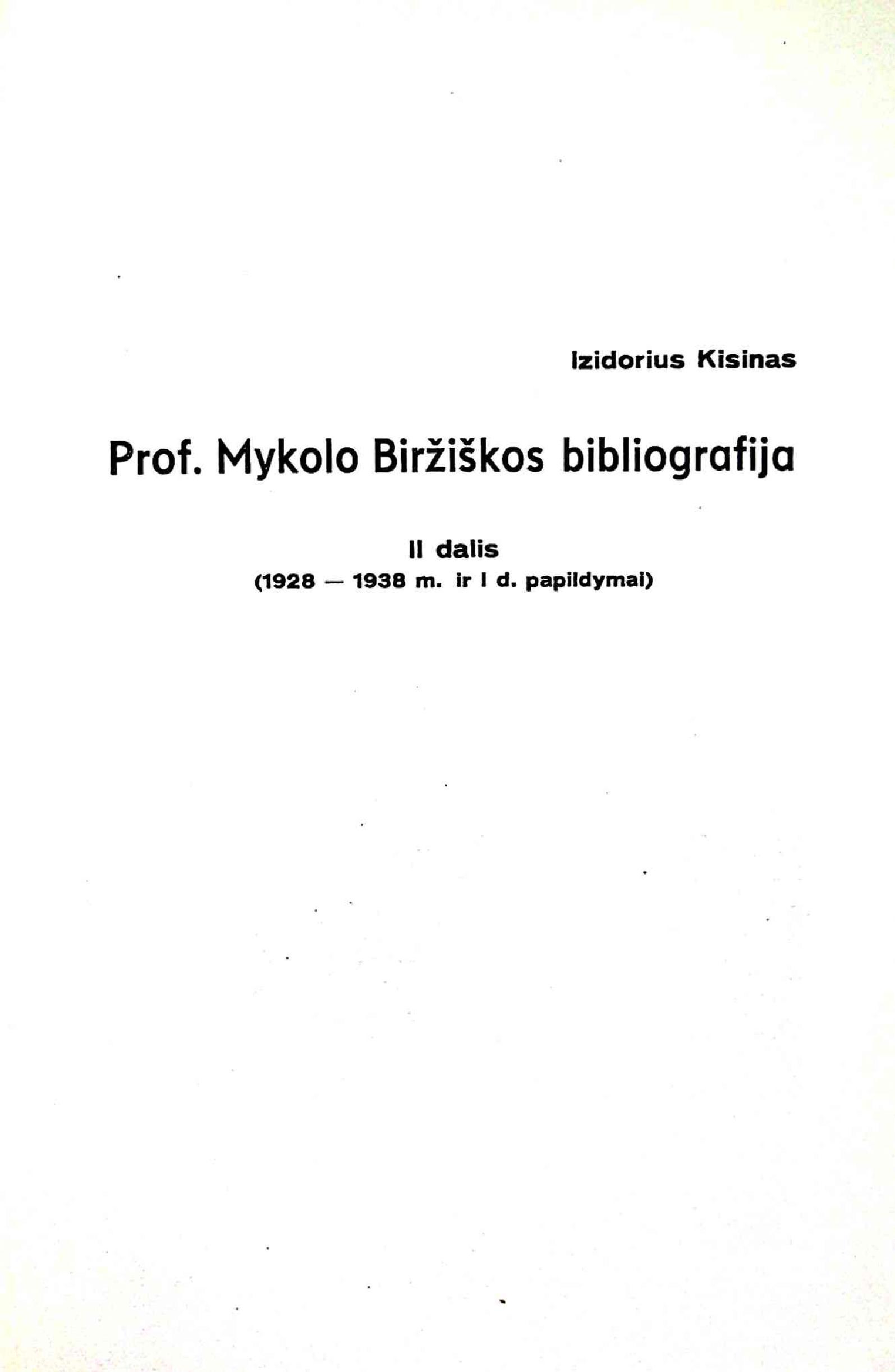 | Antraštė | Prof. Mykolo Biržiškos bibliografija : II dalis (1938) |