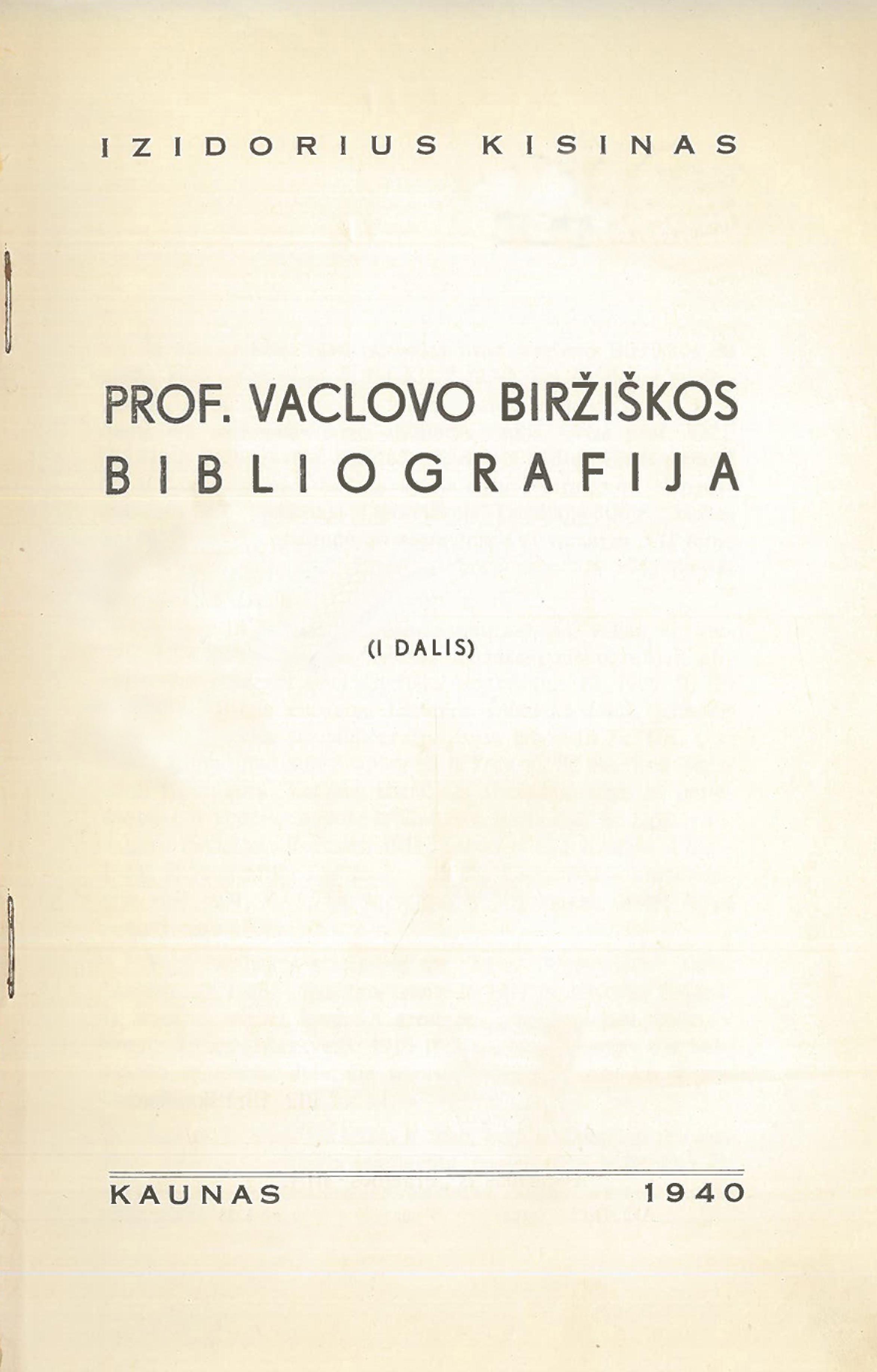 | Antraštė | Prof. Vaclovo Biržiškos bibliografija : I dalis (1940) |