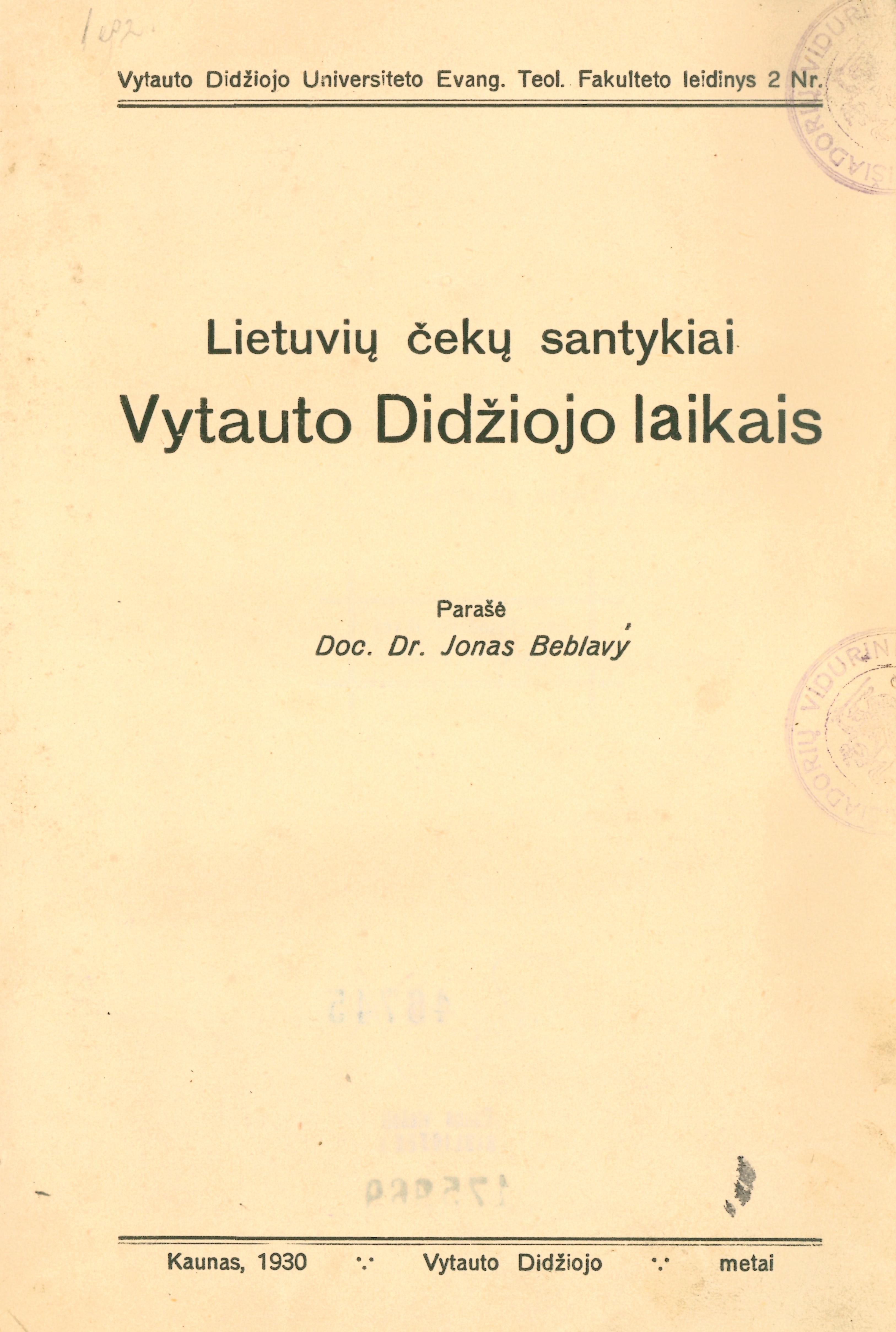 | Published | Kaunas: [VDU Evangelikų teologijos fakultetas], 1930 |