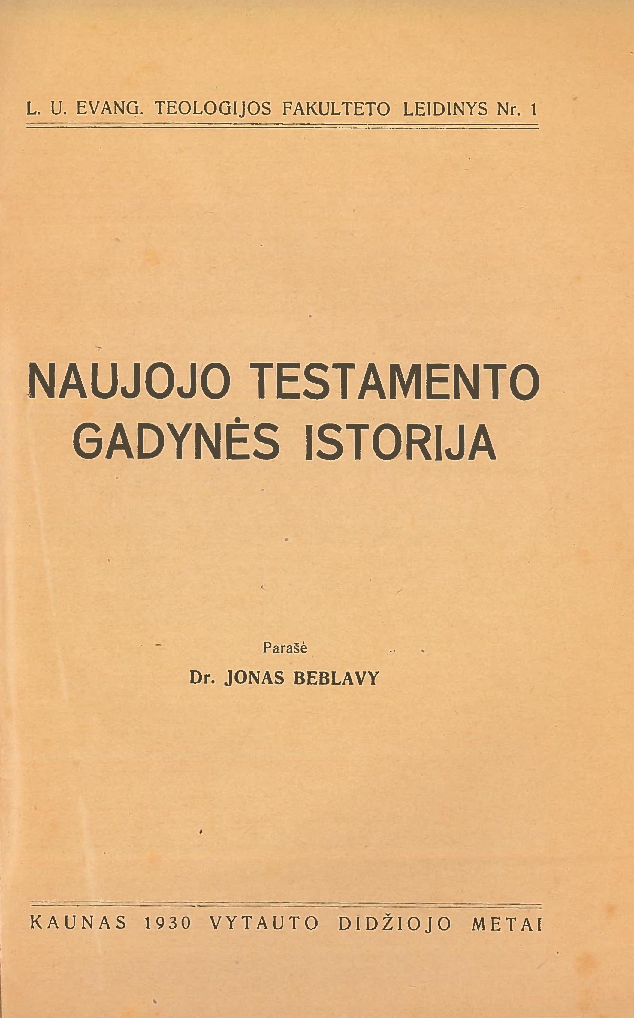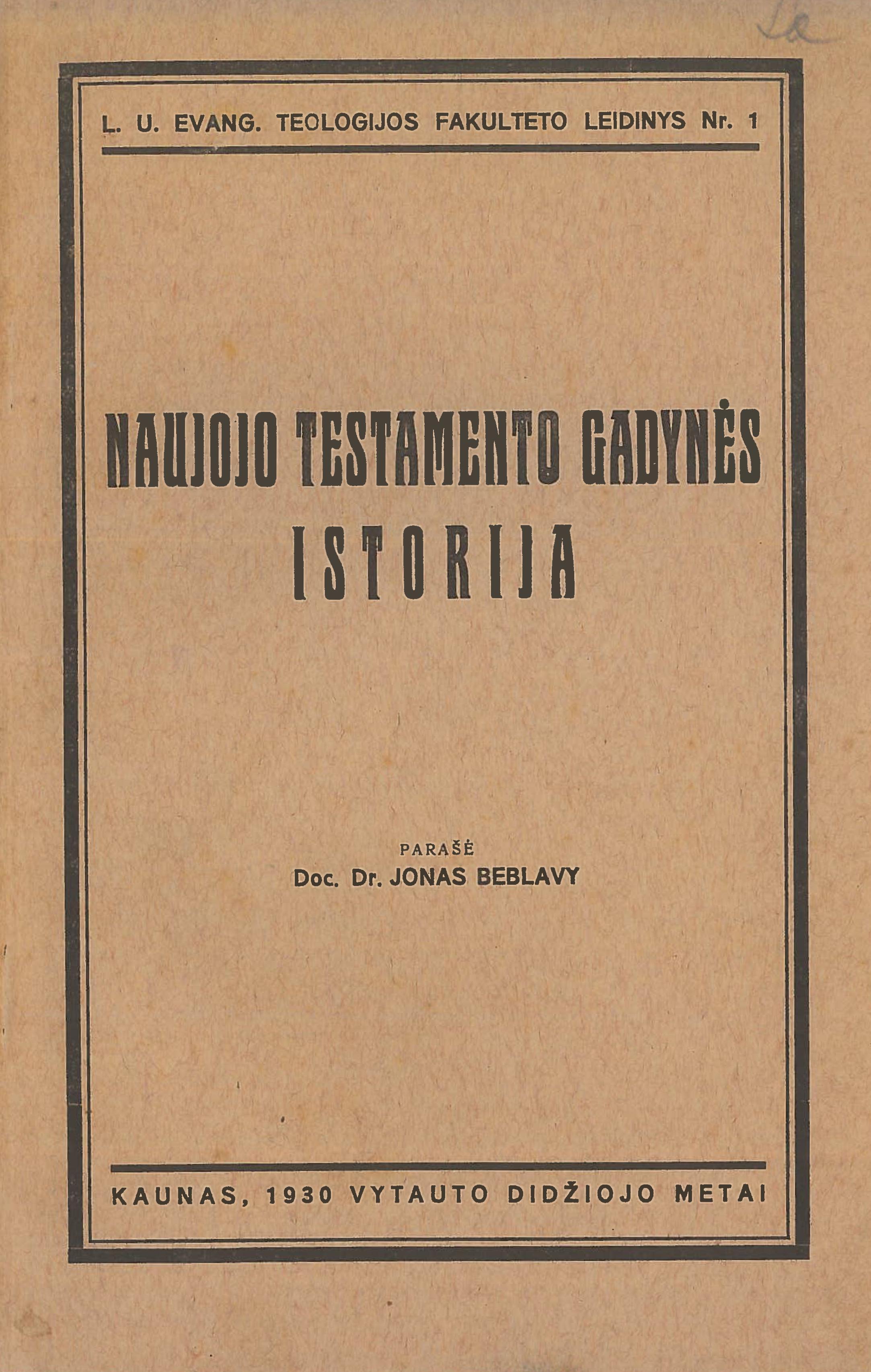 | Published | Kaunas: [Lietuvos universiteto Evangelikų teologijos fakultetas], 1930 |