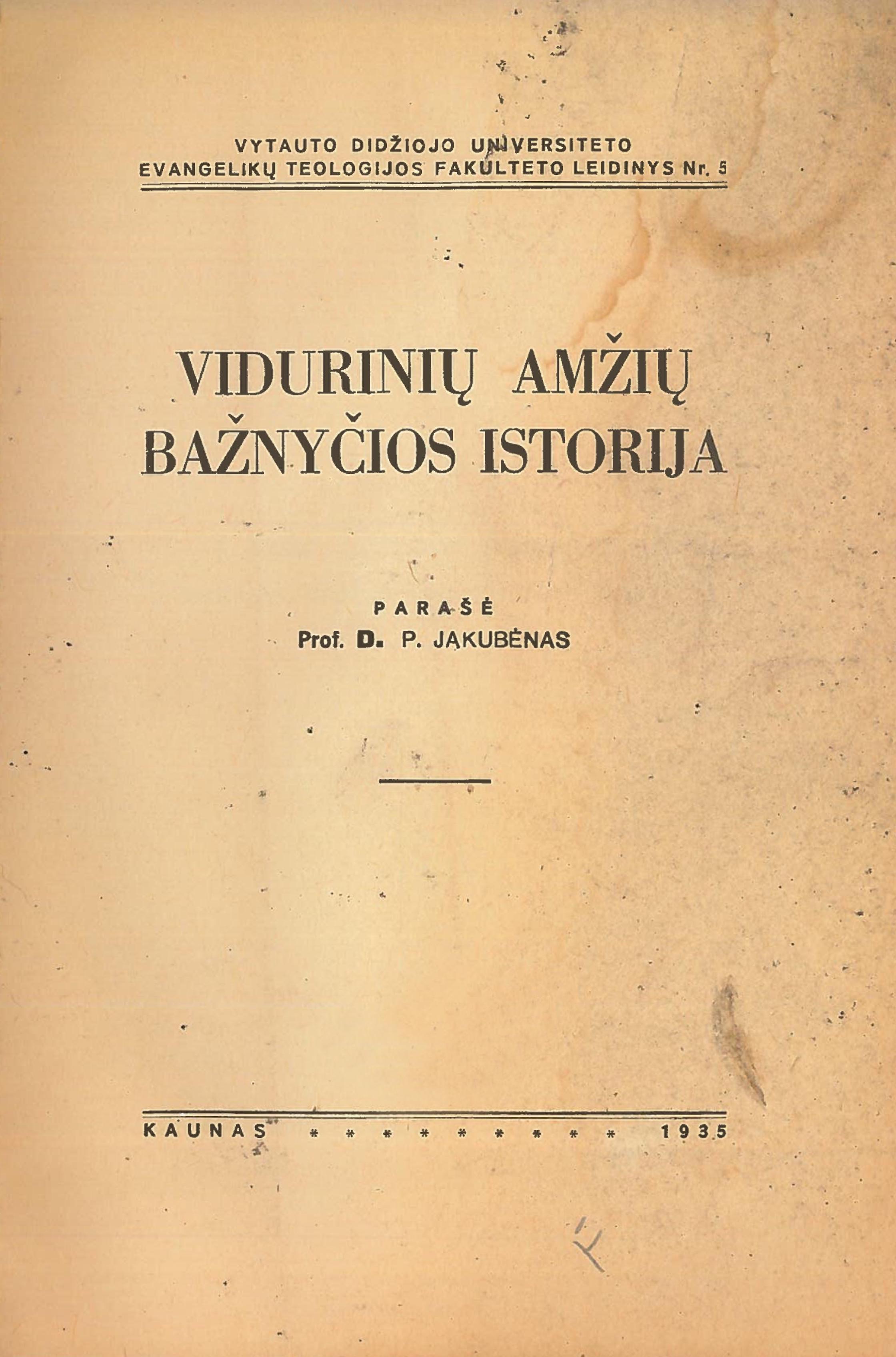 Vidurinių amžių bažnyčios istorija / parašė prof. d. P. Jakubėnas. – Kaunas, 1935. – 170 p. – (Vytauto Didžiojo universiteto Evangelikų teologijos fakulteto leidinys ; Nr. 5).