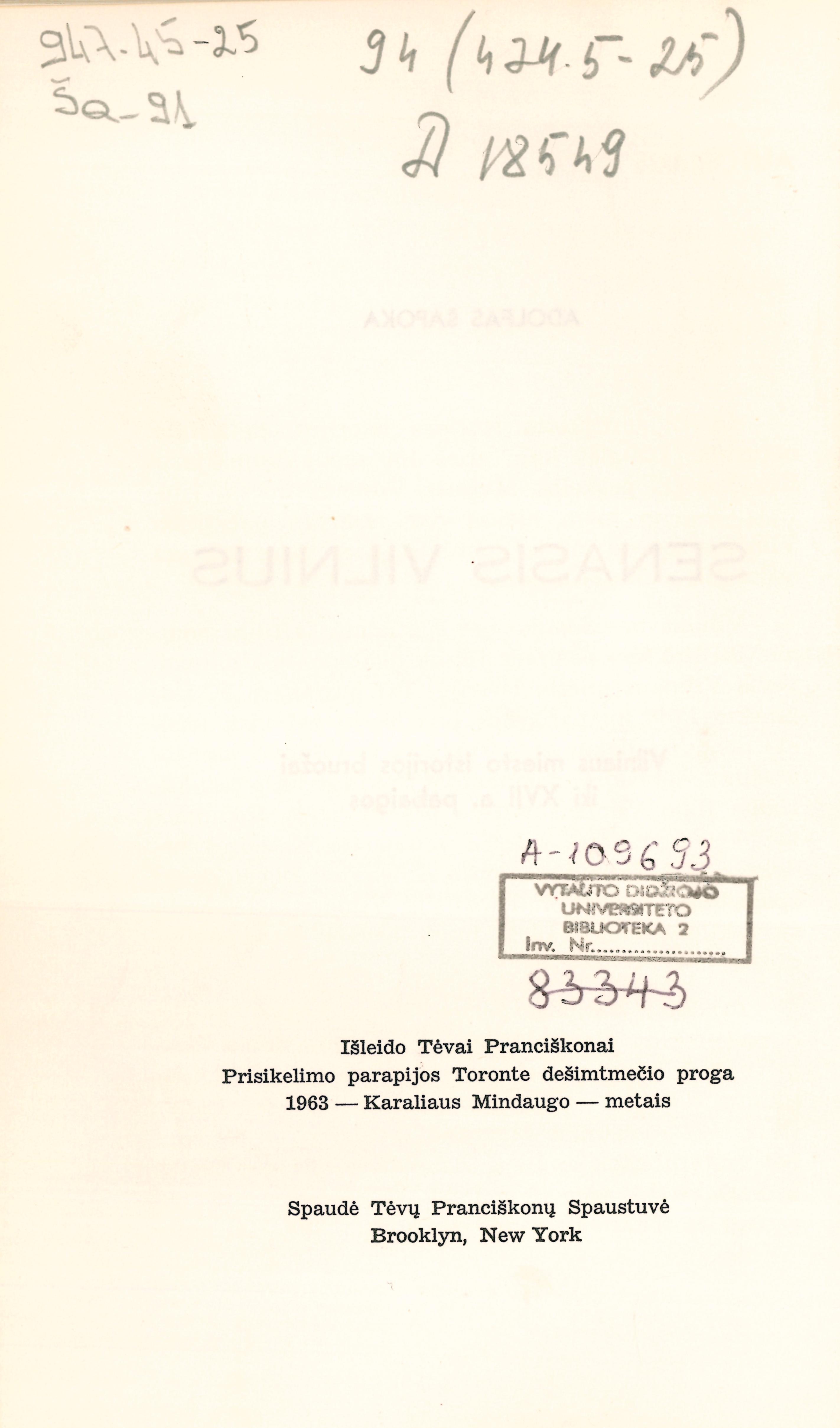 | Published | New York: Tėvai Pranciškonai, 1963 |