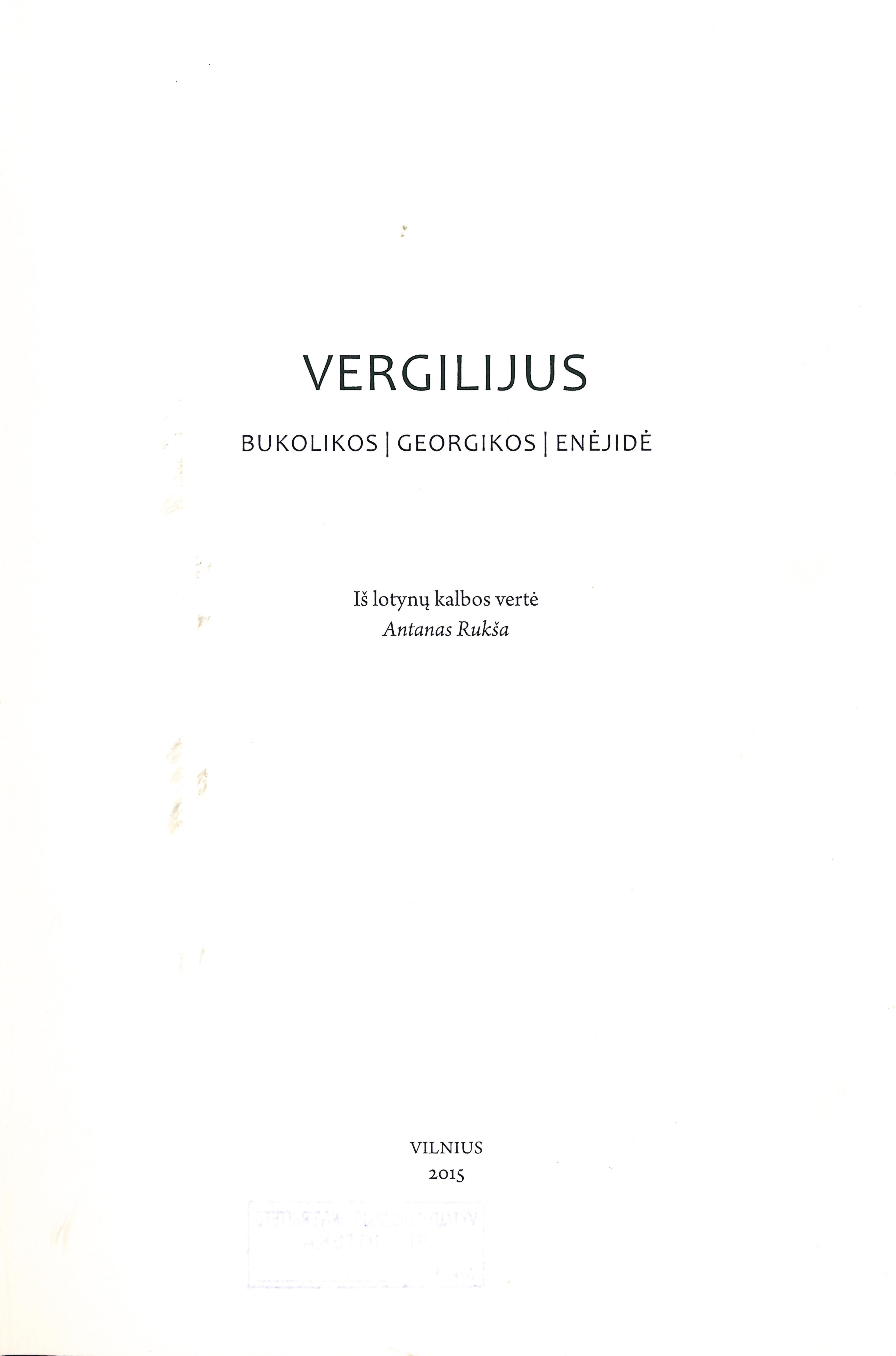 | Vergilijus iš lotynų kalbos vertė Antanas Rukša sudarė ir įvadinį straipsnį parašė Audronė Kučinskienė | |