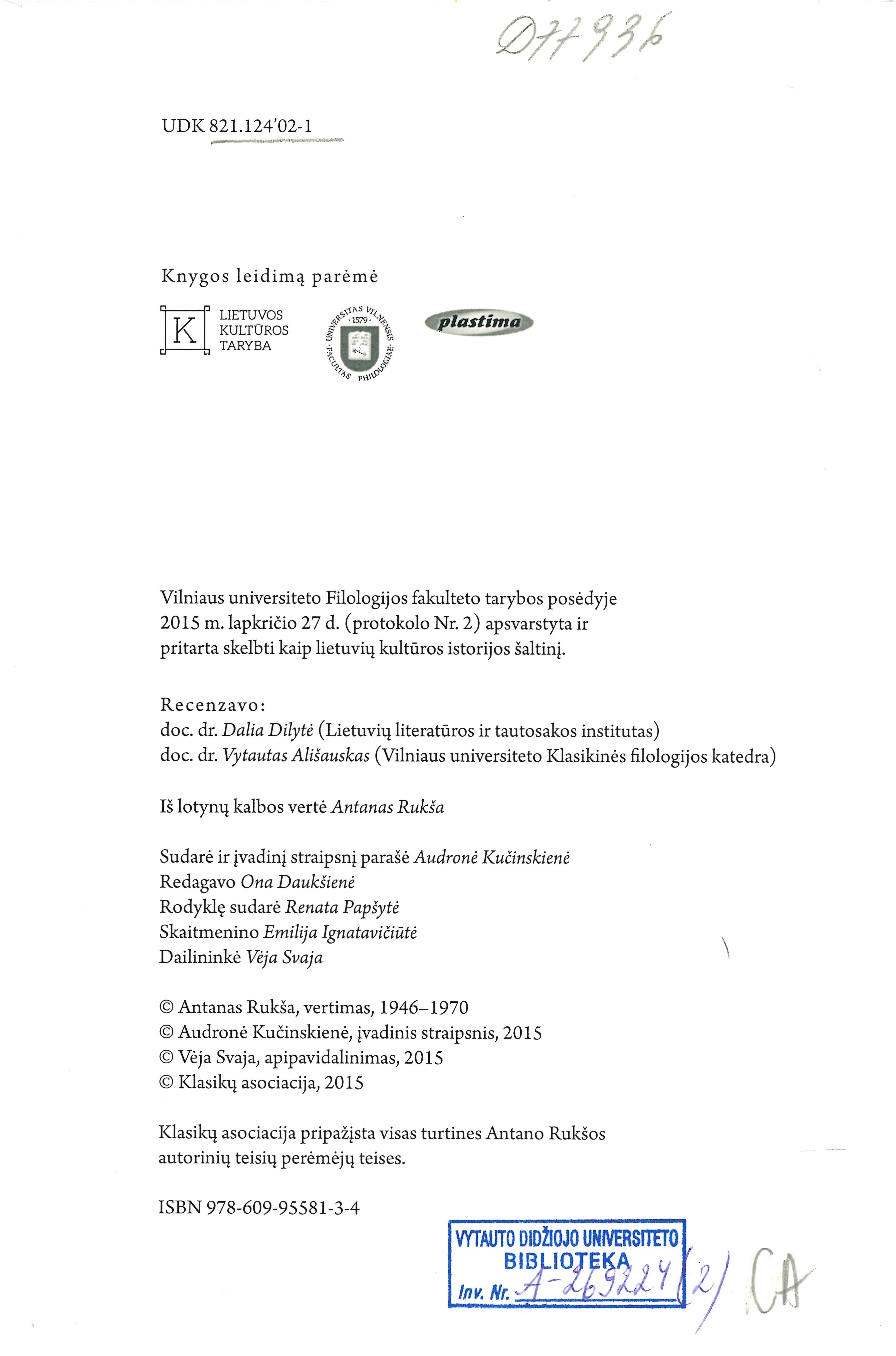 | Antraštė | Bukolikos ; Georgikos ; Enėjidė / Vergilijus (2015) |