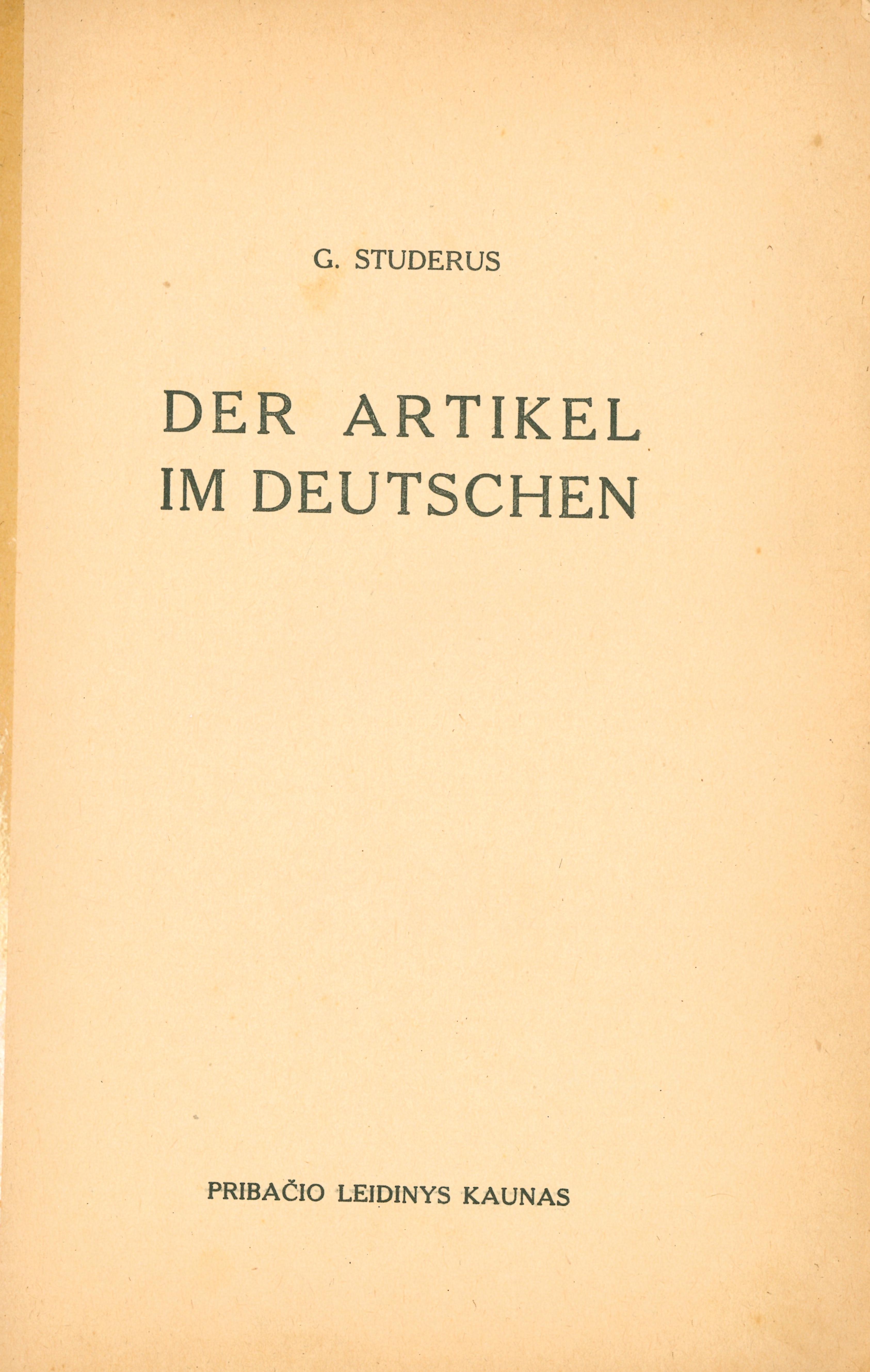 | Antraštė | Der Artikel im Deutschen (1934) |