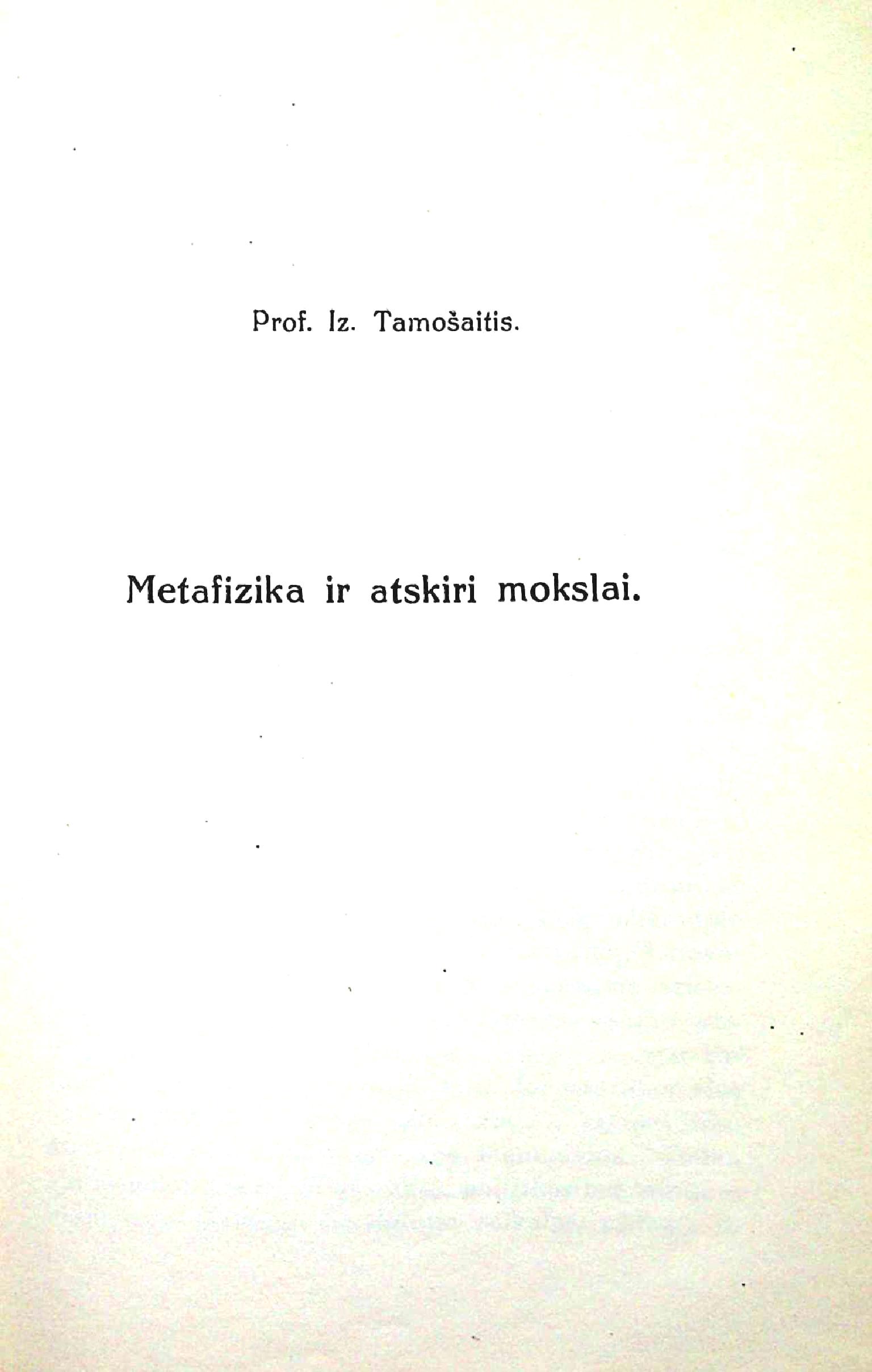 Metafizika ir atskiri mokslai / Iz. Tamošaitis. – iš: Humanitarinių mokslų fakulteto raštai, Knyga 1. – Kaunas : V. D. universiteto humanitarinių mokslų fakulteto leidinys, 1925, p. 349-410.