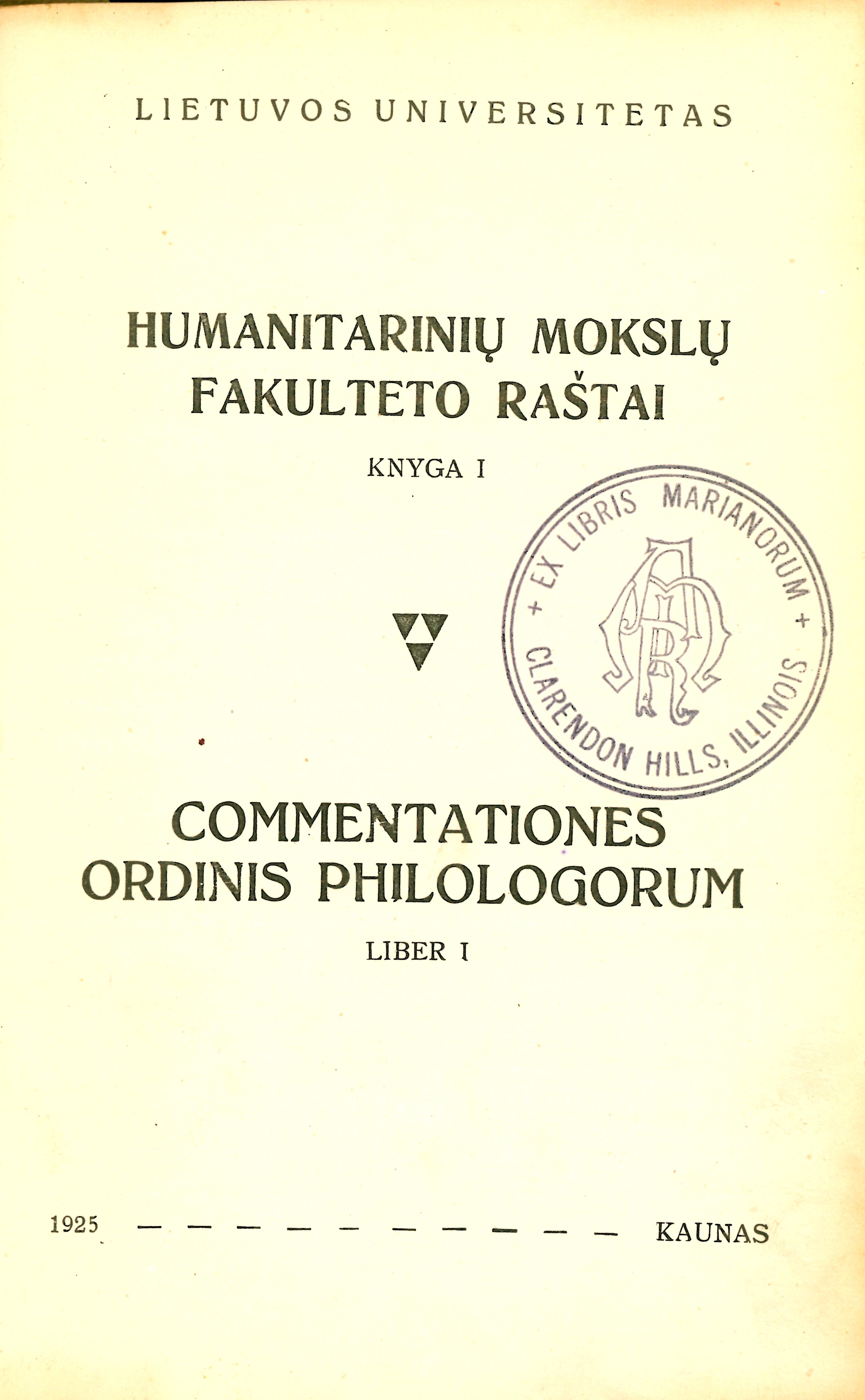 Yra dalis Humanitarinių mokslų fakulteto raštai. Kn. 1 (1925)