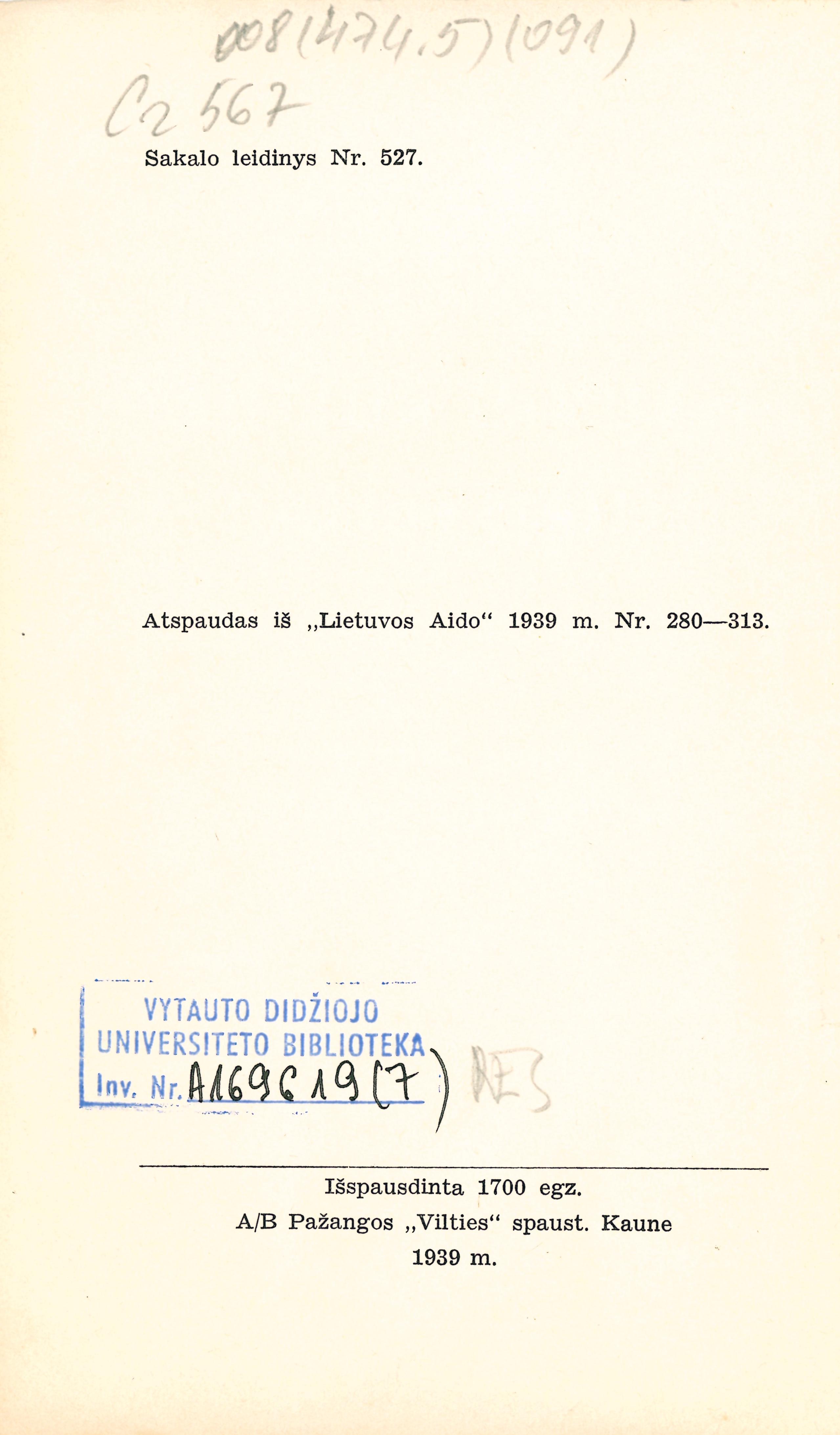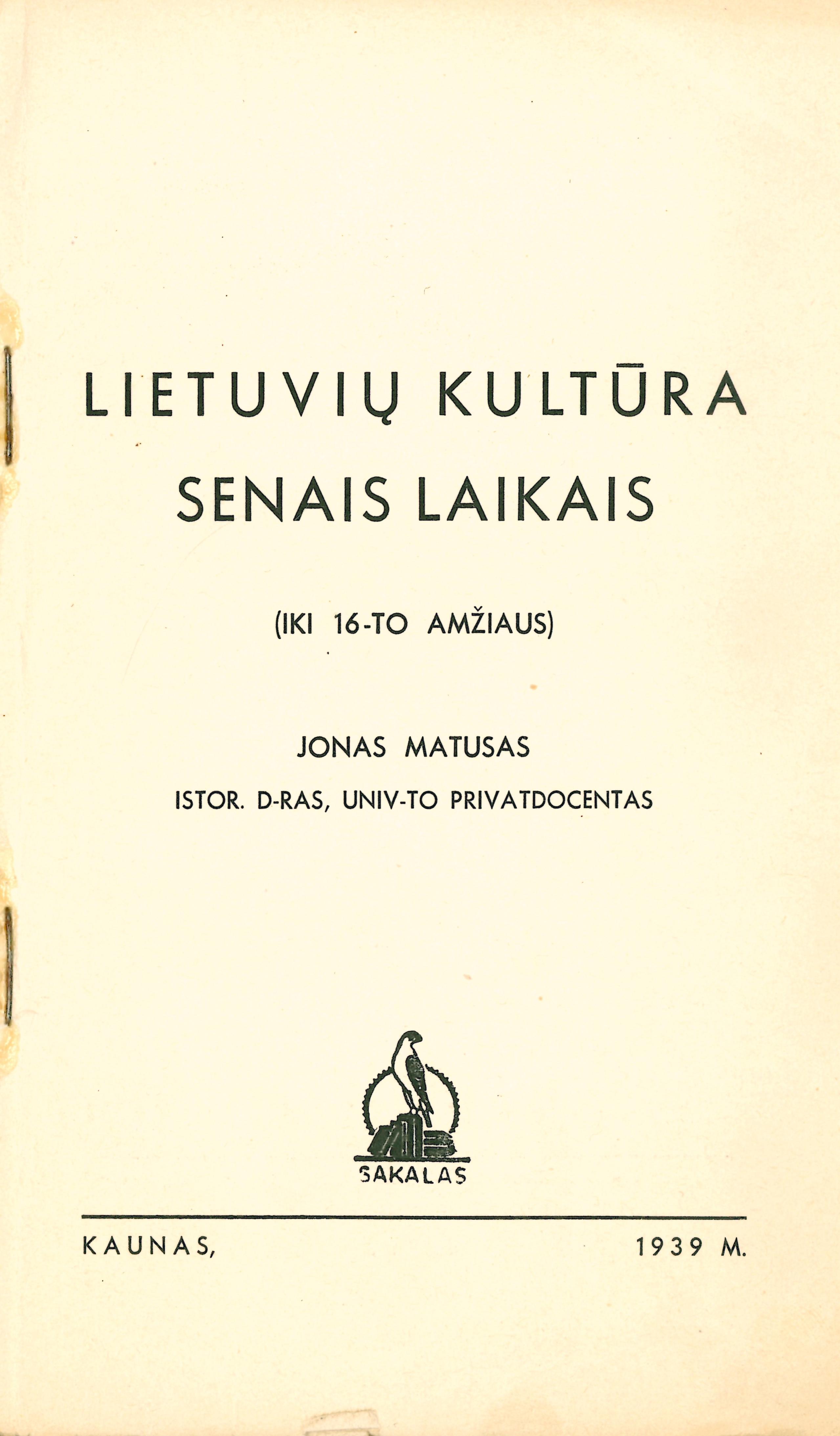 | Antraštė | Lietuvių kultūra senais laikais (1939) |