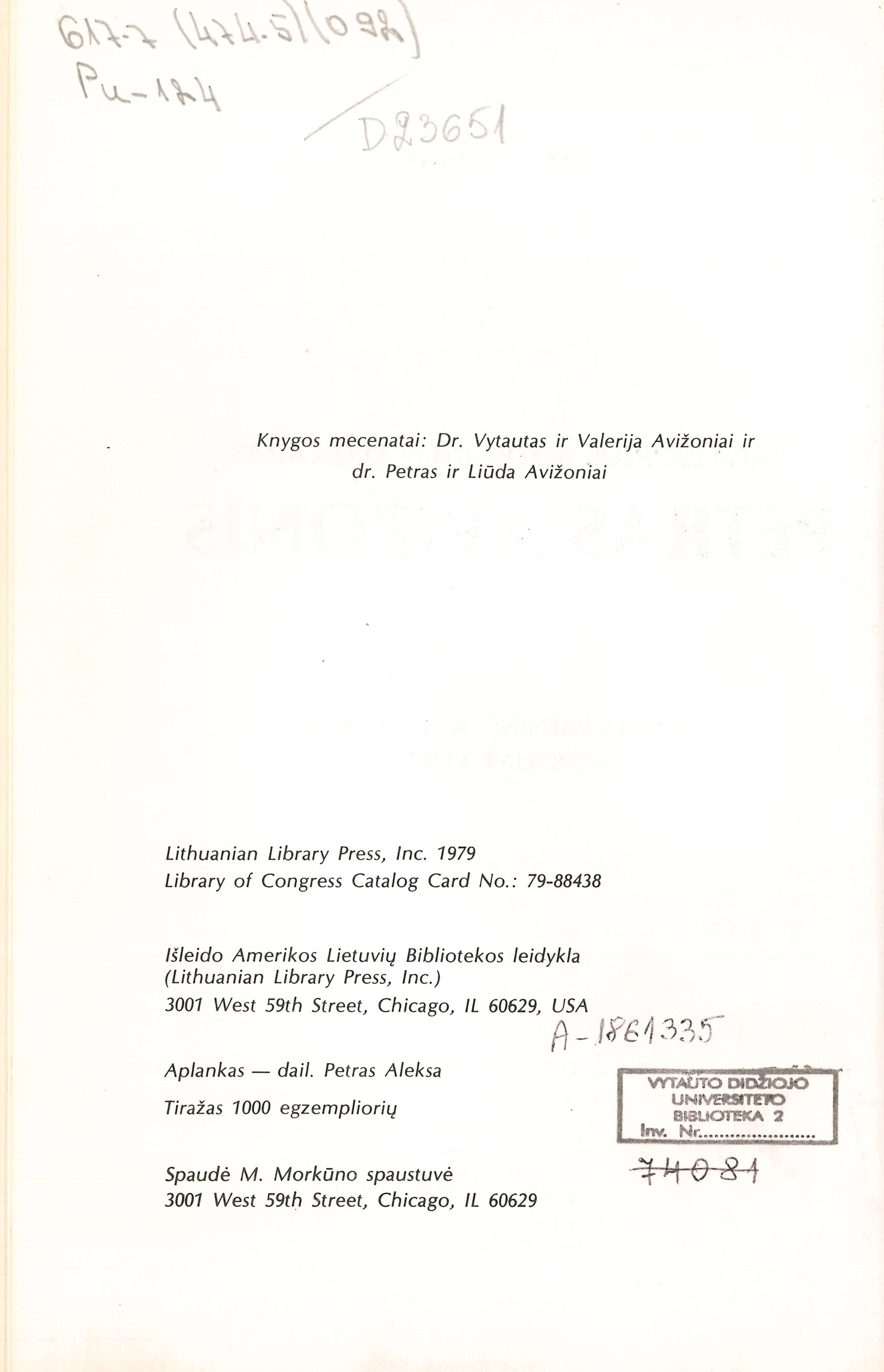 | Published | Čikaga: Amerikos lietuvių bibliotekos leidykla, 1979 |