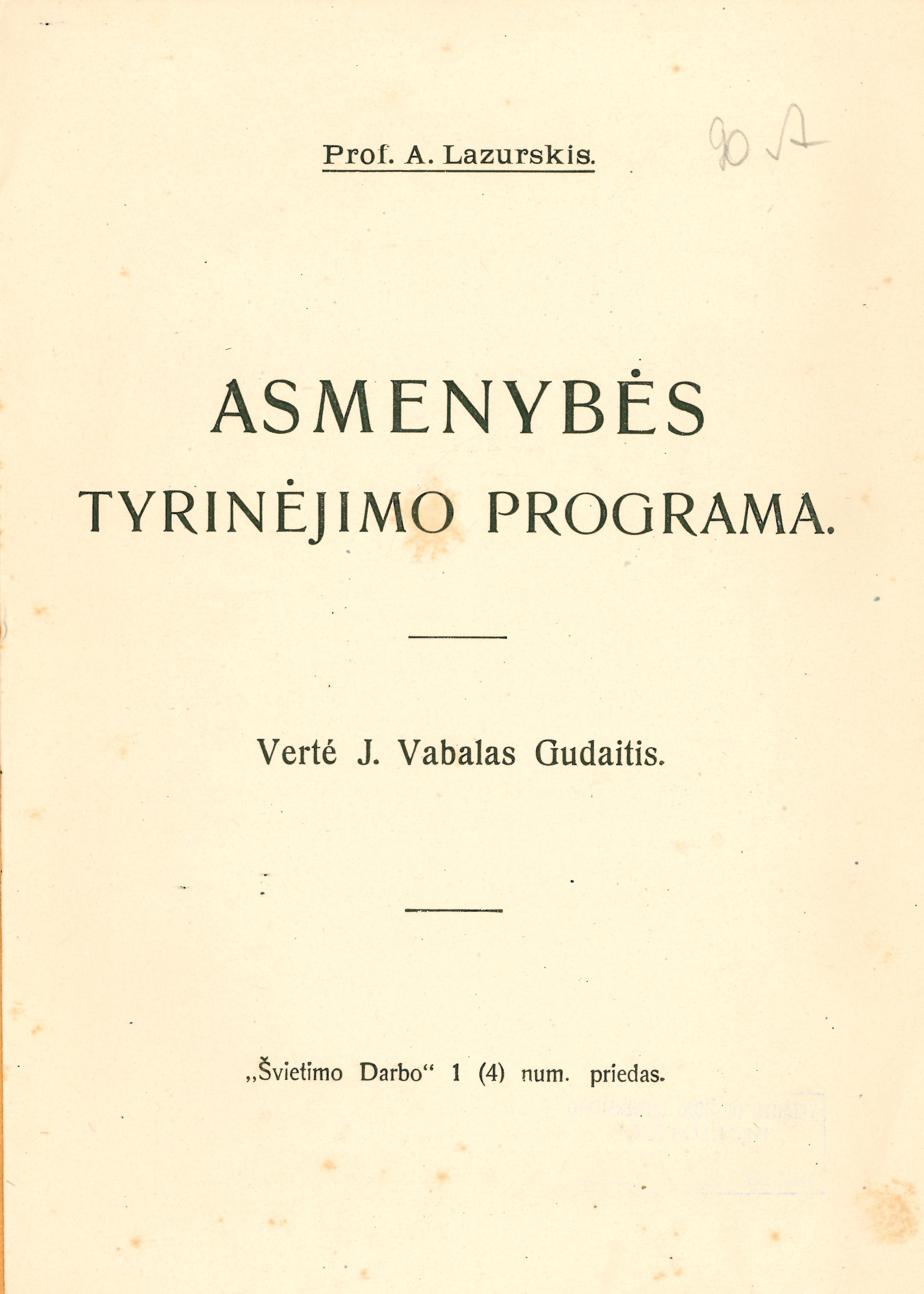 | Antraštė | Asmenybės tyrinėjimo programa (1920) |