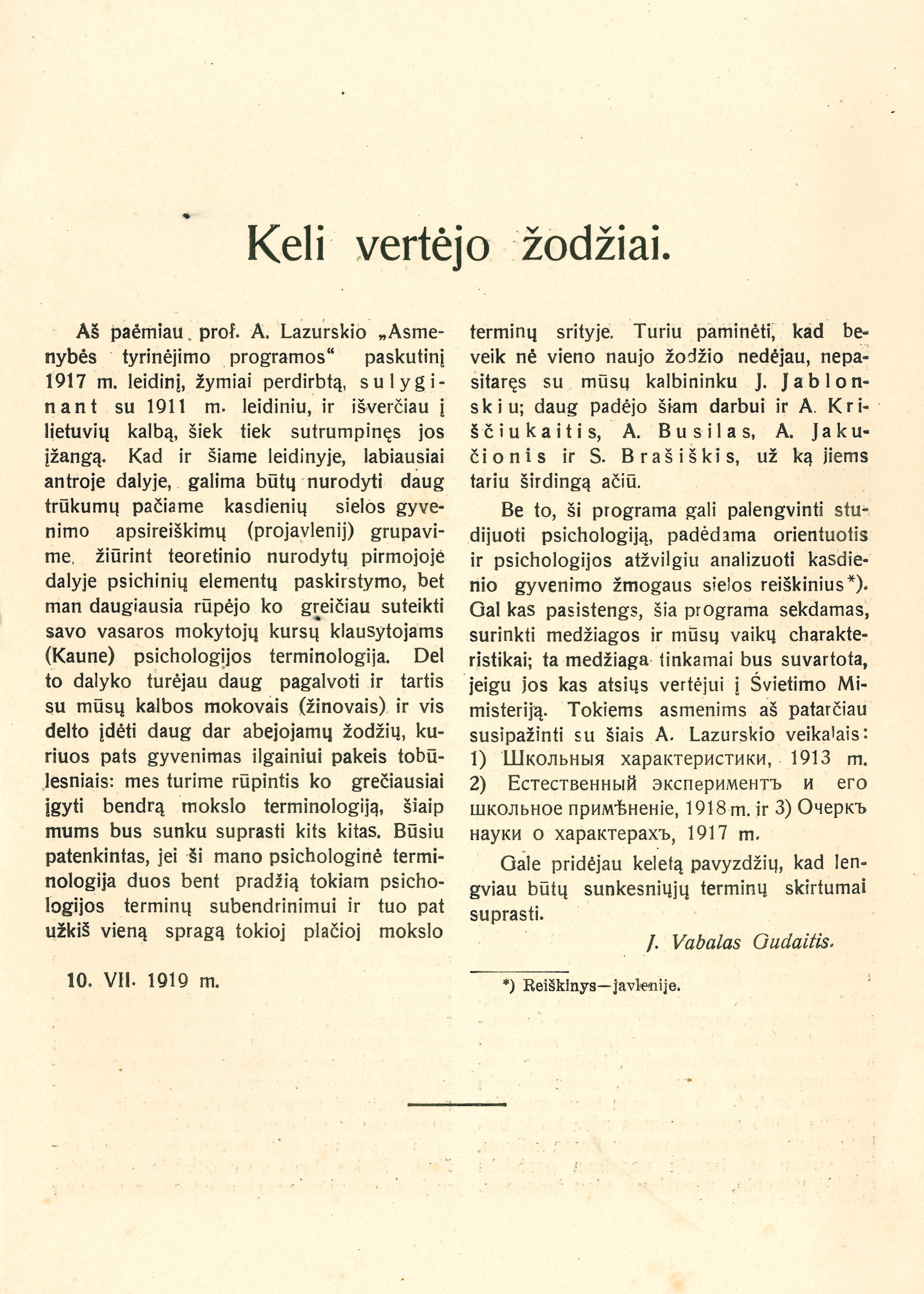 | Autorius | Jonas Vabalas Gudaitis, Humanitarinių mokslų fakultetas |