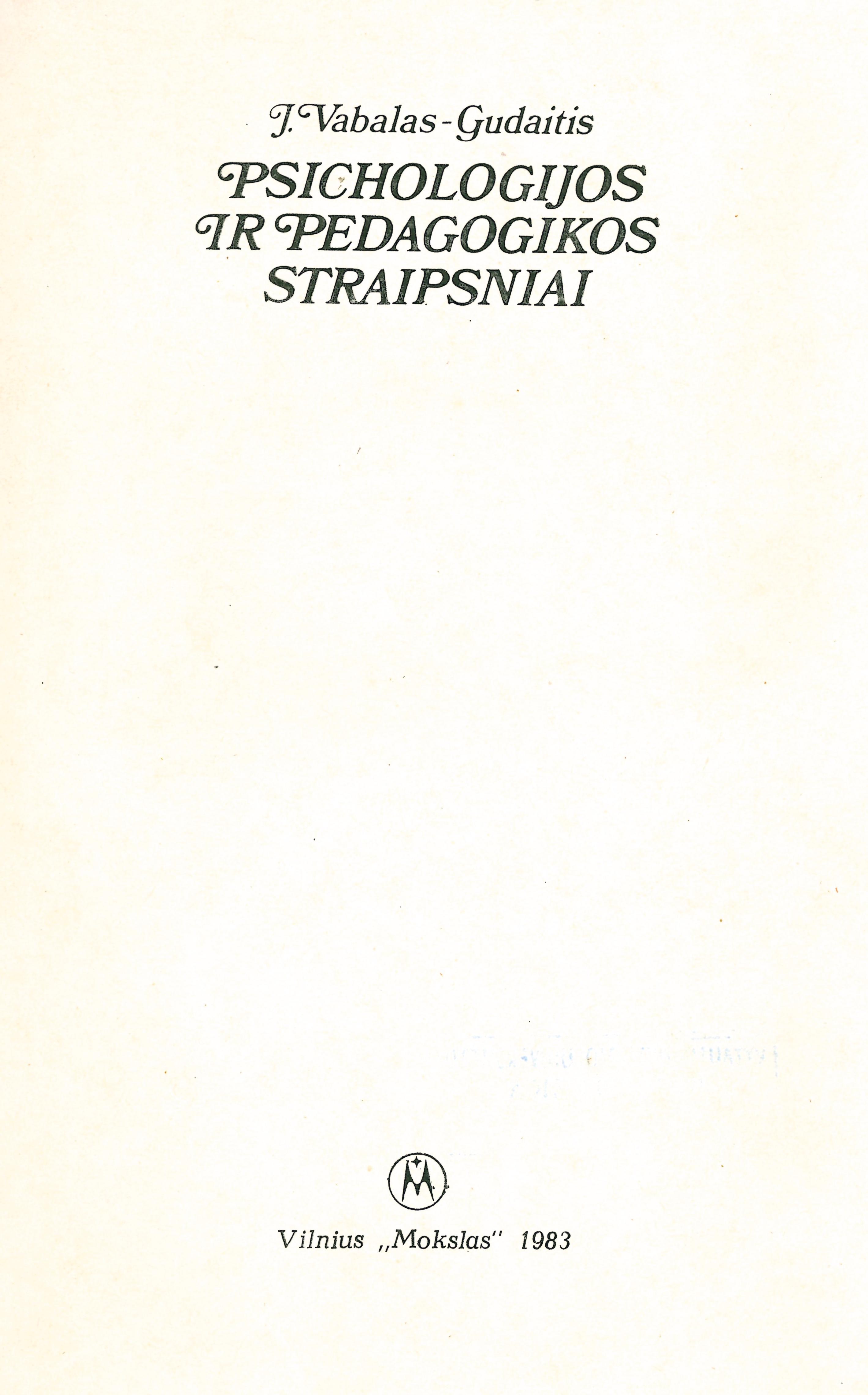 | Autorius | Jonas Vabalas Gudaitis, Humanitarinių mokslų fakultetas |