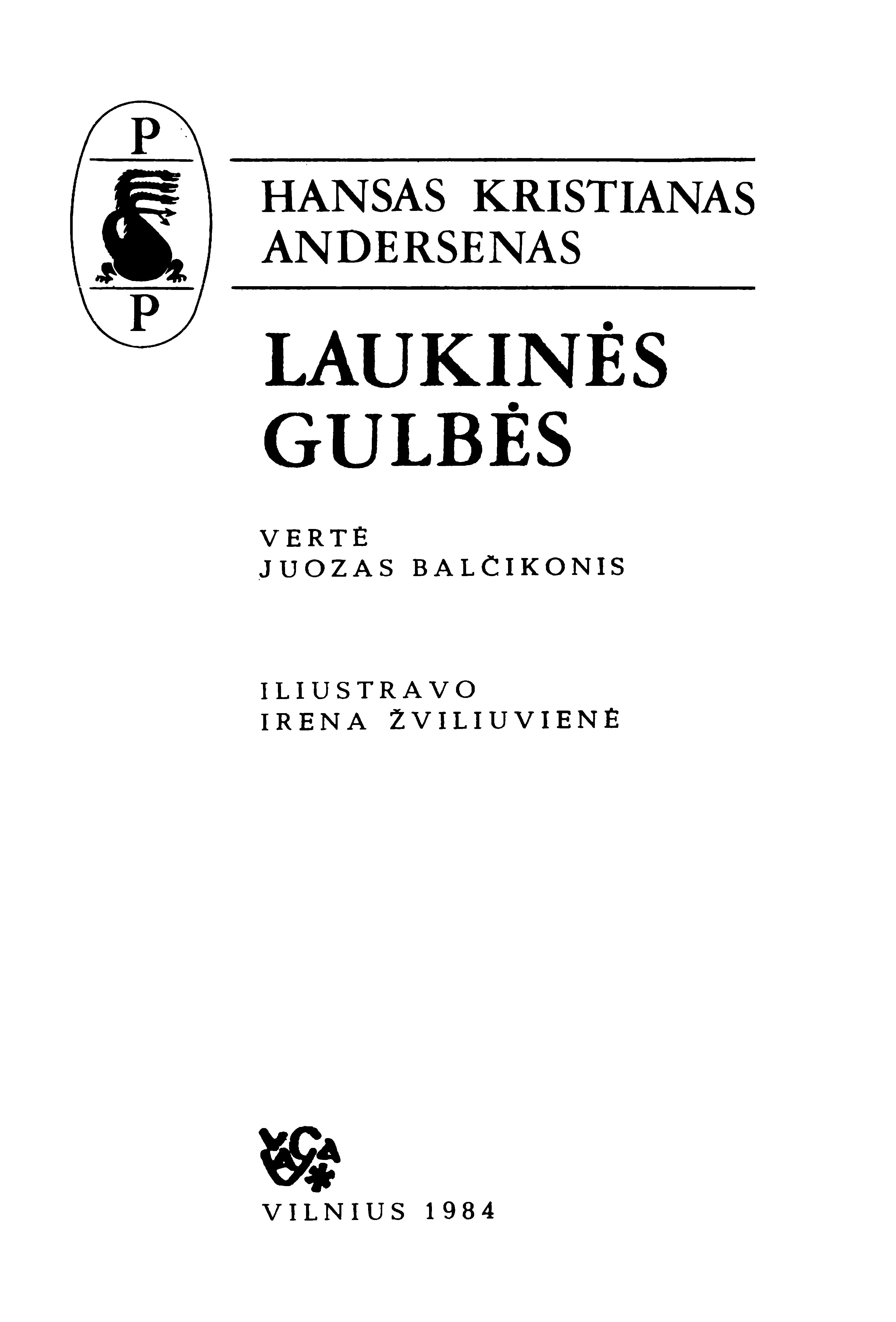| Antraštė | Laukinės gulbės / Hansas Kristianas Andersenas; vertė Juozas Balčikonis. – 2-asis leidimas. – Vilnius: Vaga, 1984. – 307, [1] p. [lt] |