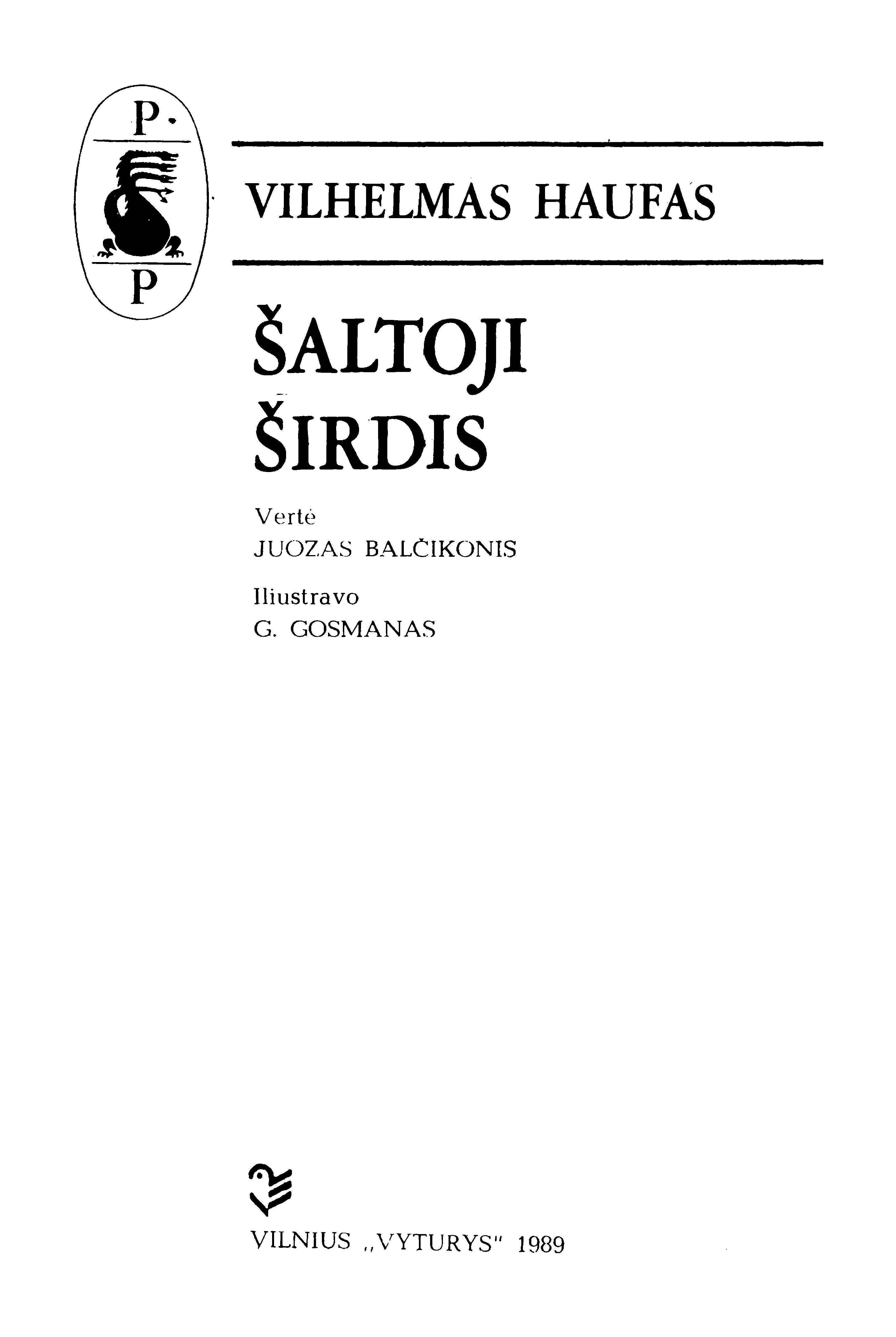 | Antraštė | Šaltoji širdis / Vilhelmas Haufas; vertė Juozas Balčikonis. – 2-asis leidimas. – Vilnius: Vyturys, 1989. – 270, [2] p. [lt] |