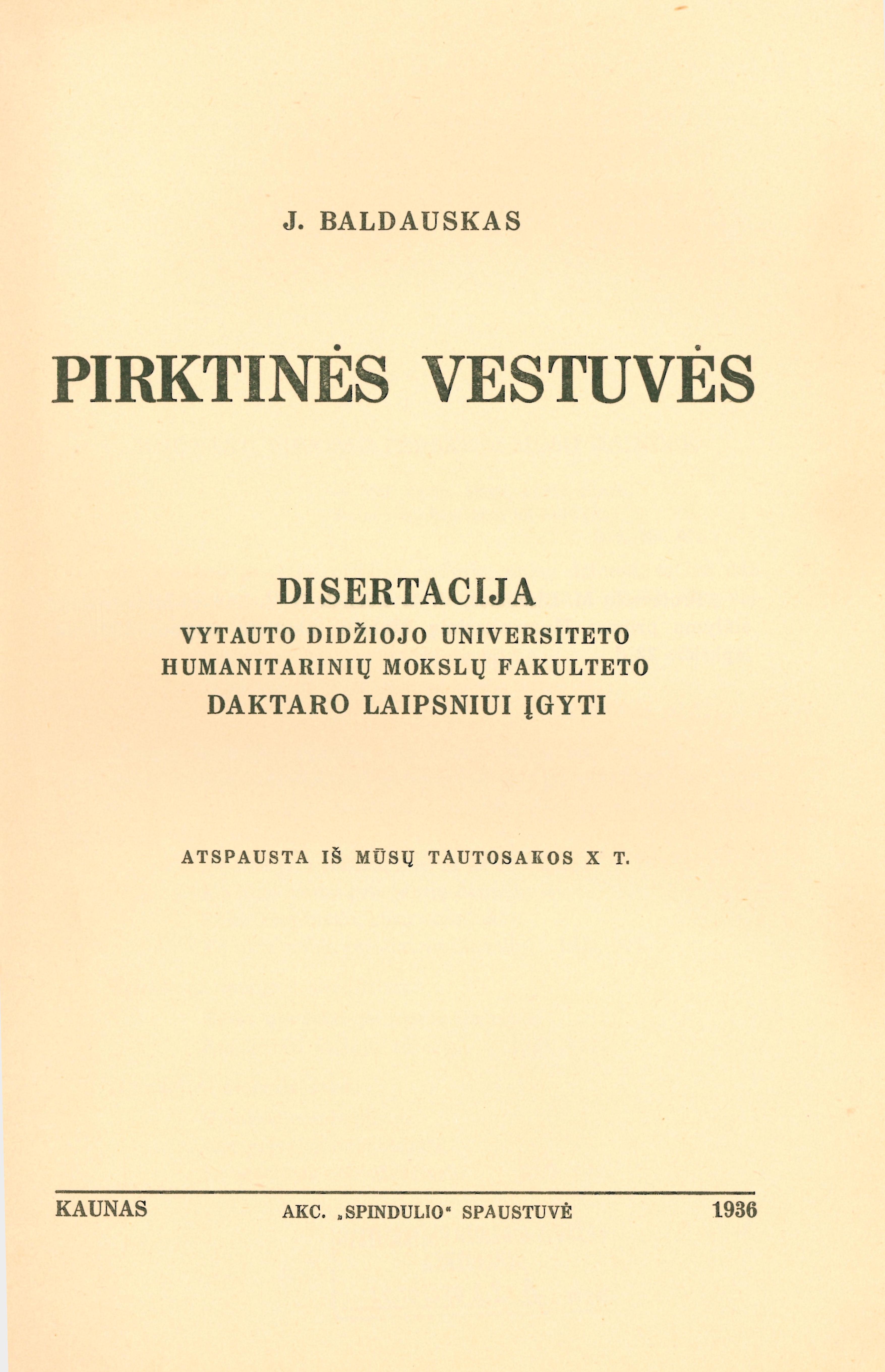 Antraštė Pirktinės vestuvės / Juozas Baldauskas. In: Mūsų tautosaka. T. 10 (1935), p. 3–123. [lt]