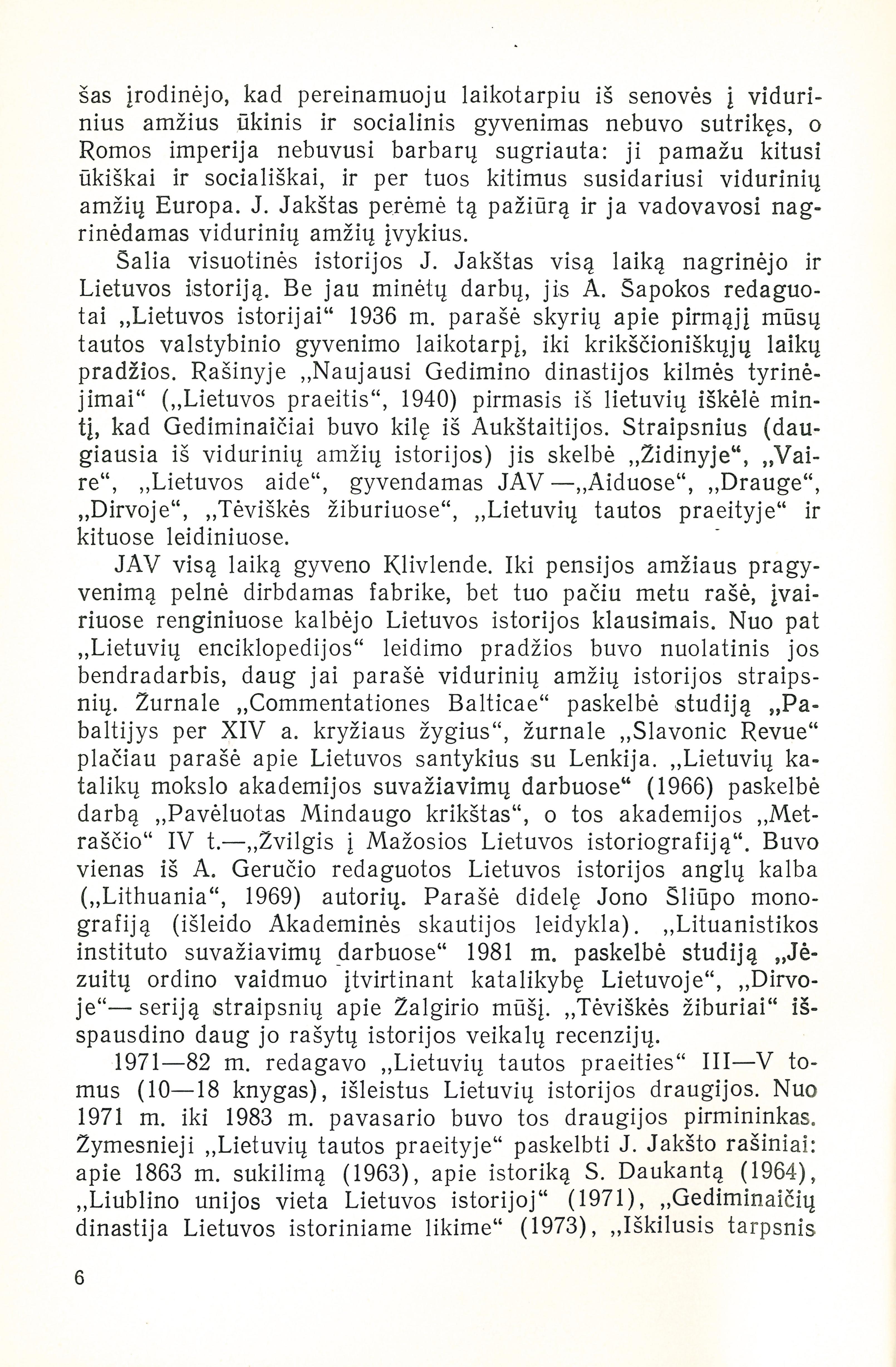 Mano istorijos mokslo kelias / Juozas Jakštas. – Vilnius : Valstybinė enciklopedijų leidykla, 1992. – 46 p.