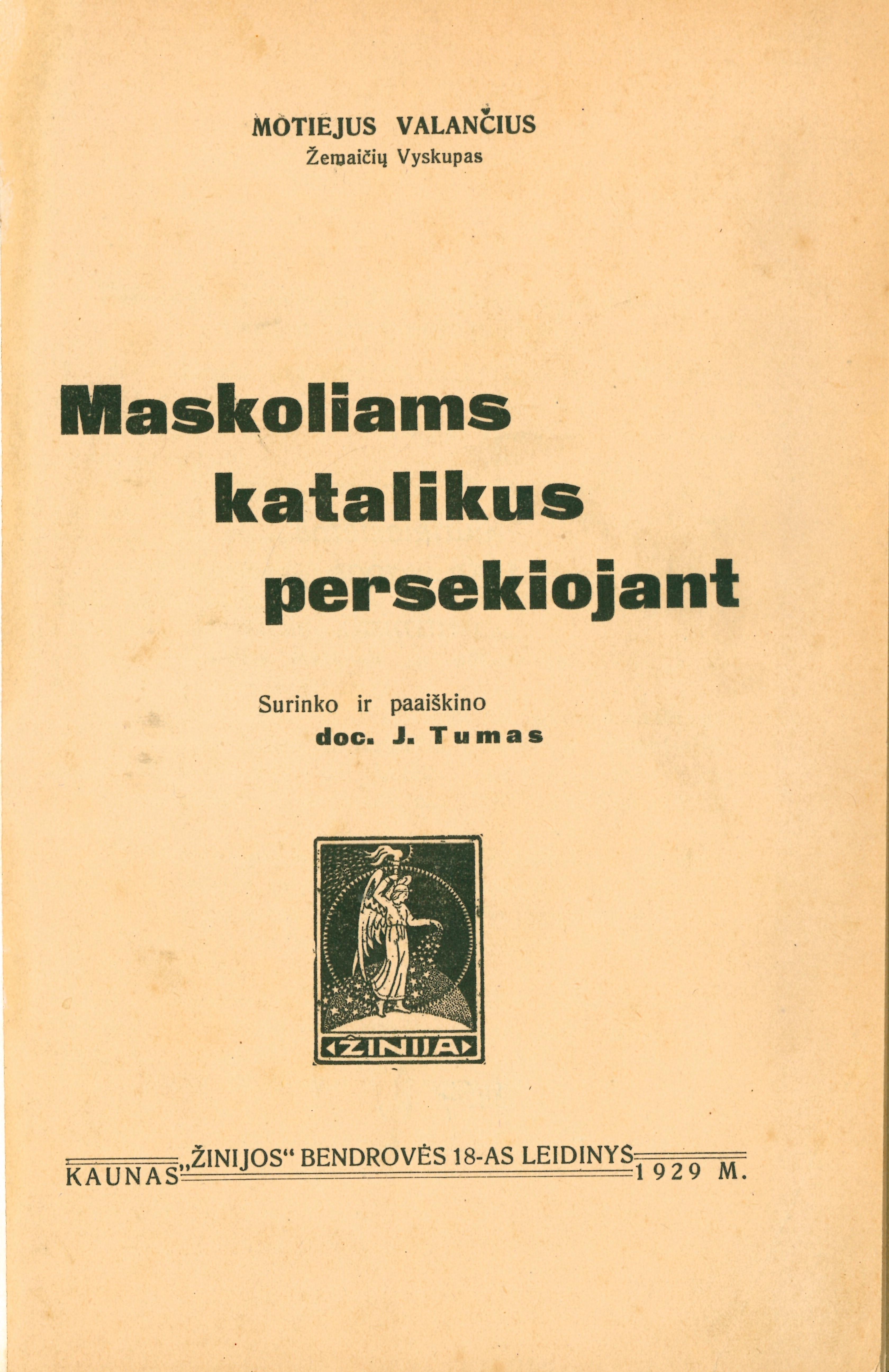 Maskoliams katalikus persekiojant / Motiejus Valančius ; surinko ir paaiškino J. Tumas. – Kaunas : Žinija, 1929. – 124 p. – („Žinijos“ bendrovės leidinys ; 18)