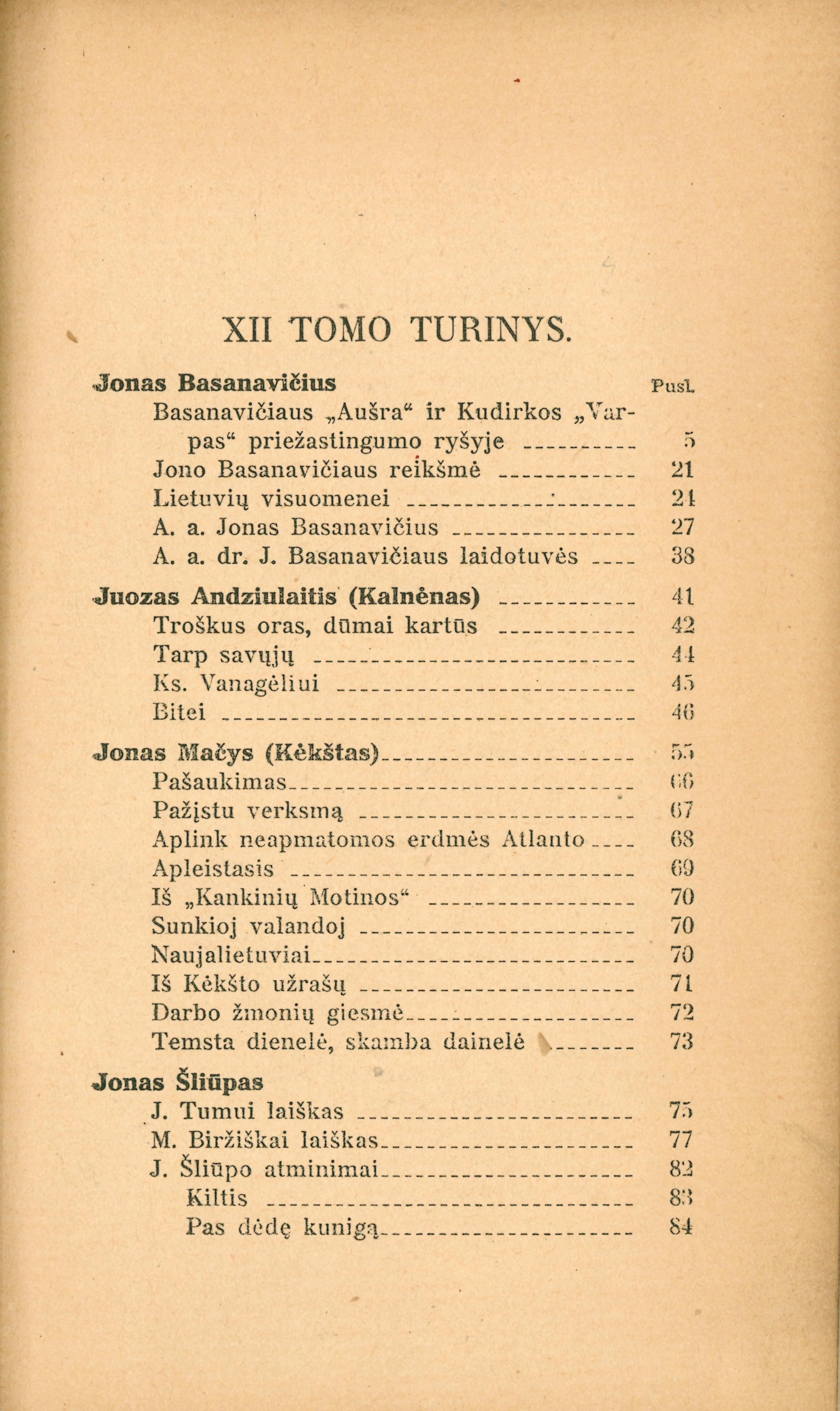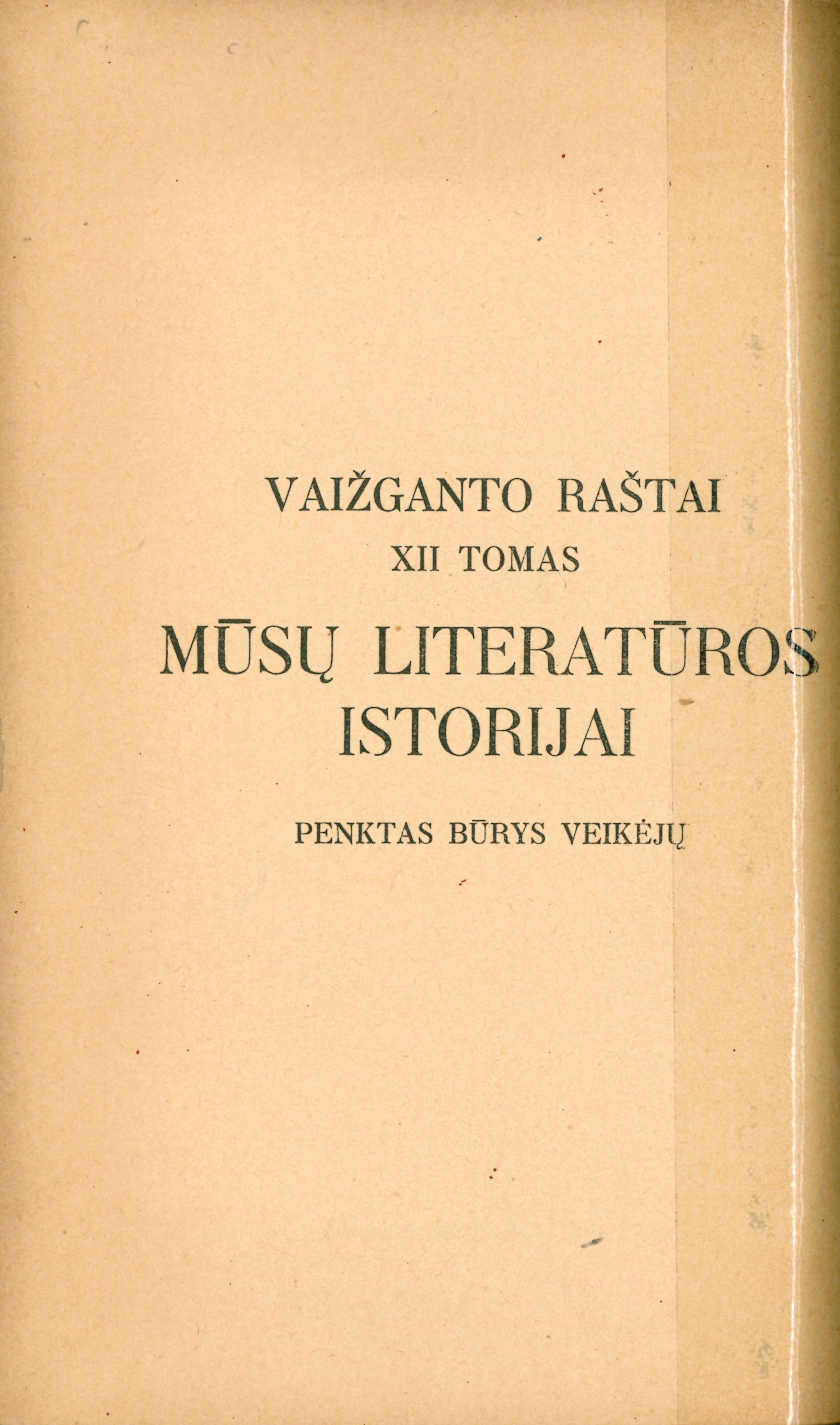 T. 12 : Mūsų literatūros istorijai : penktas būrys veikėjų : aušrininkai, šviesininkai. – Kaunas, 1929.