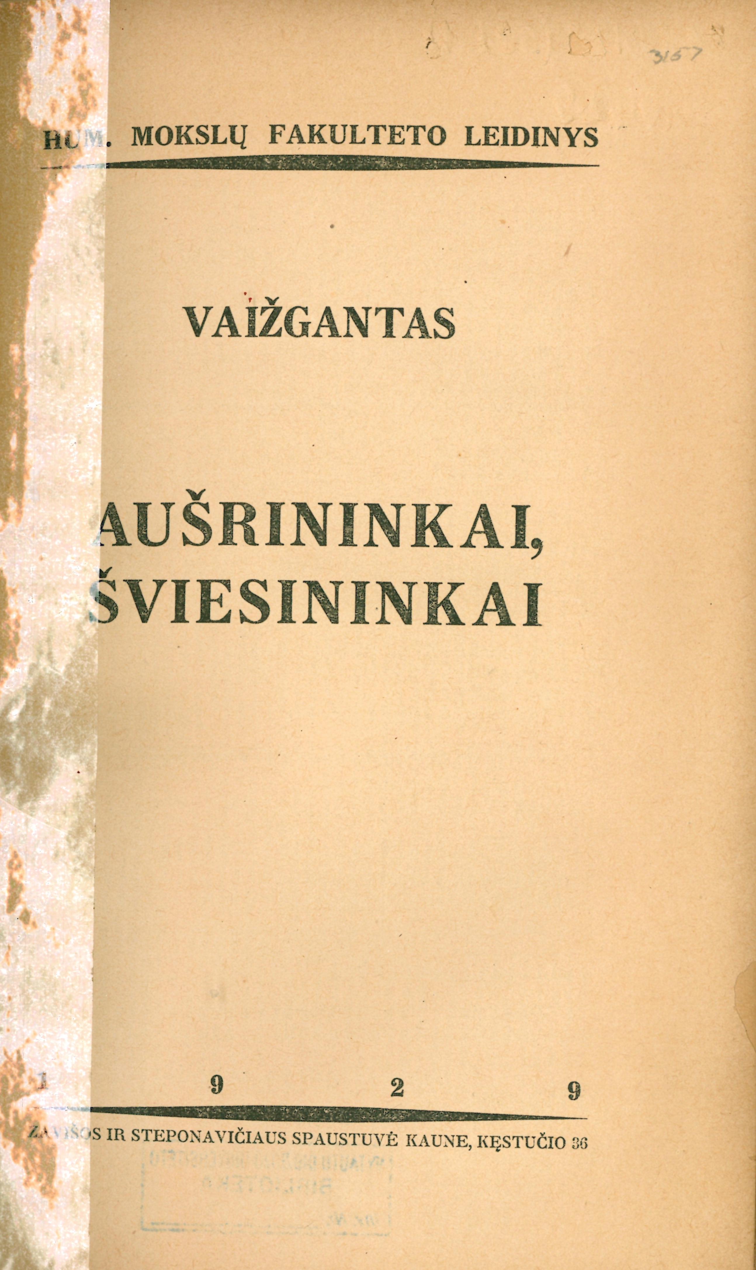 Published Kaunas: Humanitarinių mokslų fakulteto leidinys, 1929