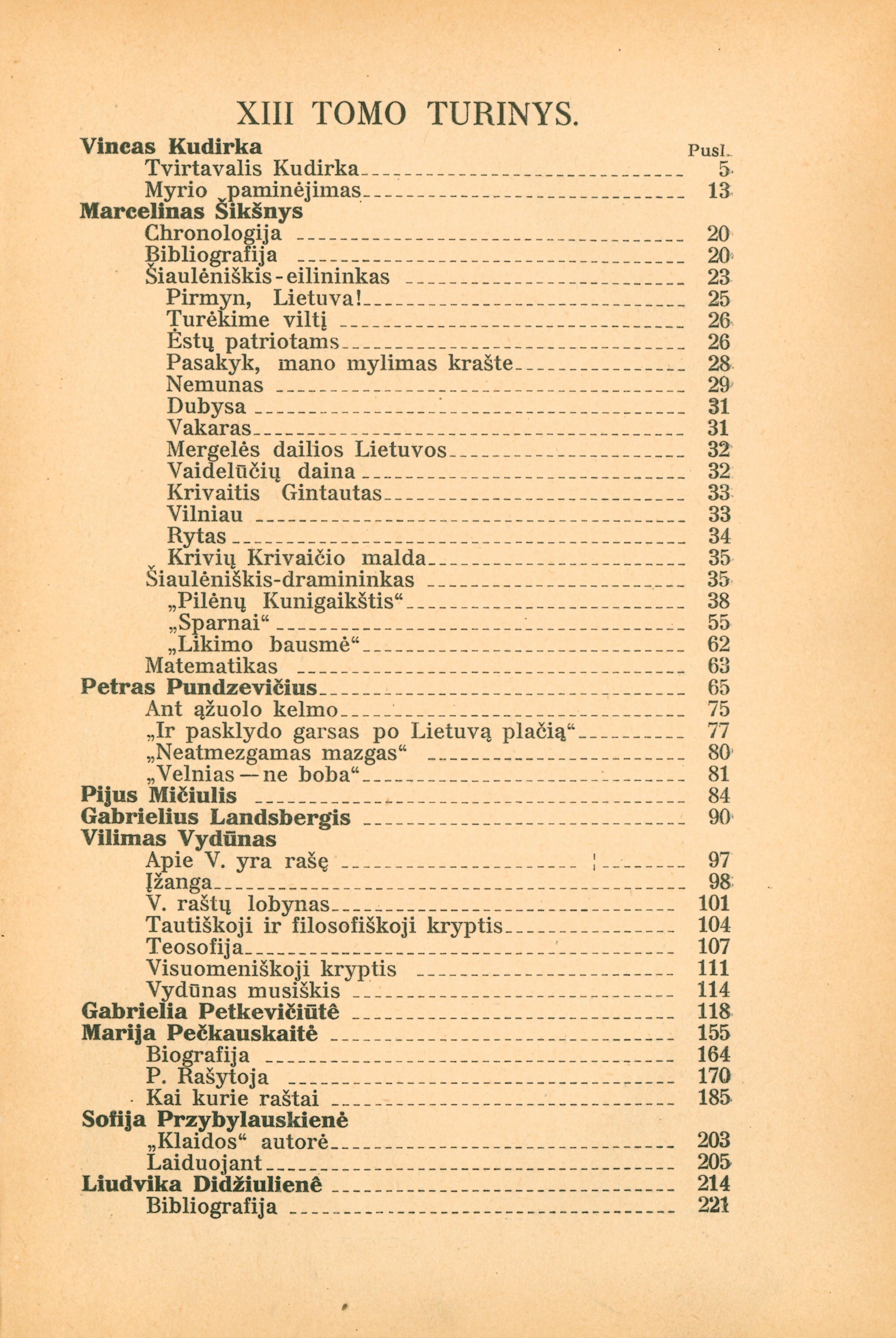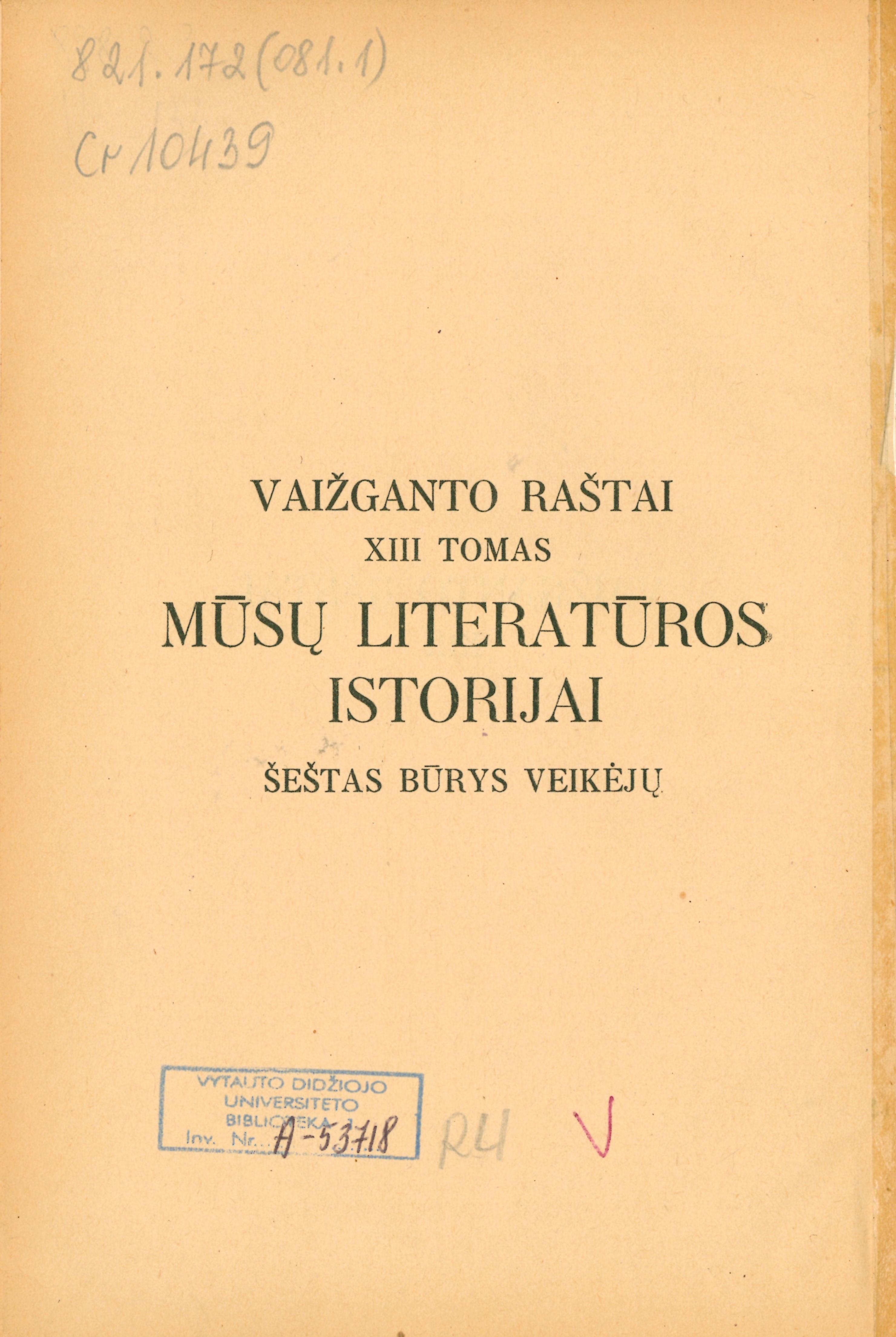 T. 13 : Mūsų literatūros istorijai : šeštas būrys veikėjų : beletristai. – Kaunas, 1929.