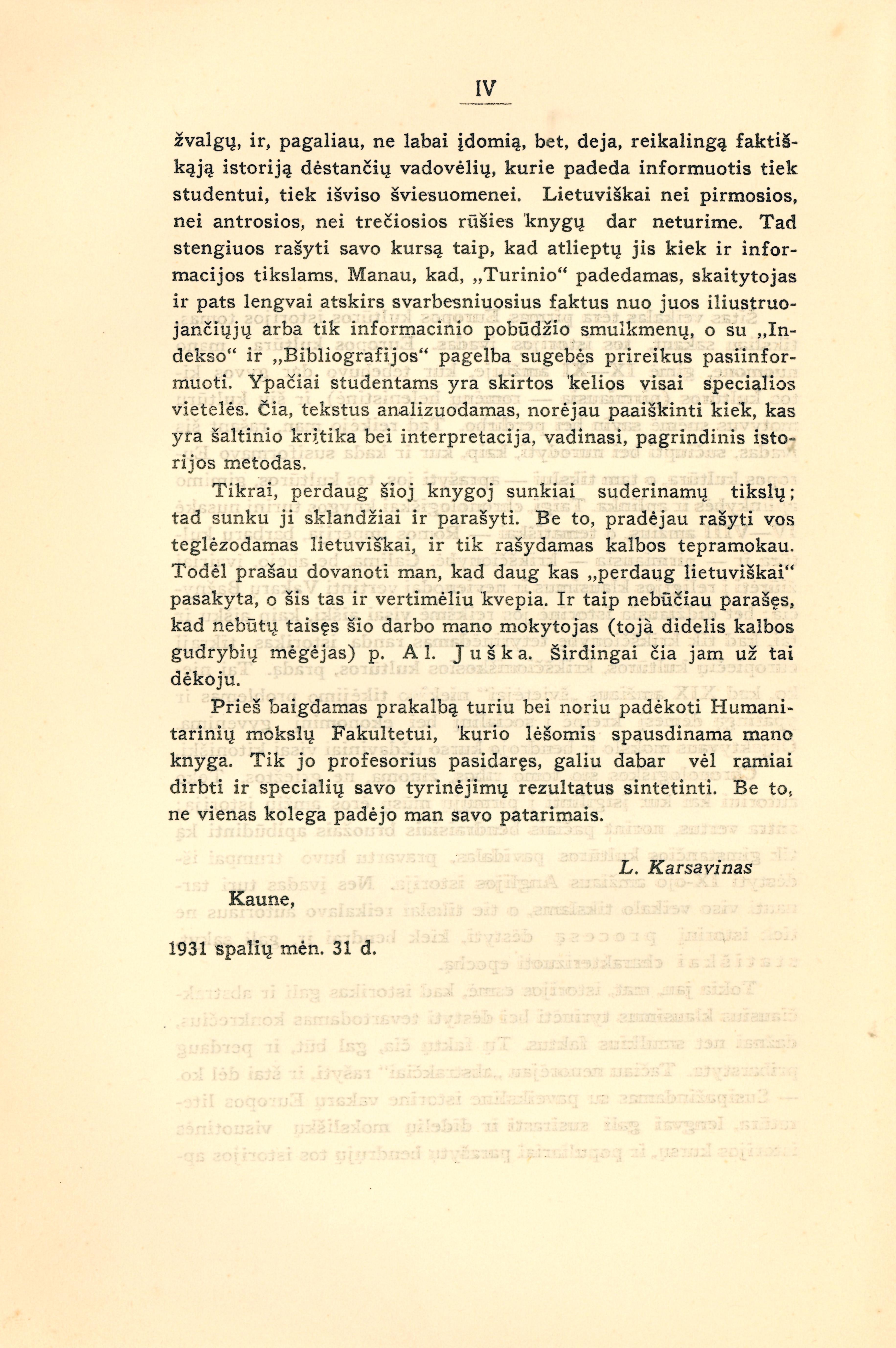 Published Kaunas: VDU Humanitarinių mokslų fakultetas, 1931