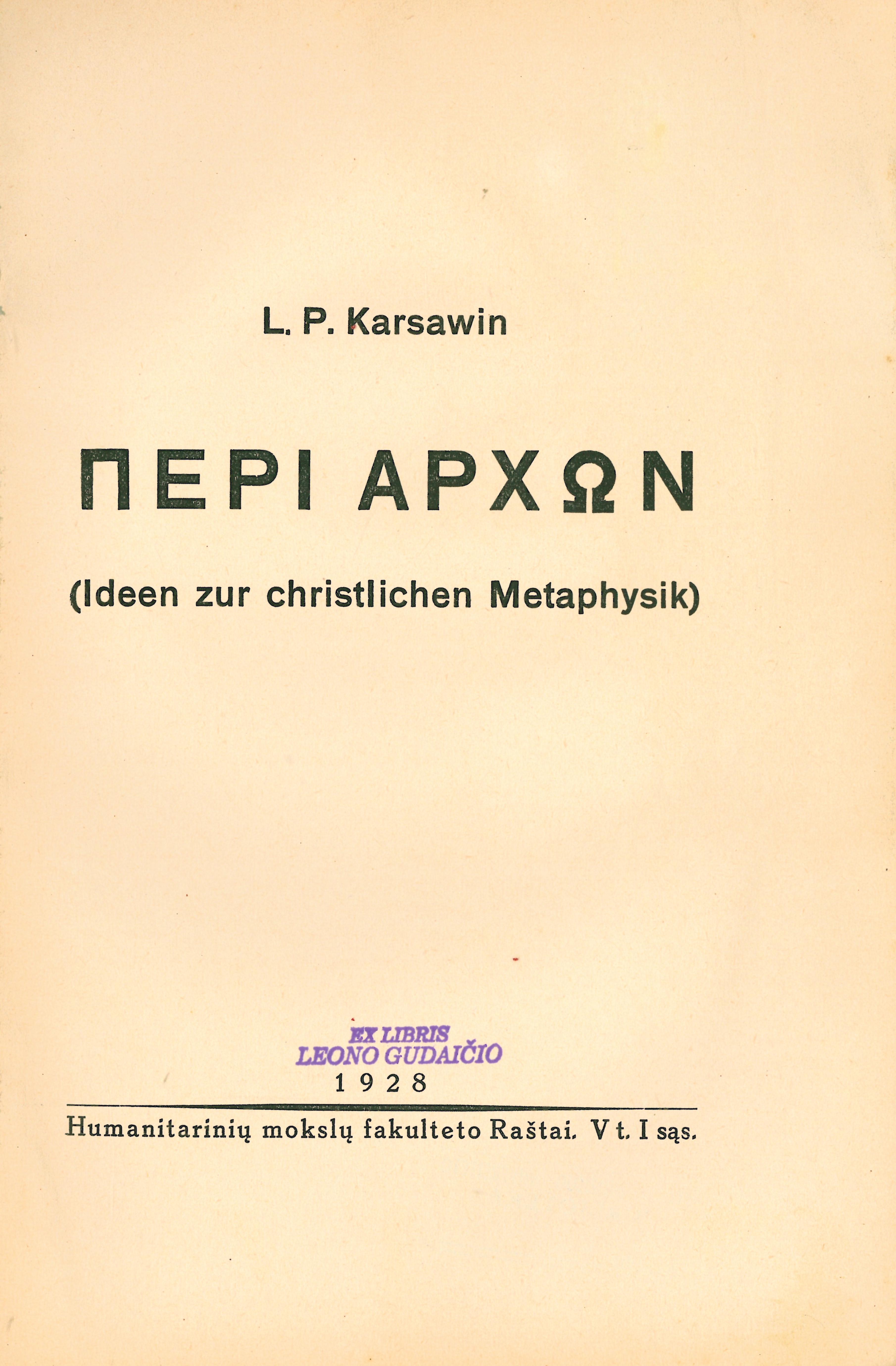 | Autorius | Levas Karsavinas, Humanitarinių mokslų fakultetas |