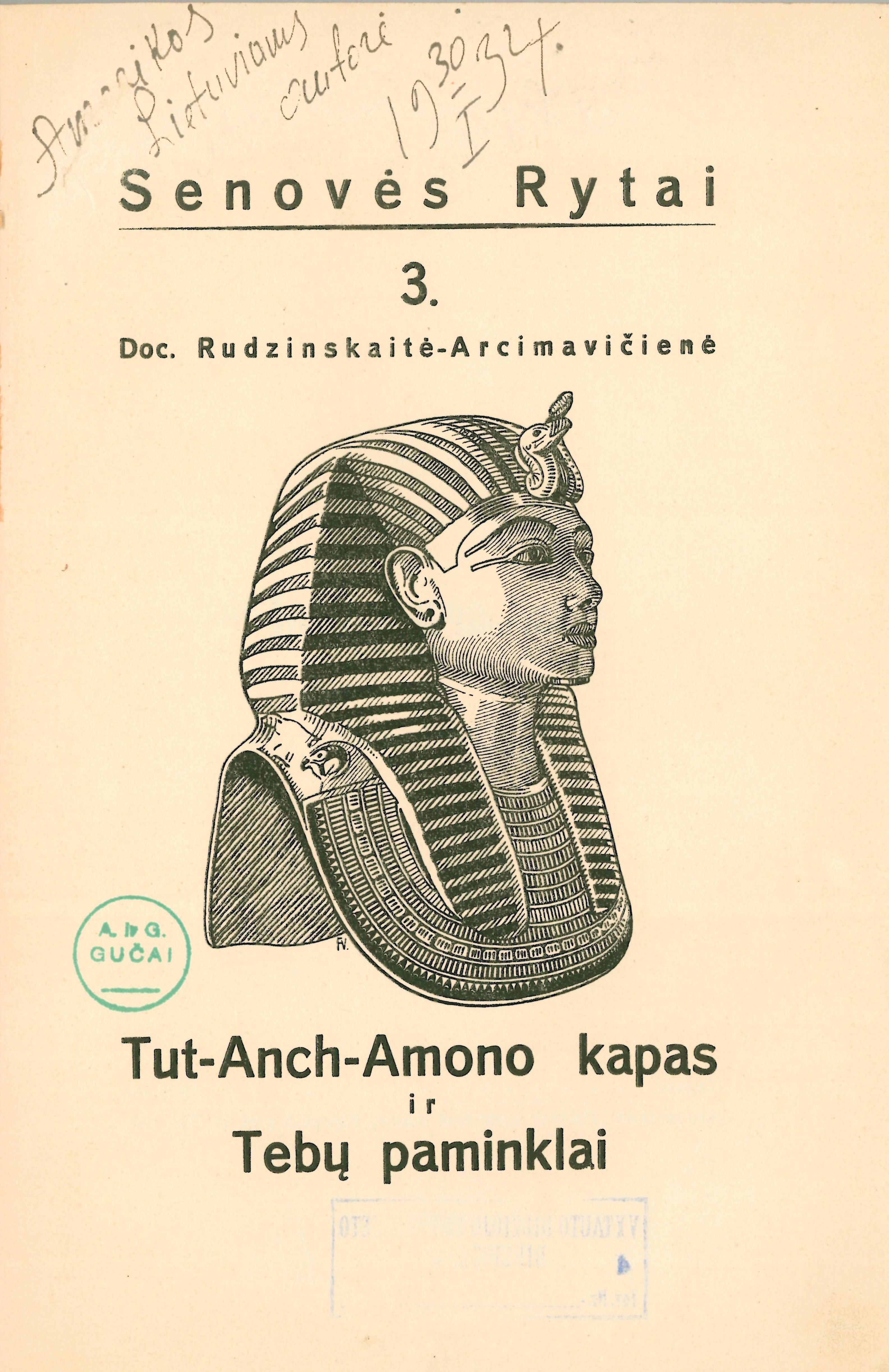 Tut-Anch-Amono kapas ir Tebų paminklai / M.Rudzinskaitė-Arcimavičienė. – Kaunas : Raidė, 1933. – 62 p. : 30 iliustr. lap. – (Senovės Rytai ; 3).