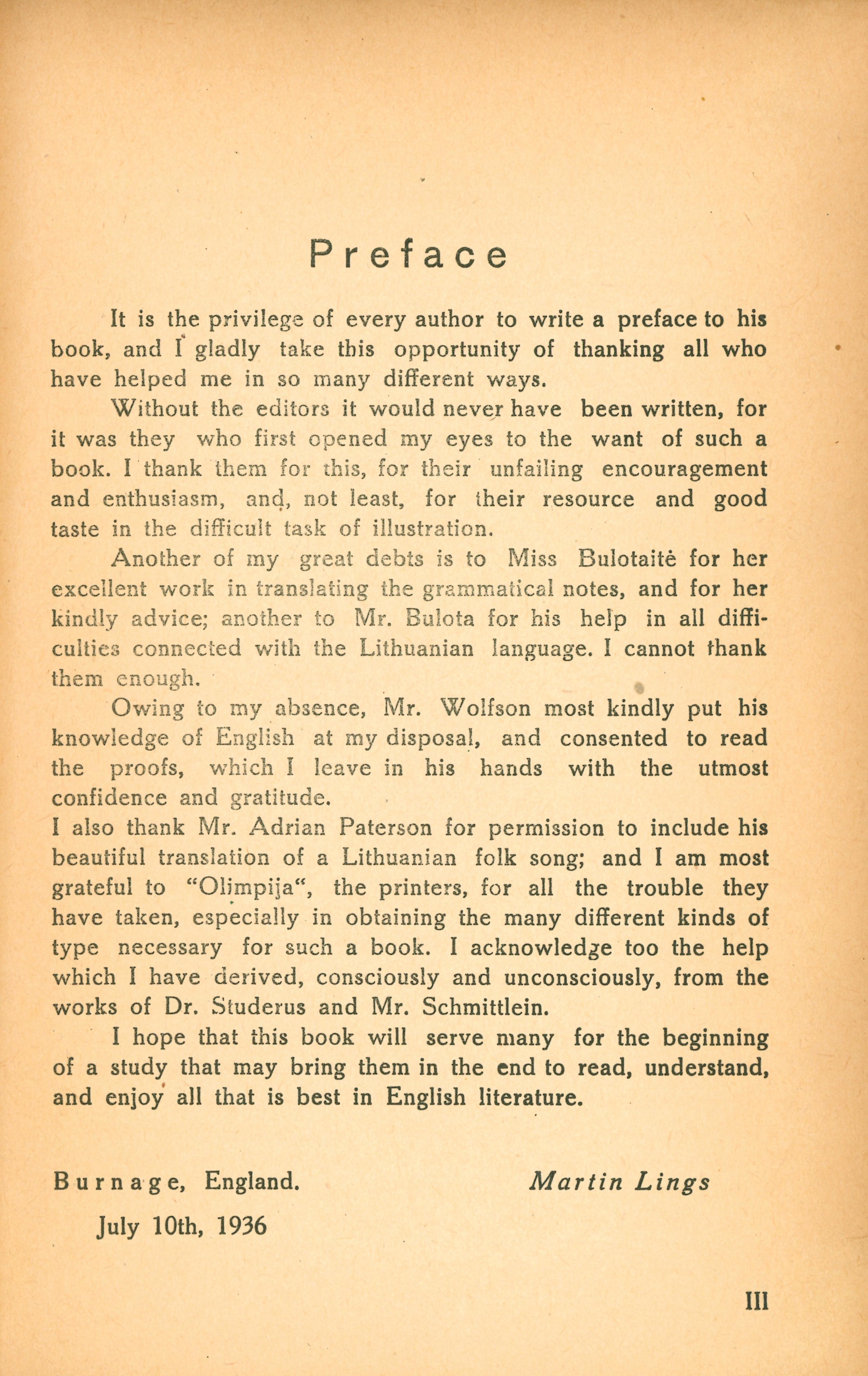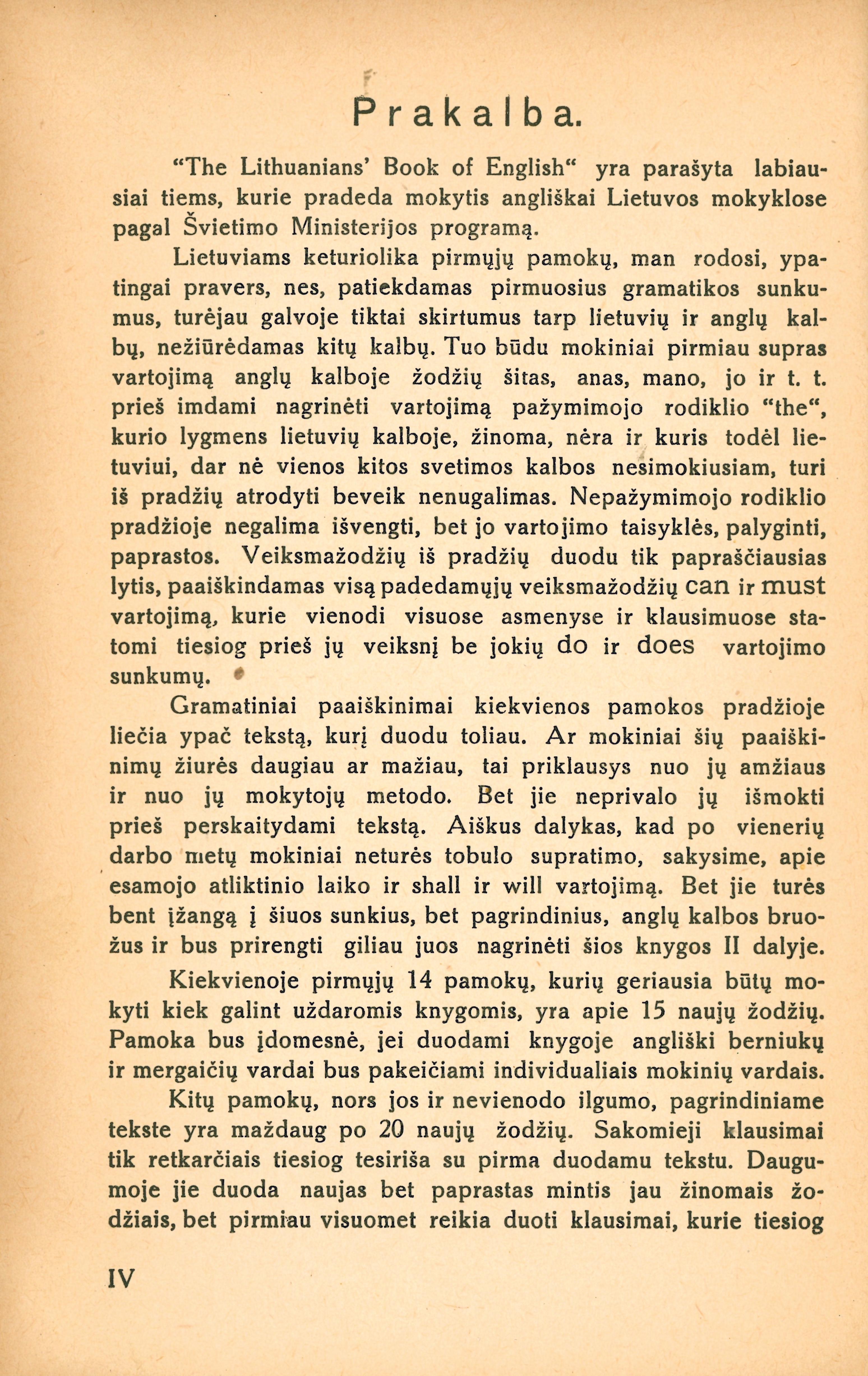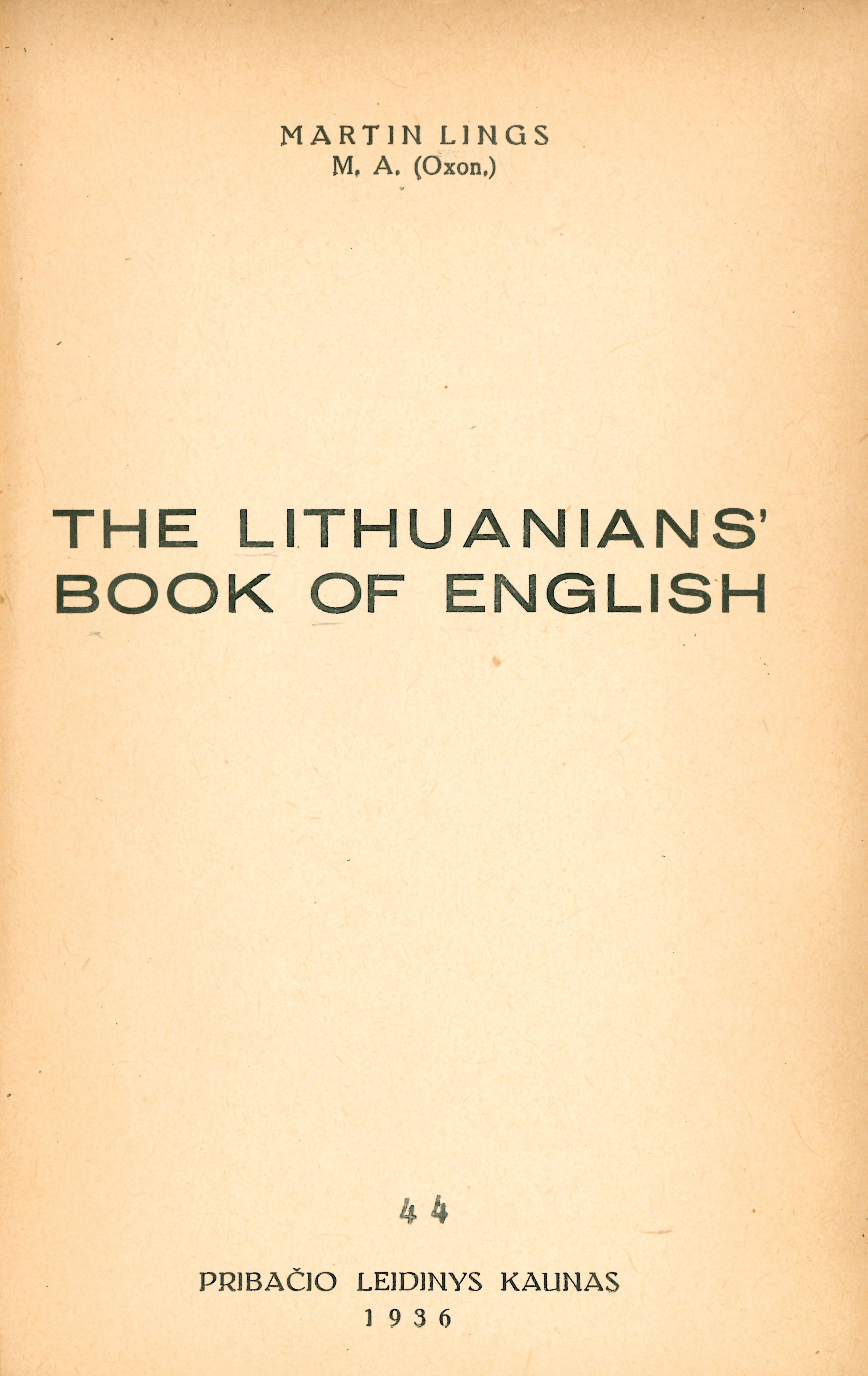 The Lithuanians book of English / Martin Lings. – Kaunas : Pribačio leidinys, 1936. – VIII, 152 p. : iliustr.