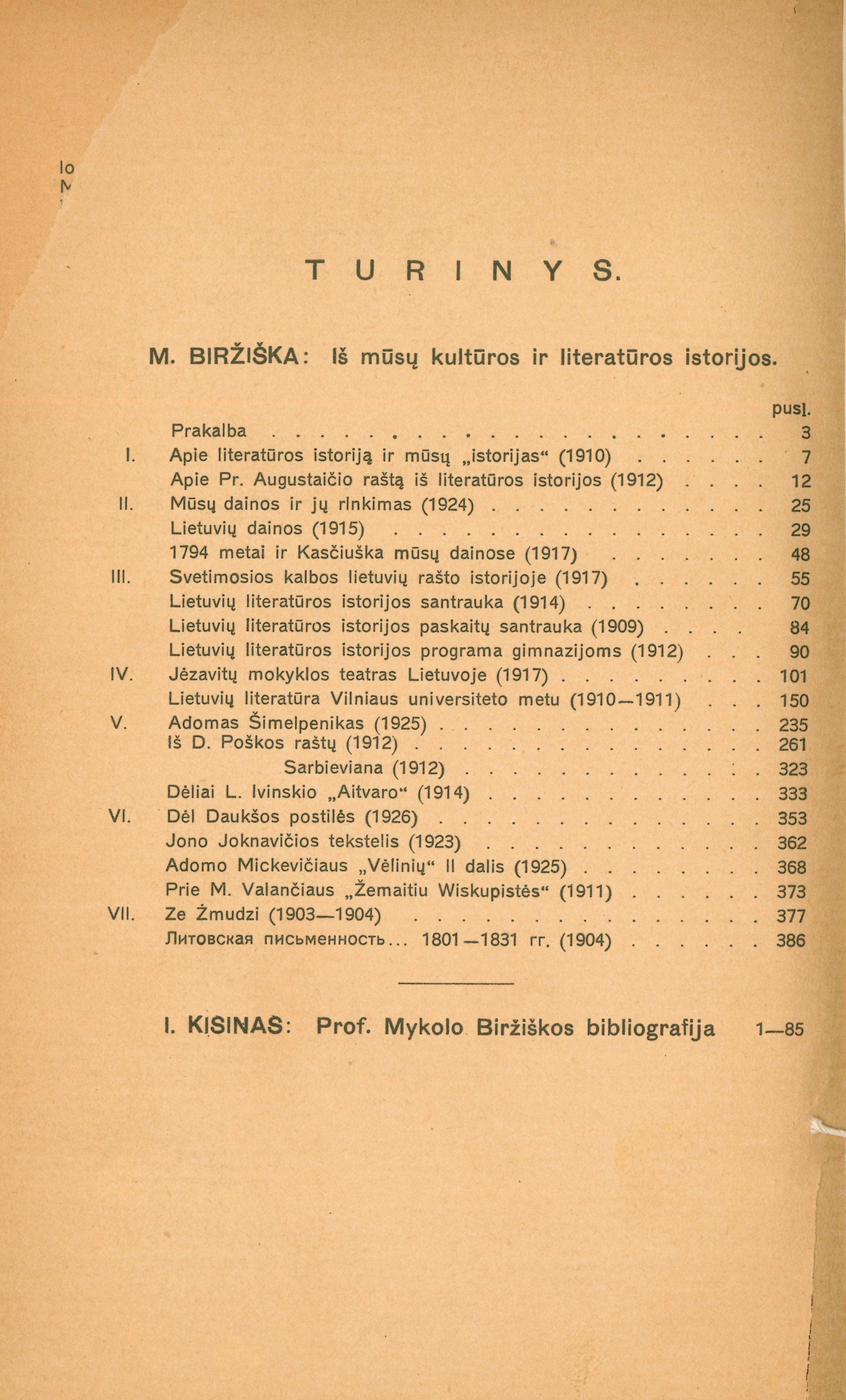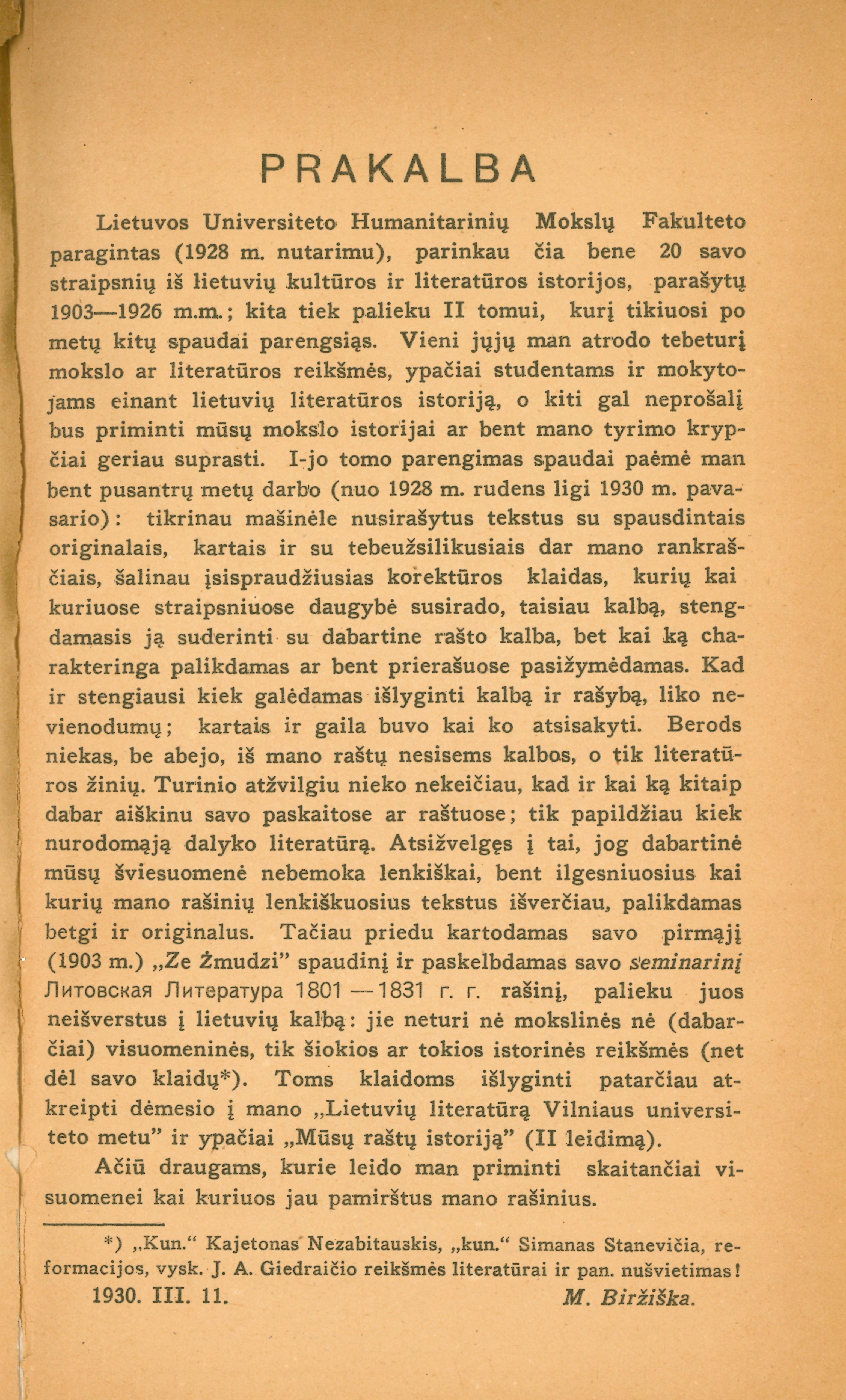 Iš musų kultūros ir literatūros istorijos. Kn. 1 / M. Biržiškos. – Kaunas: Vytauto Didžiojo universiteto Humanitarinių mokslų fakulteto leidinys, 1931. – 418, 85 p.