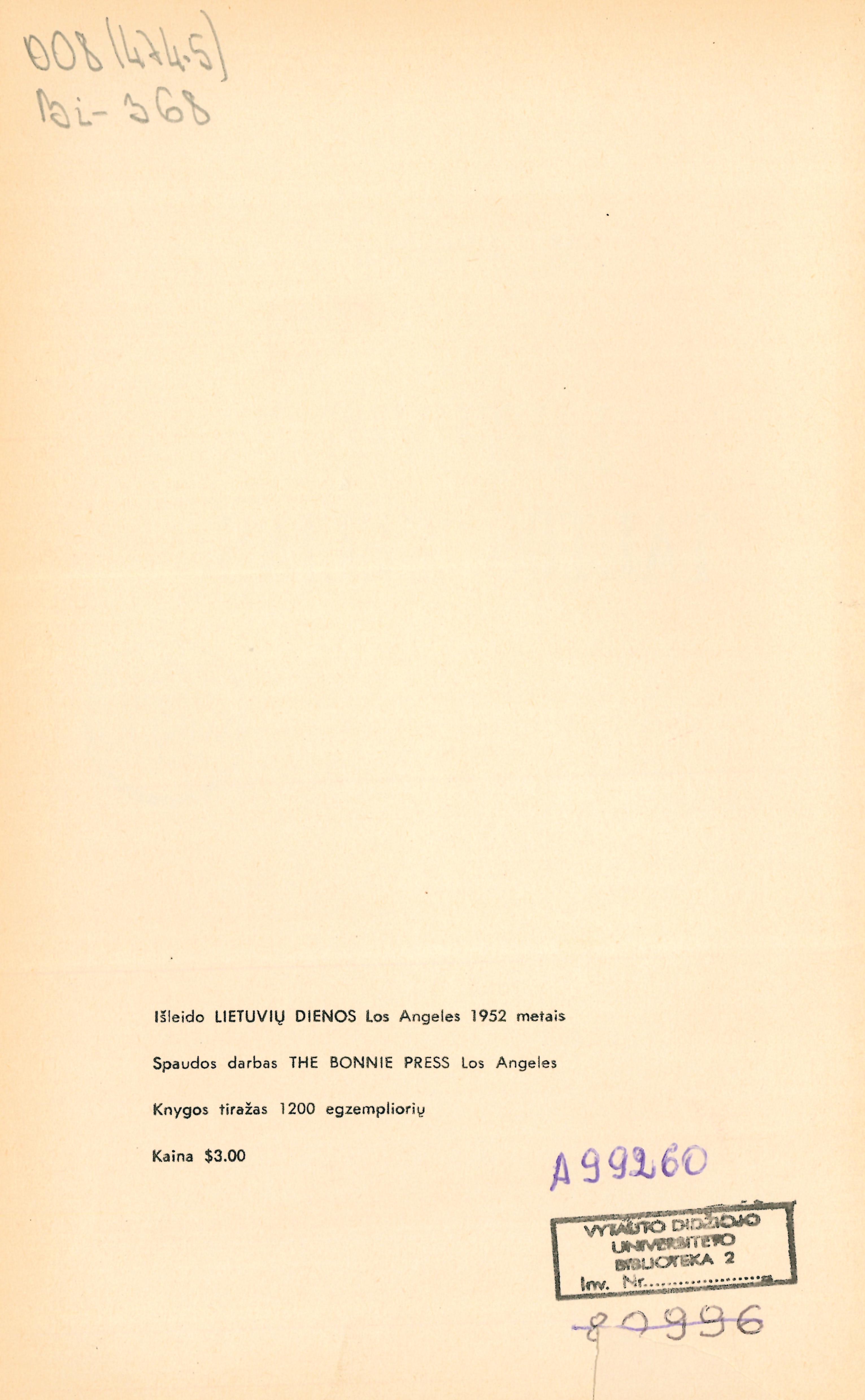 | Published | Los Angeles : Lietuvių dienos, 1952 |
