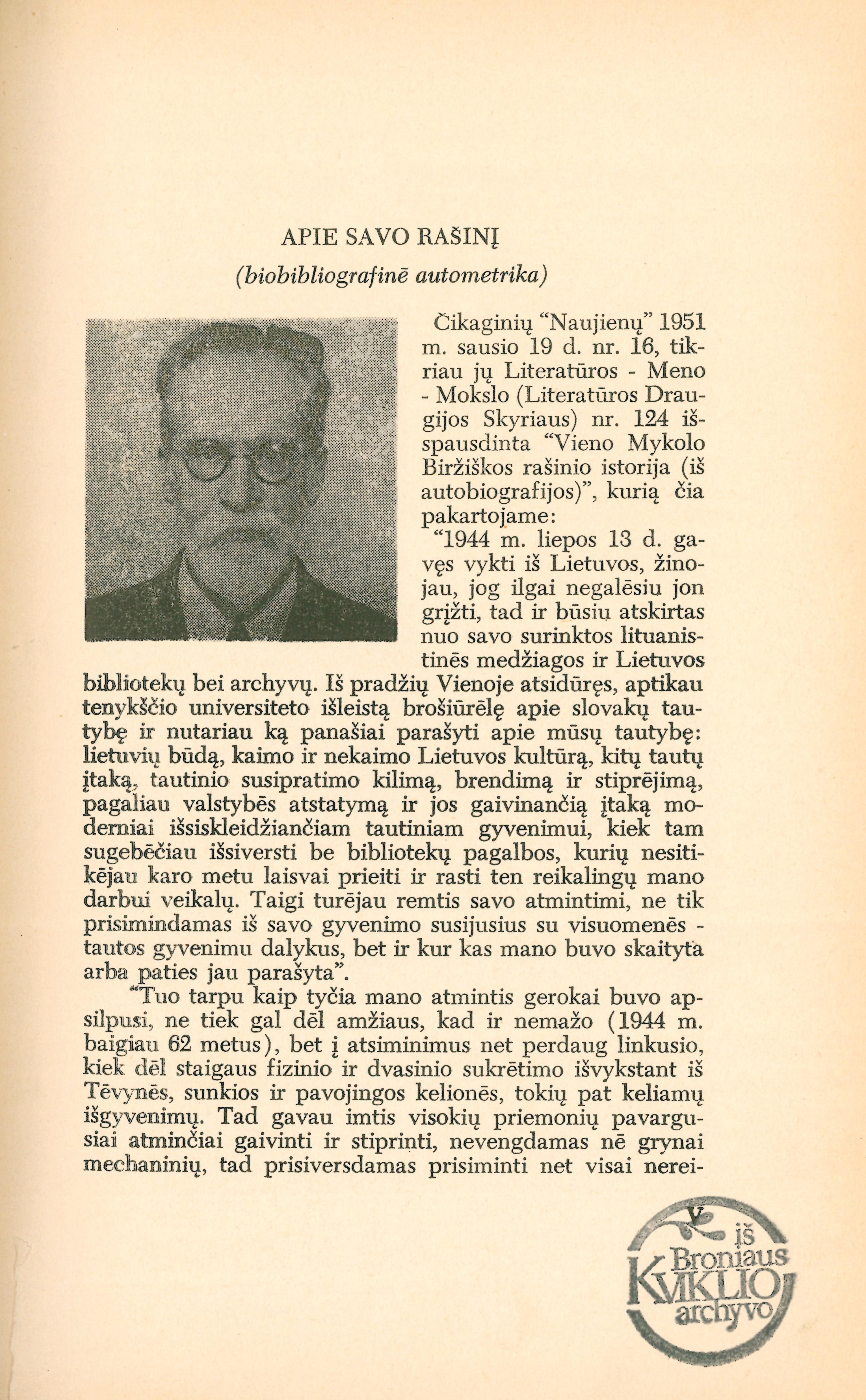 | Autorius | Biržiška, Mykolas, Humanitarinių mokslų fakultetas |