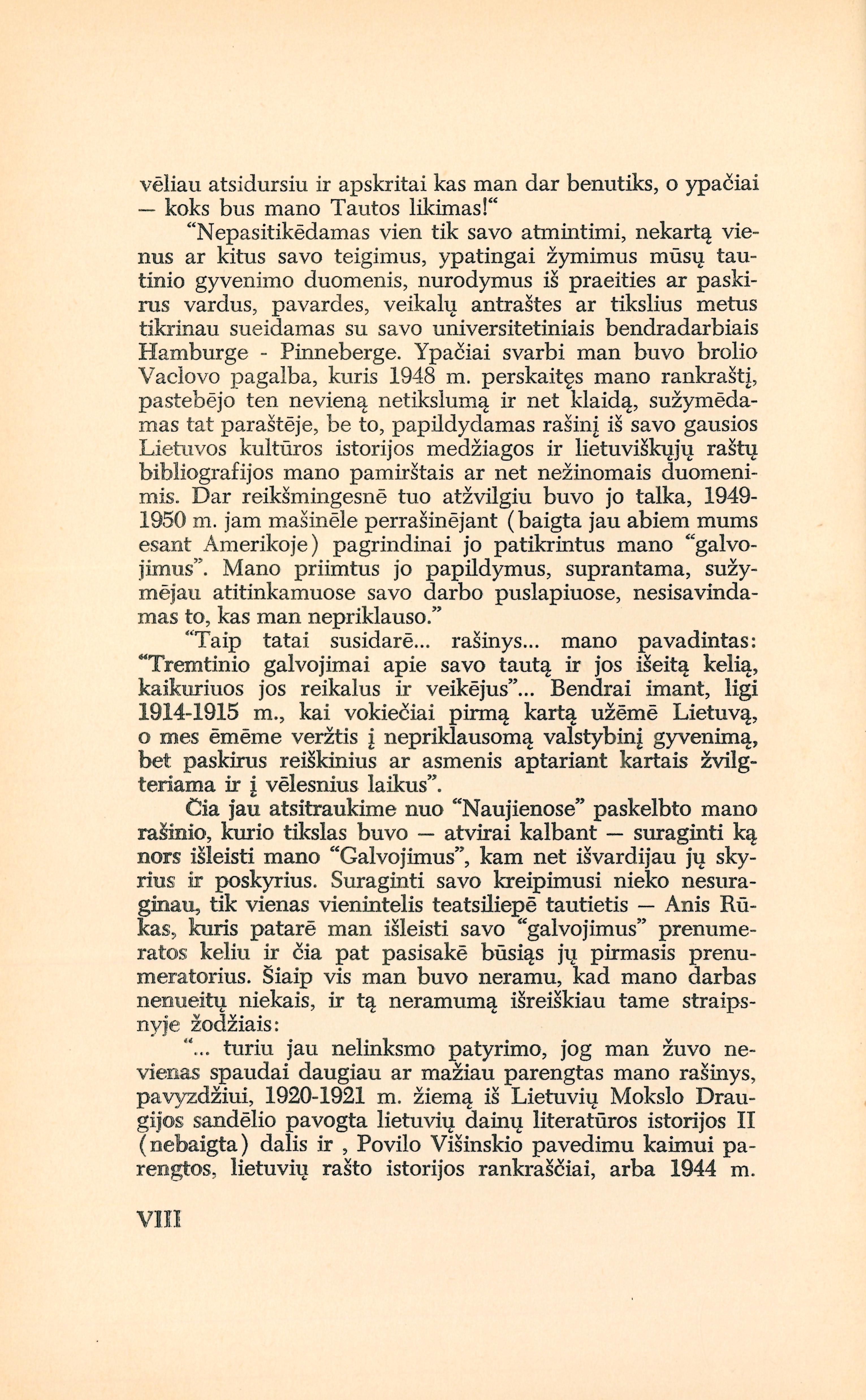 | Lietuvių tautos kelias į naująjį gyvenimą. T. 1 : Galvojimai apie tautą savyje ir kaimynų tarpe/ M. Biržiška. – Los Angeles: Lietuvių dienos, 1952. – XII, 240 p. [lt] | |