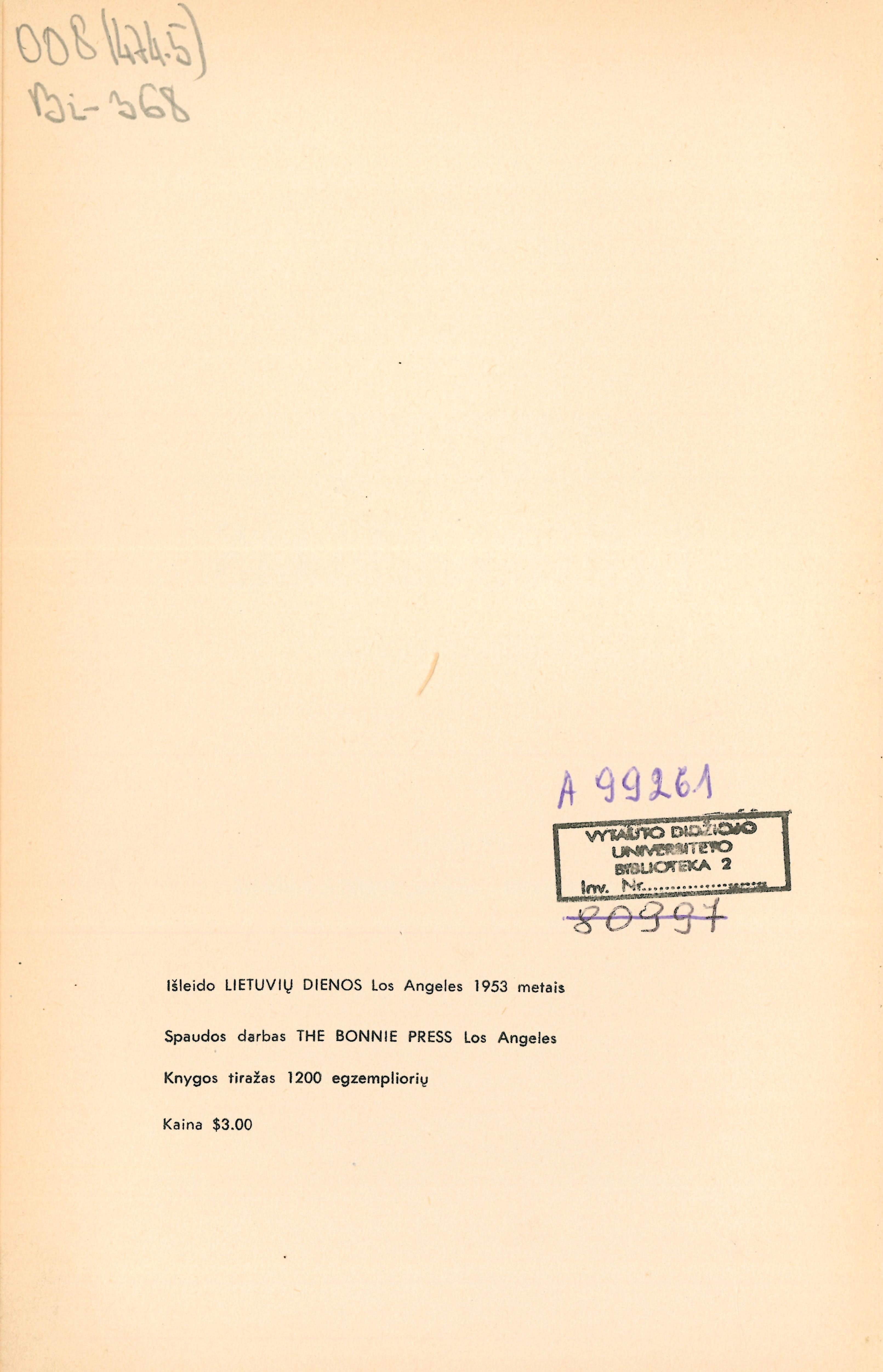 | Published | Los Angeles : Lietuvių dienos, 1953 |