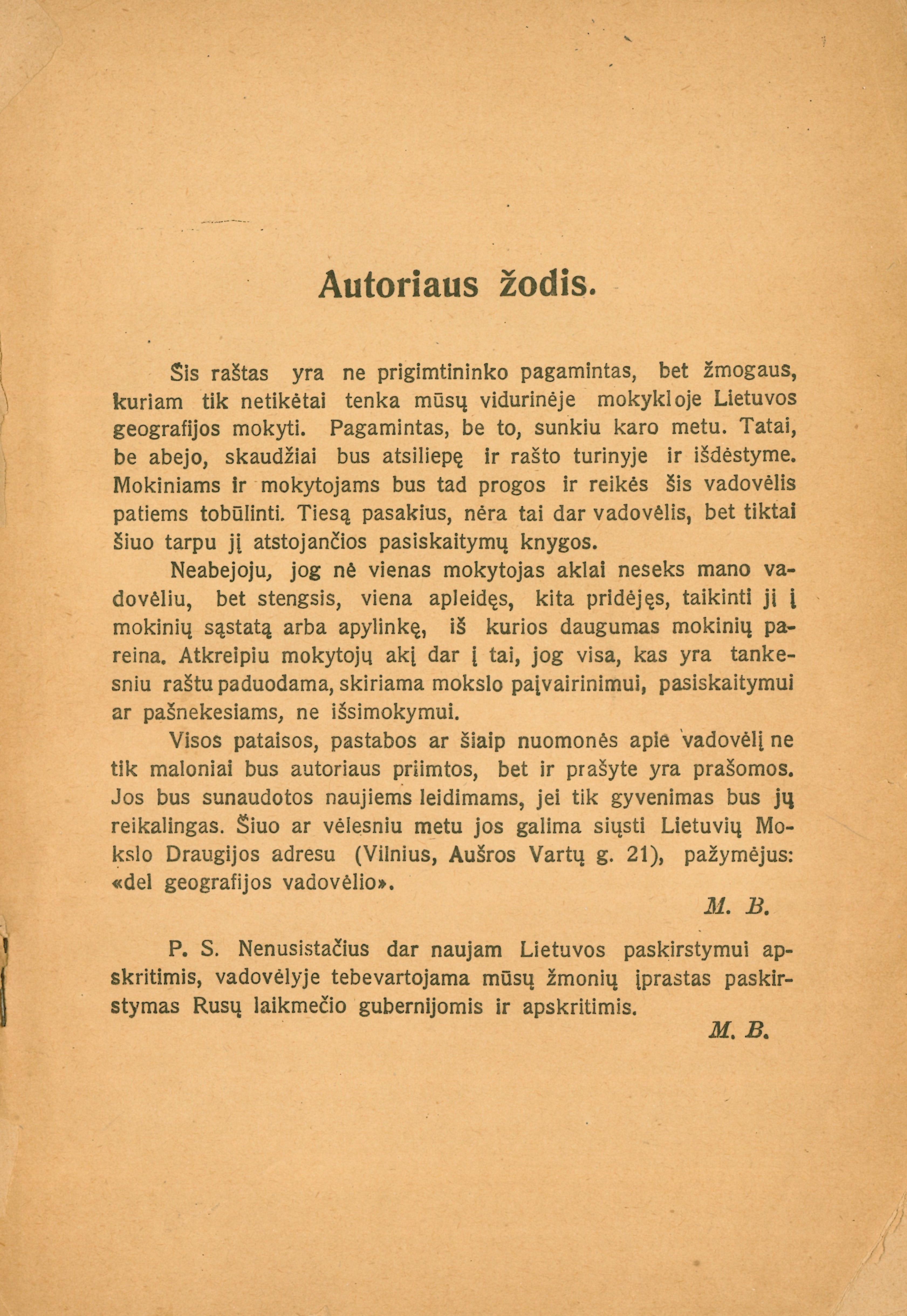 | Lietuvos geografija: (vidurinėms mokykloms vadovėlis). D. 1: Prigimtis / M. Biržiškos. – [2–as leidimas]. – Vilnius: Lietuvių mokslo draugijos leidinys, 1918. – 145 p. [lt] | |