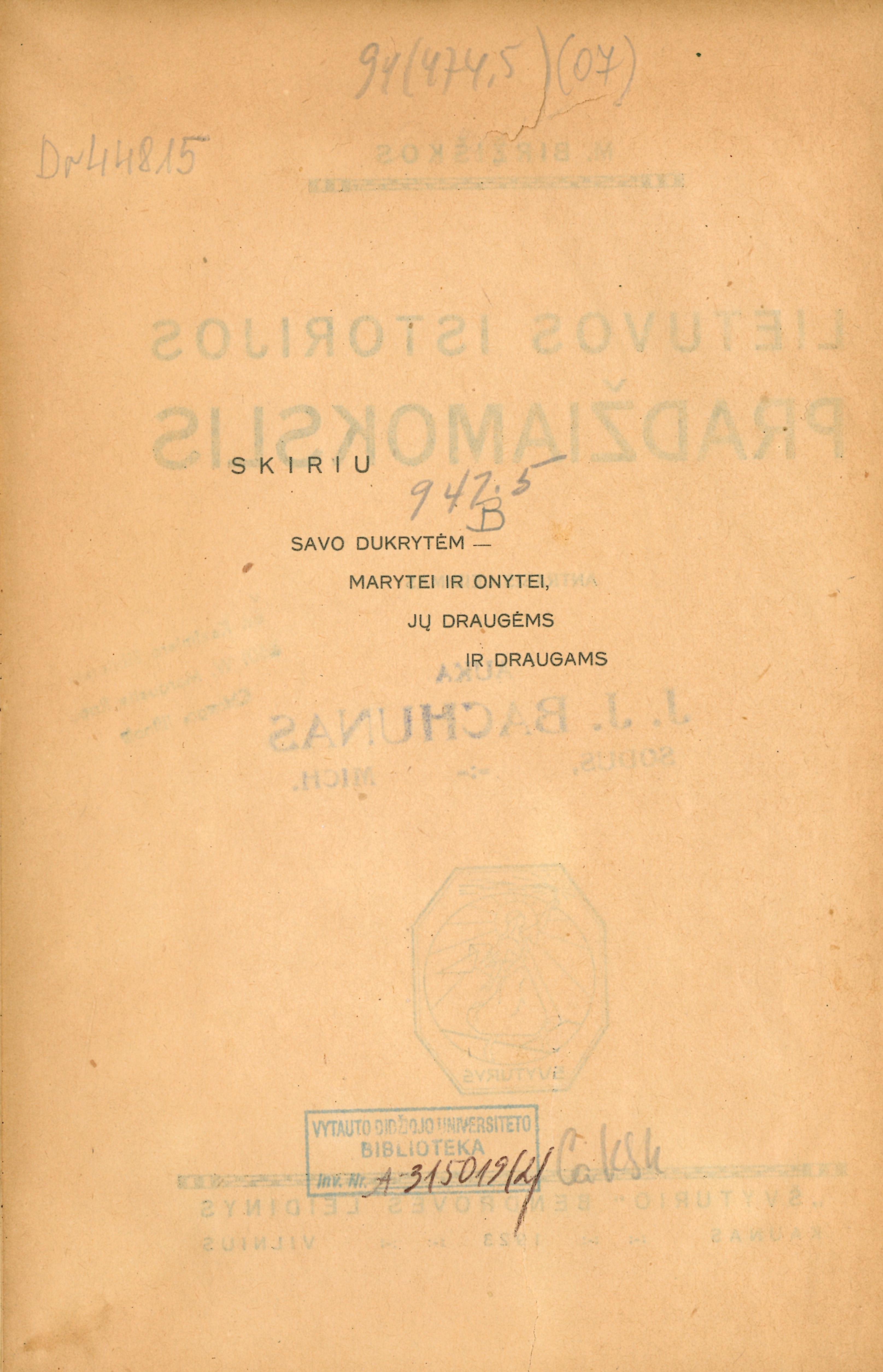 | Published | Vilnius : Lietuvos mokslo draugija, 1919 |