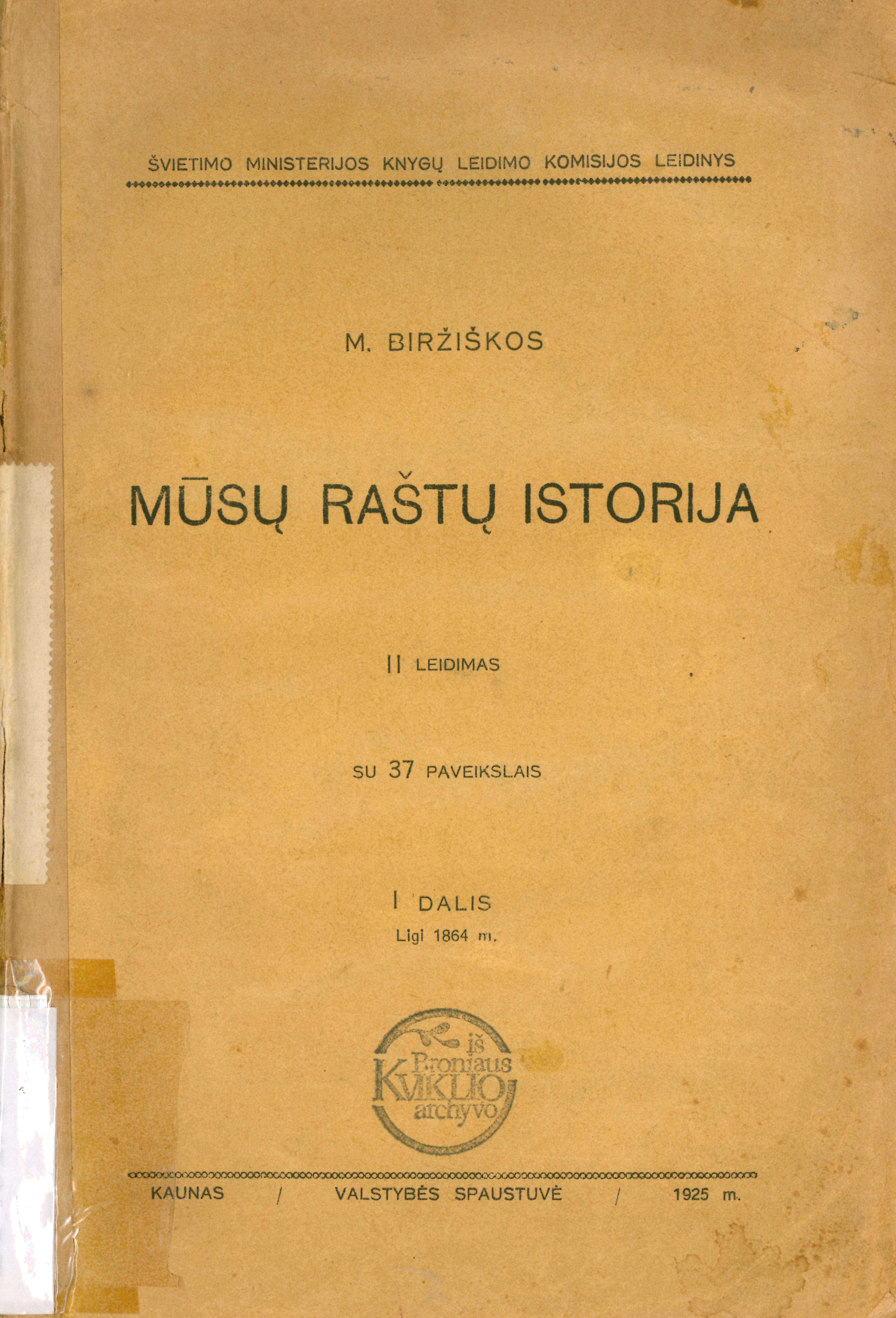 | Antraštė | Mūsų raštų istorija. D. 1: Ligi 1864 m. / M. Biržiškos. – Vilnius; Kaunas: Švyturys, 1920. – 112 p. [lt] |