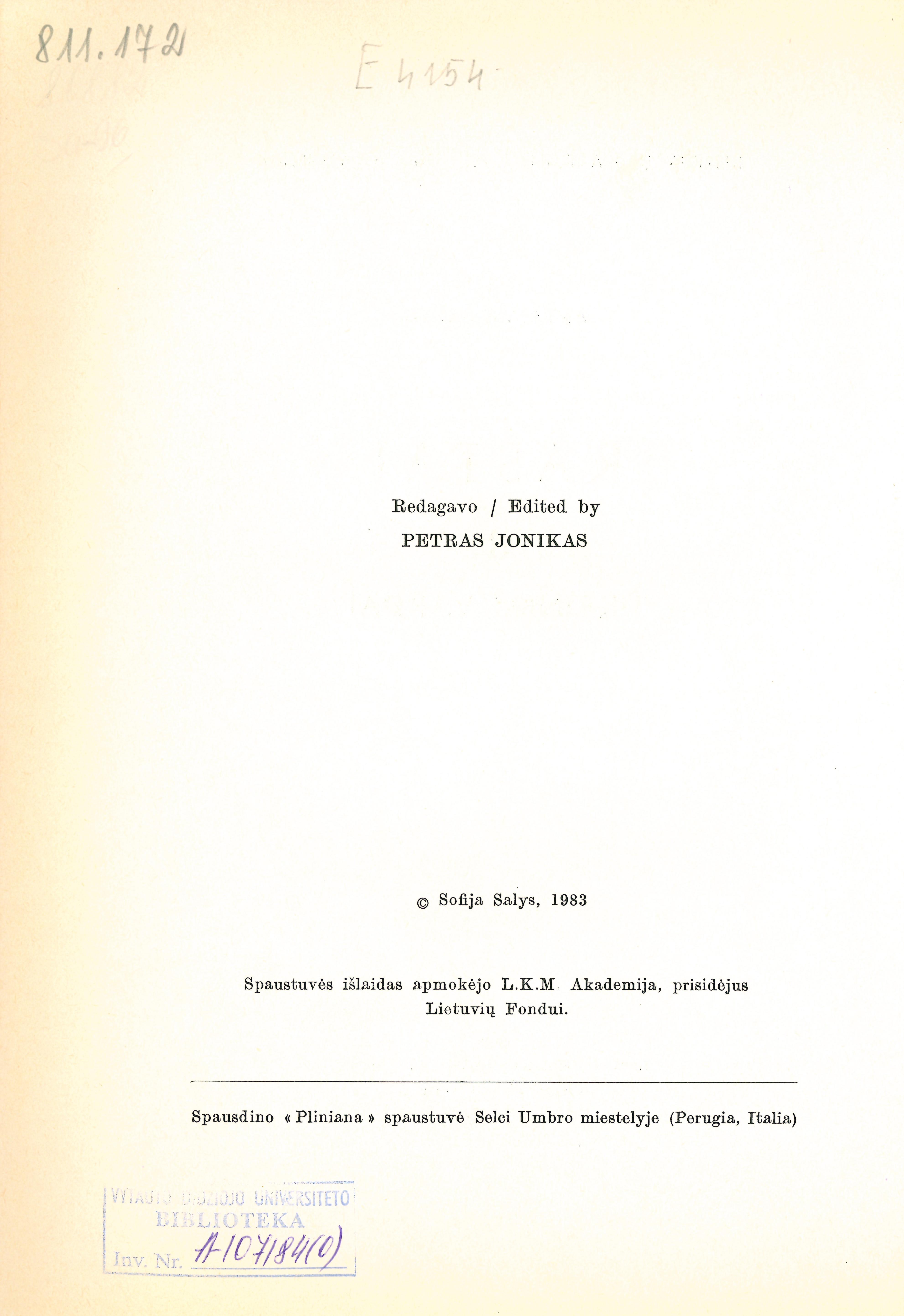 T. 2 : Tikriniai vardai. – Su P. Joniko pratarme. – Roma, 1983.
