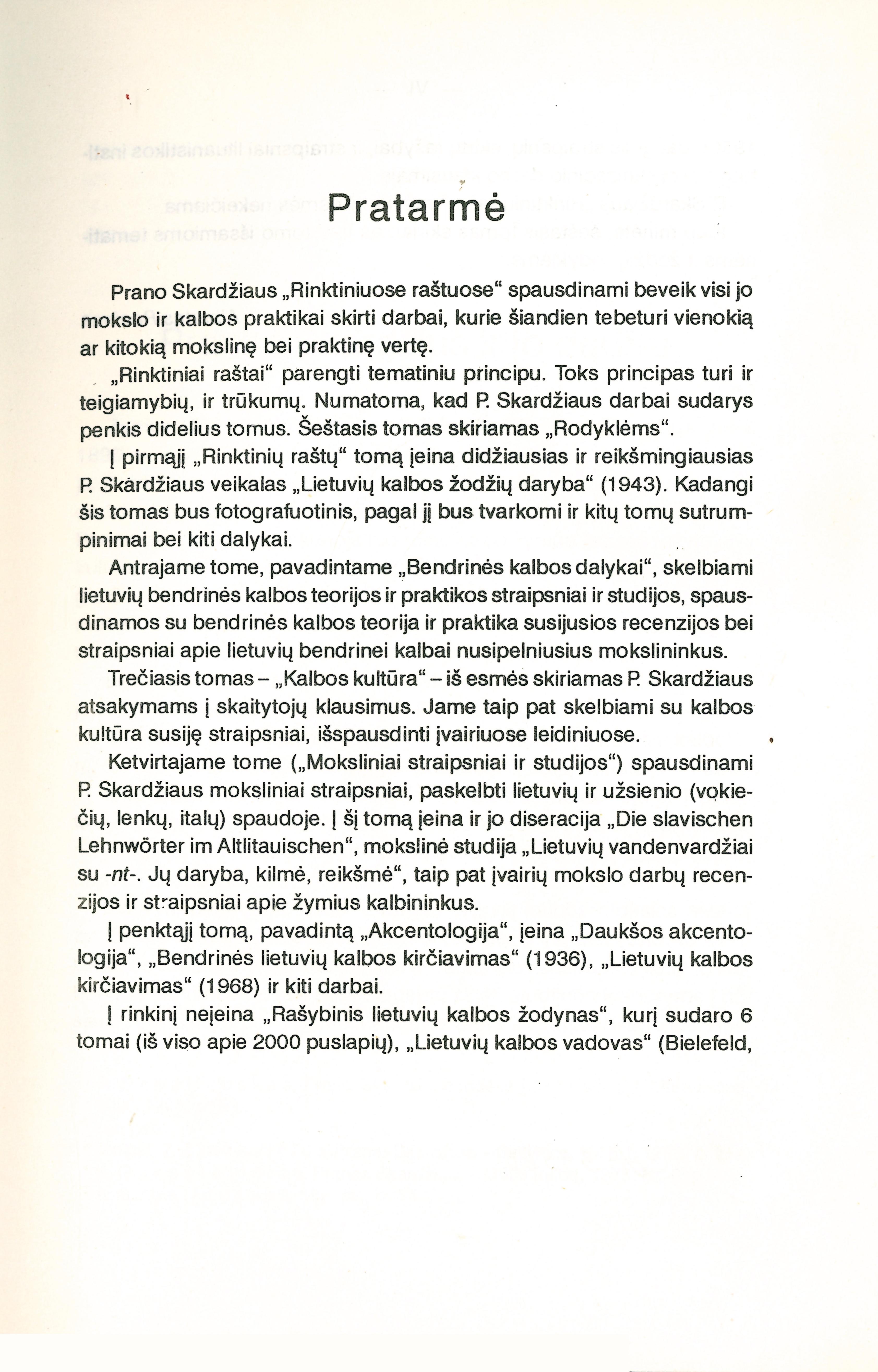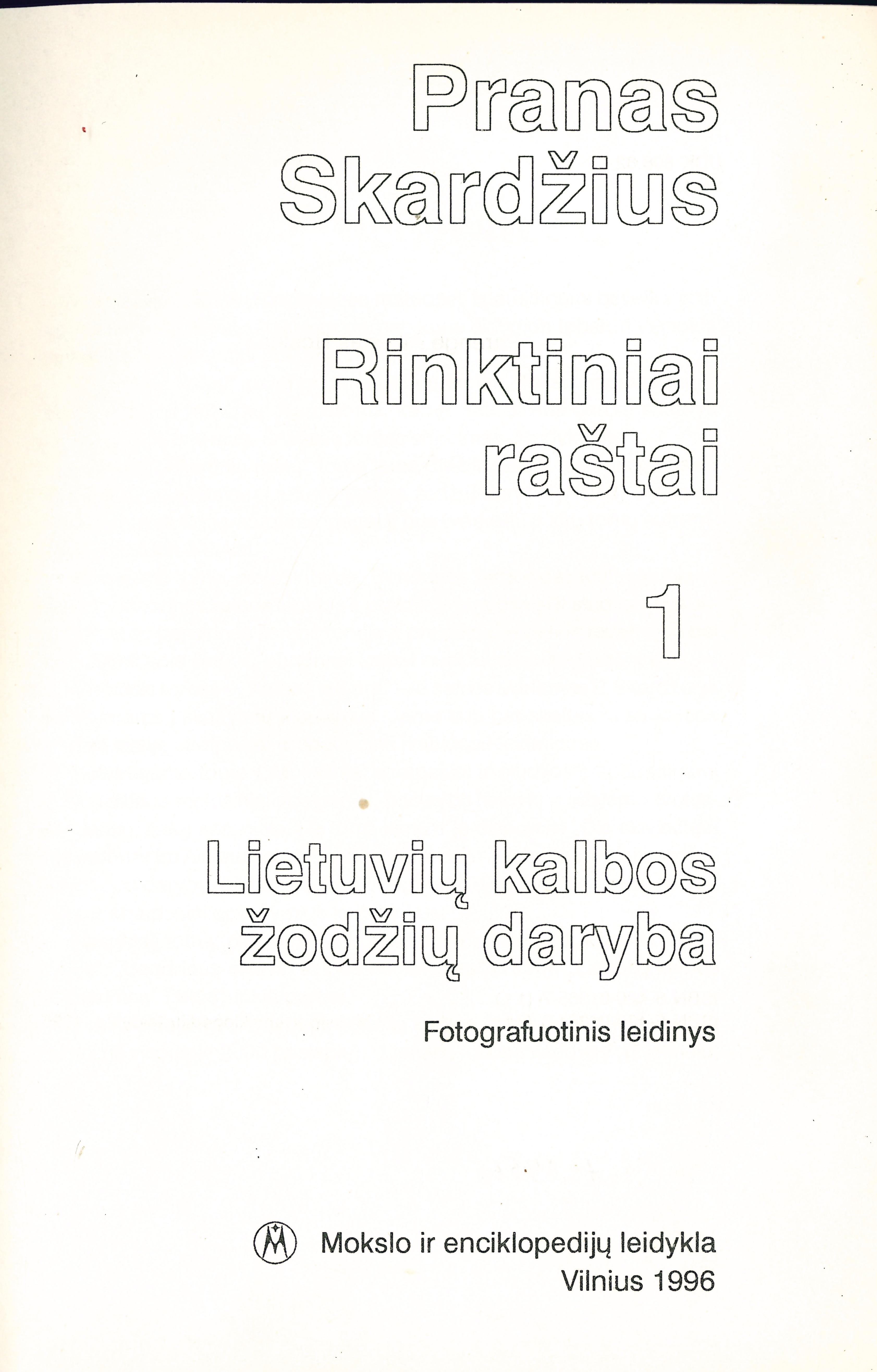 Rinktiniai raštai / Pranas Skardžius ; sudarė ir parengė Albertas Rosinas. – Fotografuotas leidimas. – Vilnius : Mokslo ir enciklopedijų leidykla, 1996-2014. – 6 tomai. – (Kalbos ugdymo programa)