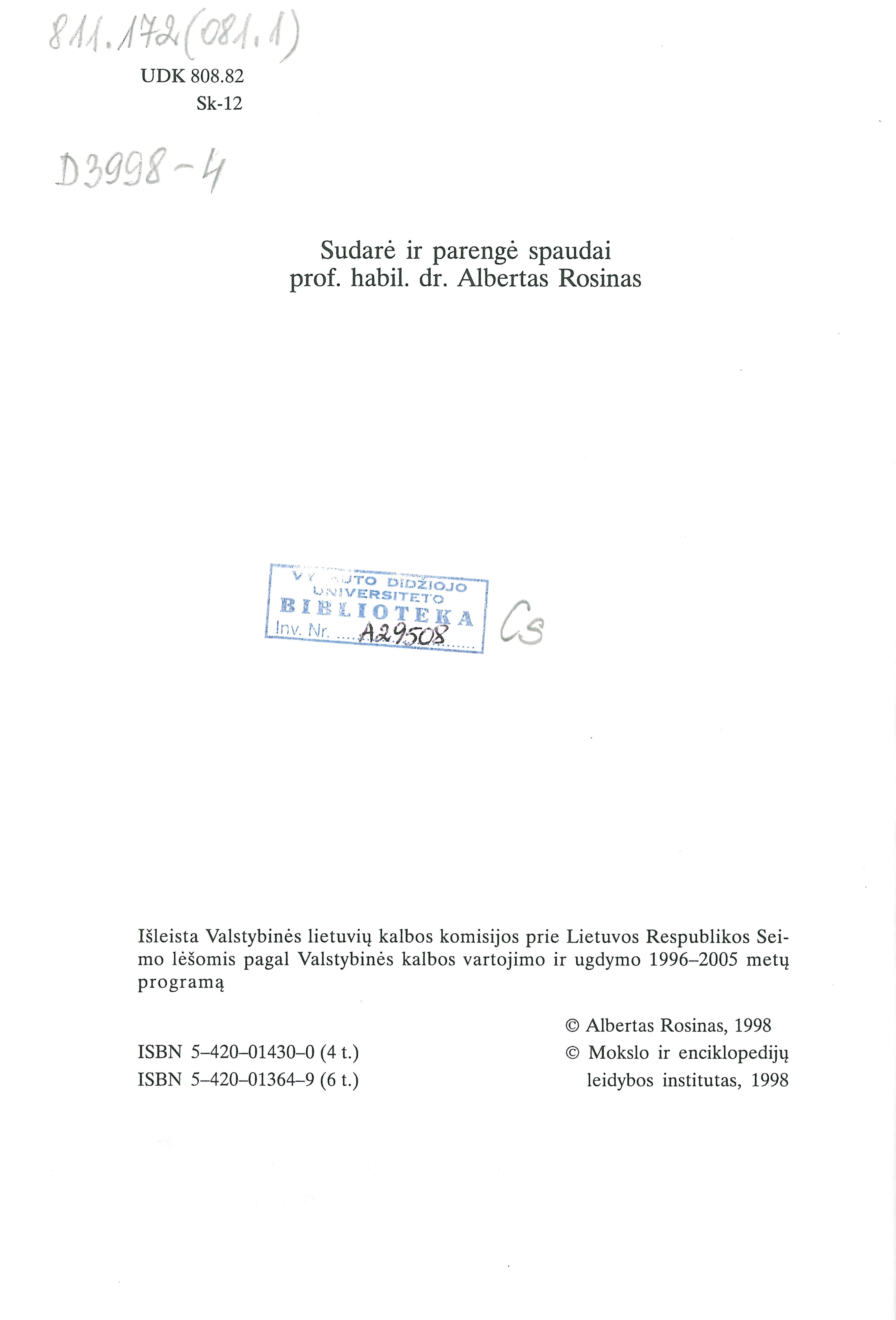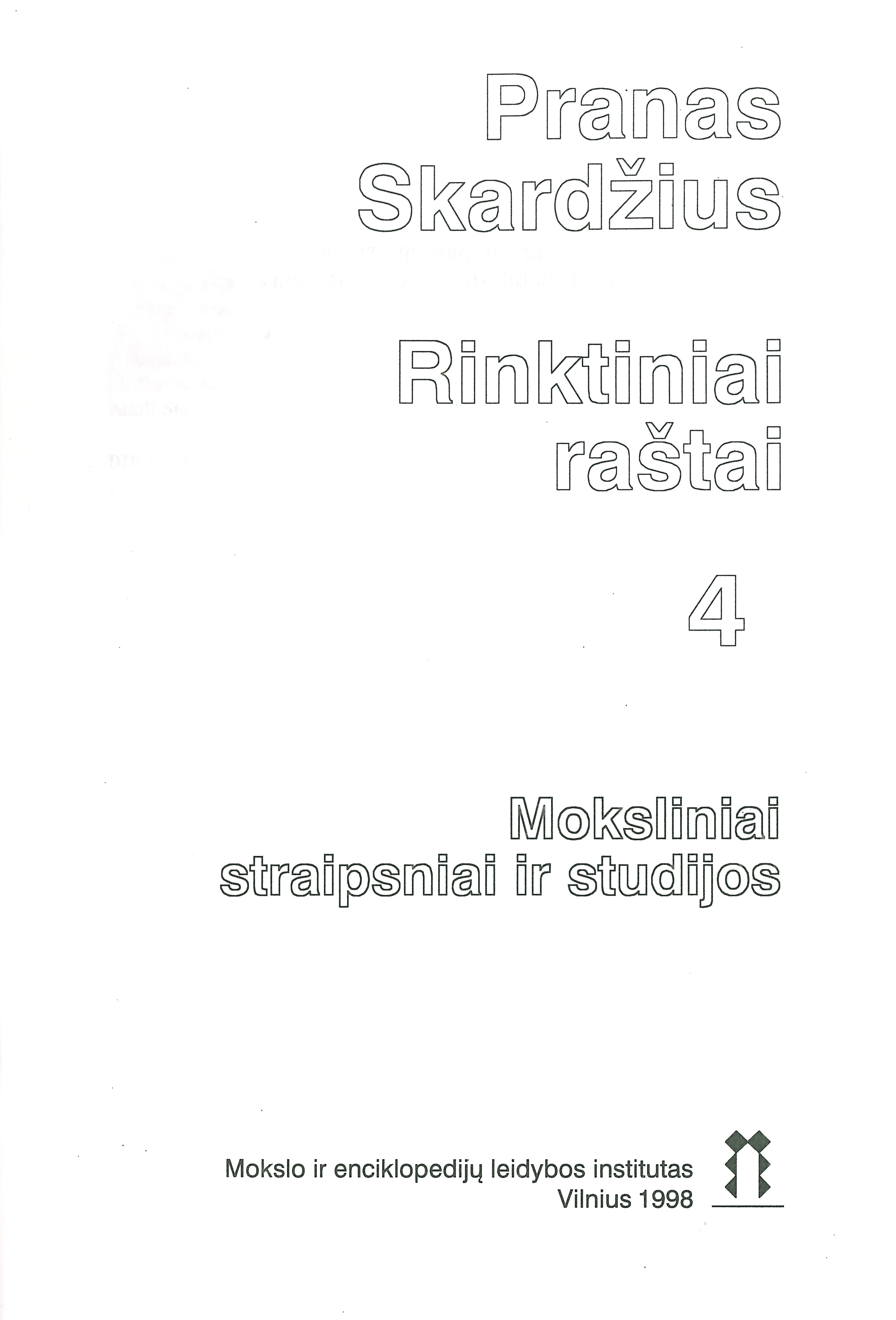 T. 4 : Moksliniai straipsniai ir studijos. – Vilnius, 1998.
