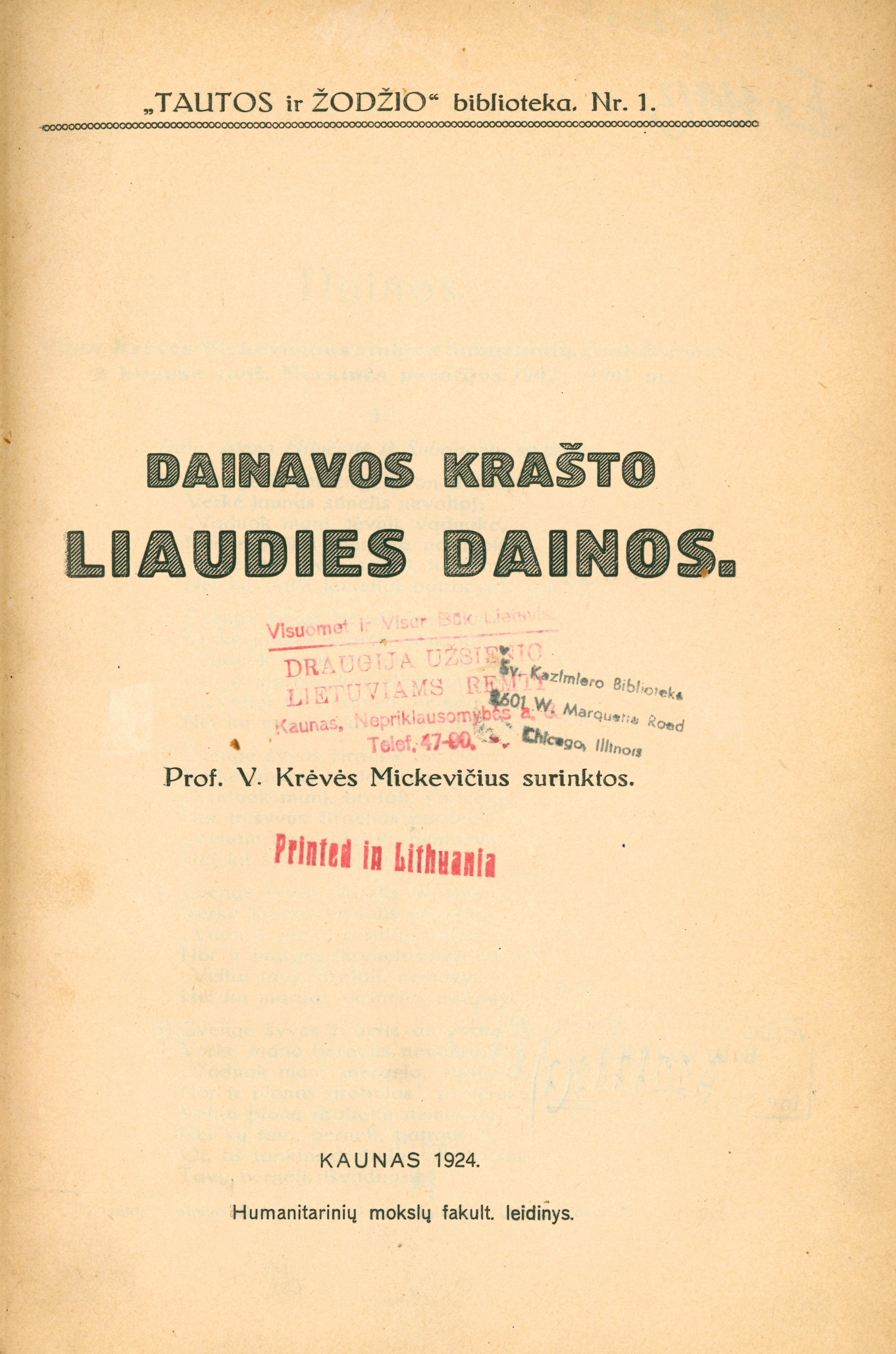 | Published | Kaunas: Humanitarinių mokslų fakulteto leidinys, 1924 |