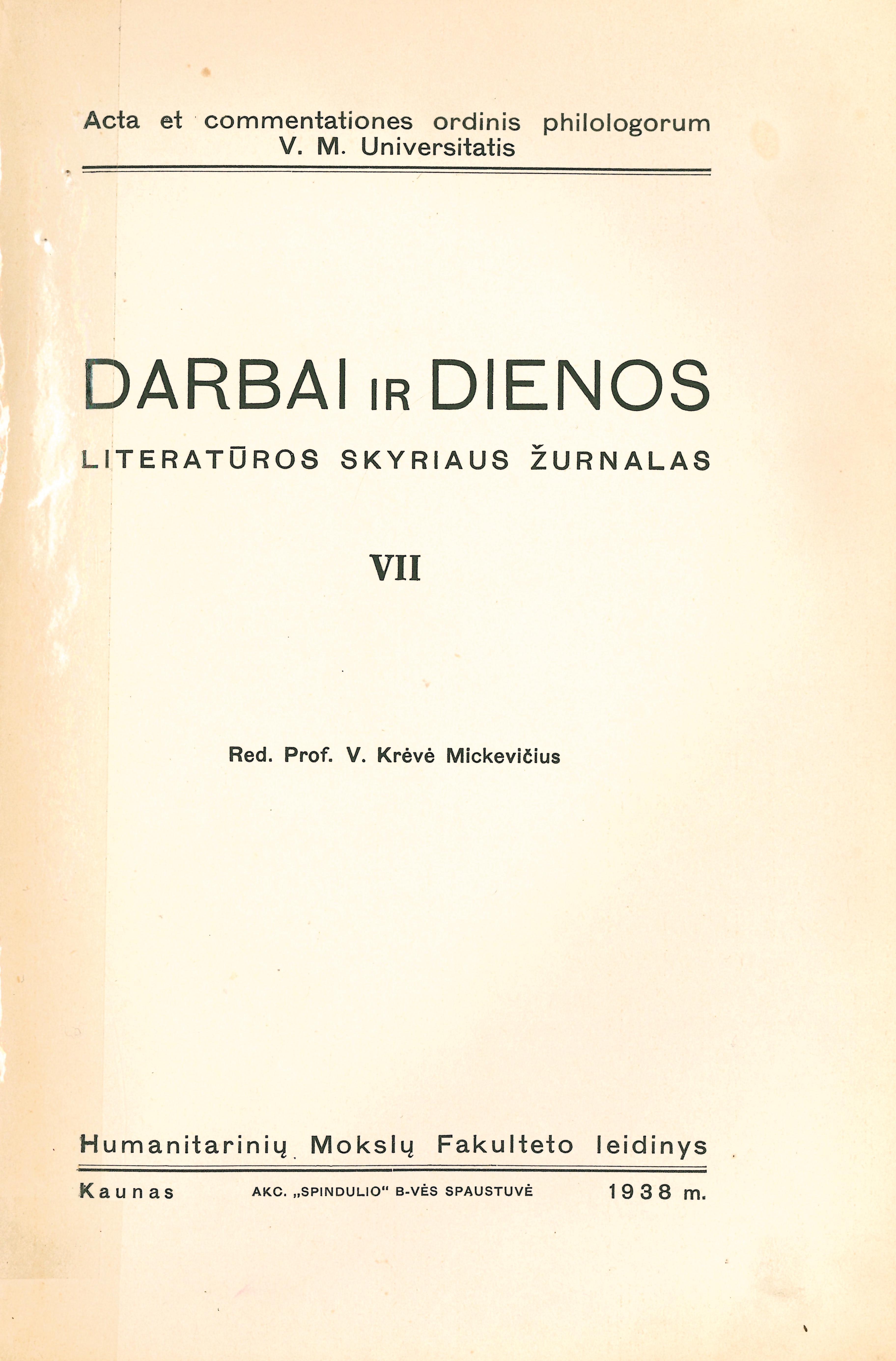 | Autorius | Vincas Krėvė Mickevičius, Humanitarinių mokslų fakultetas |