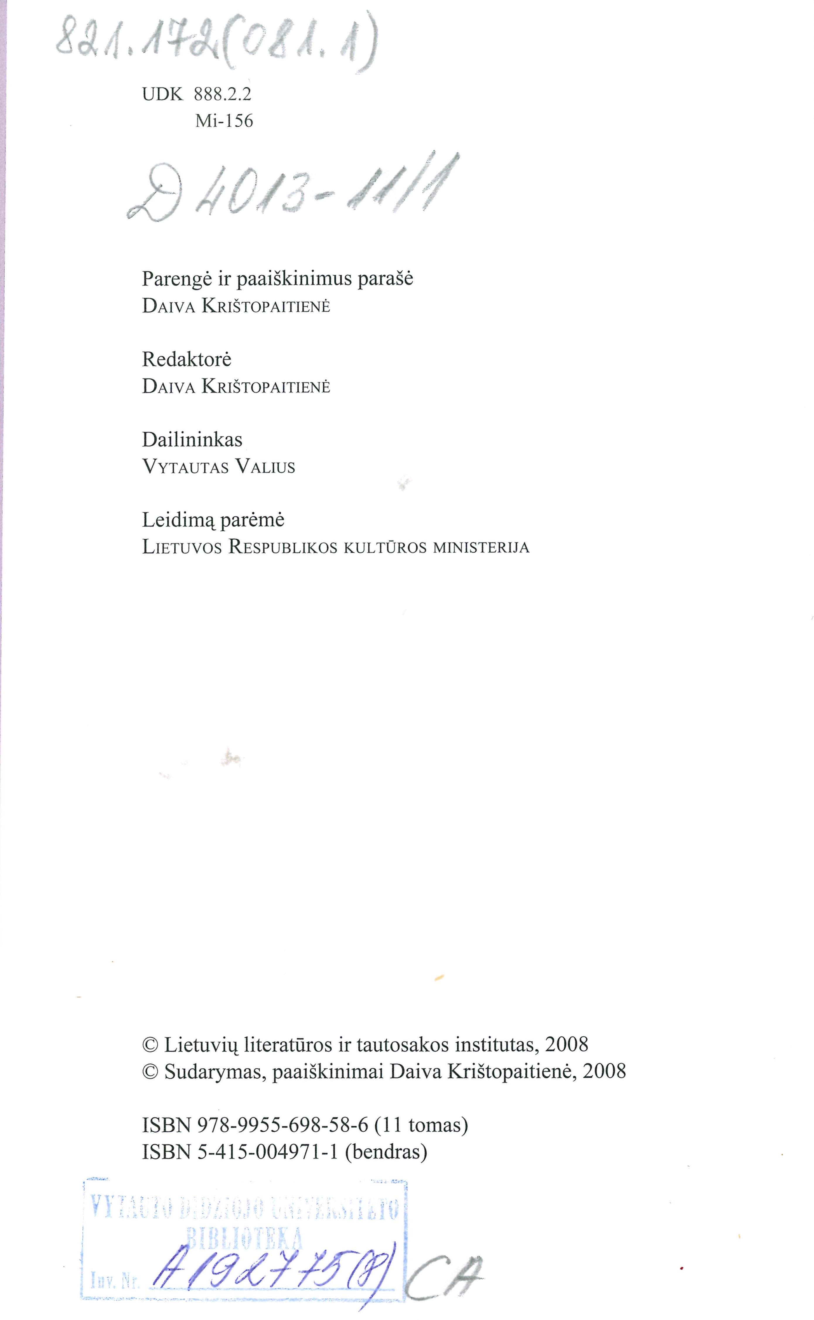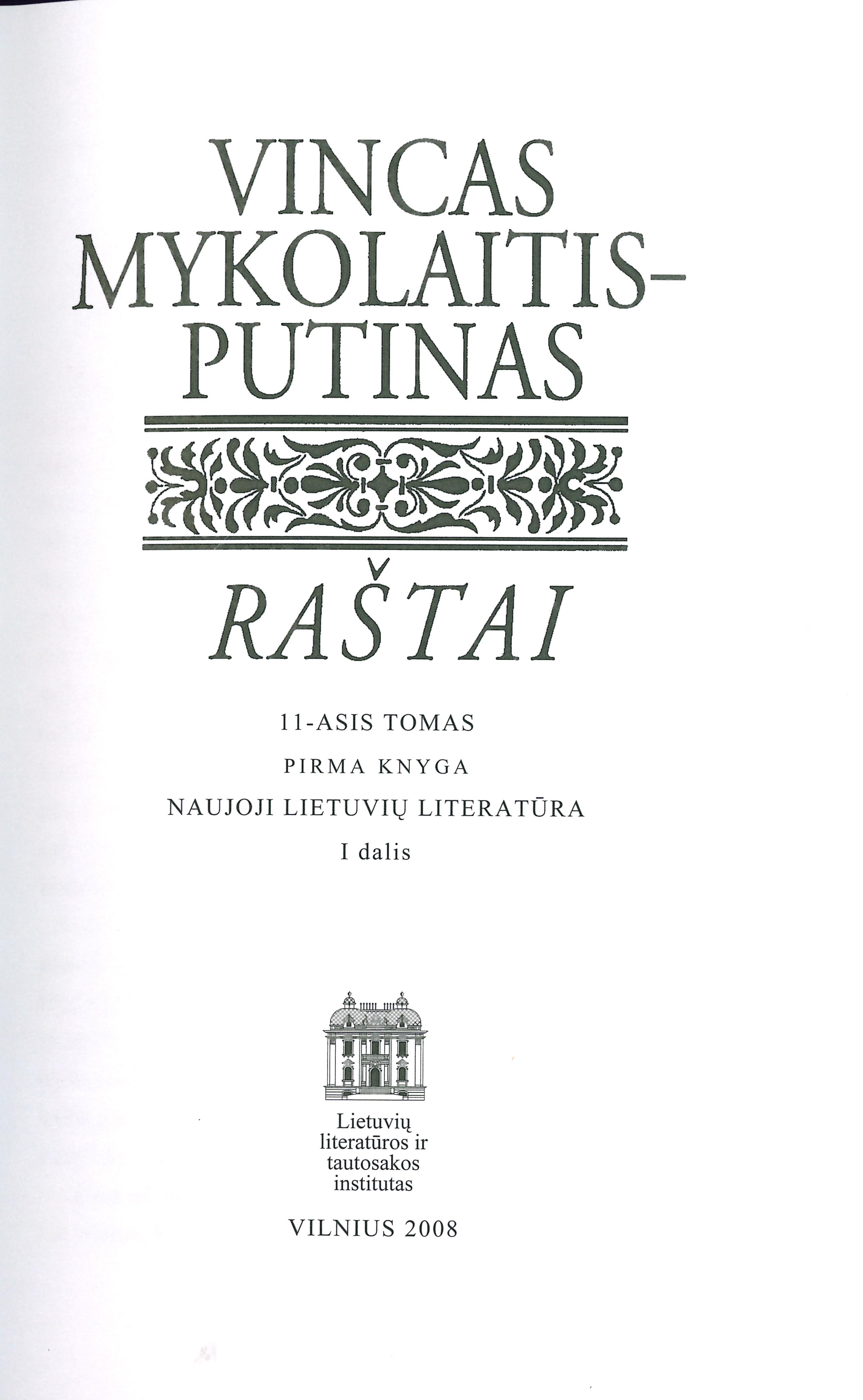 11-asis tomas, Pirma knyga : Naujoji lietuvių literatūra, I dalis. – Vilnius, 2008.