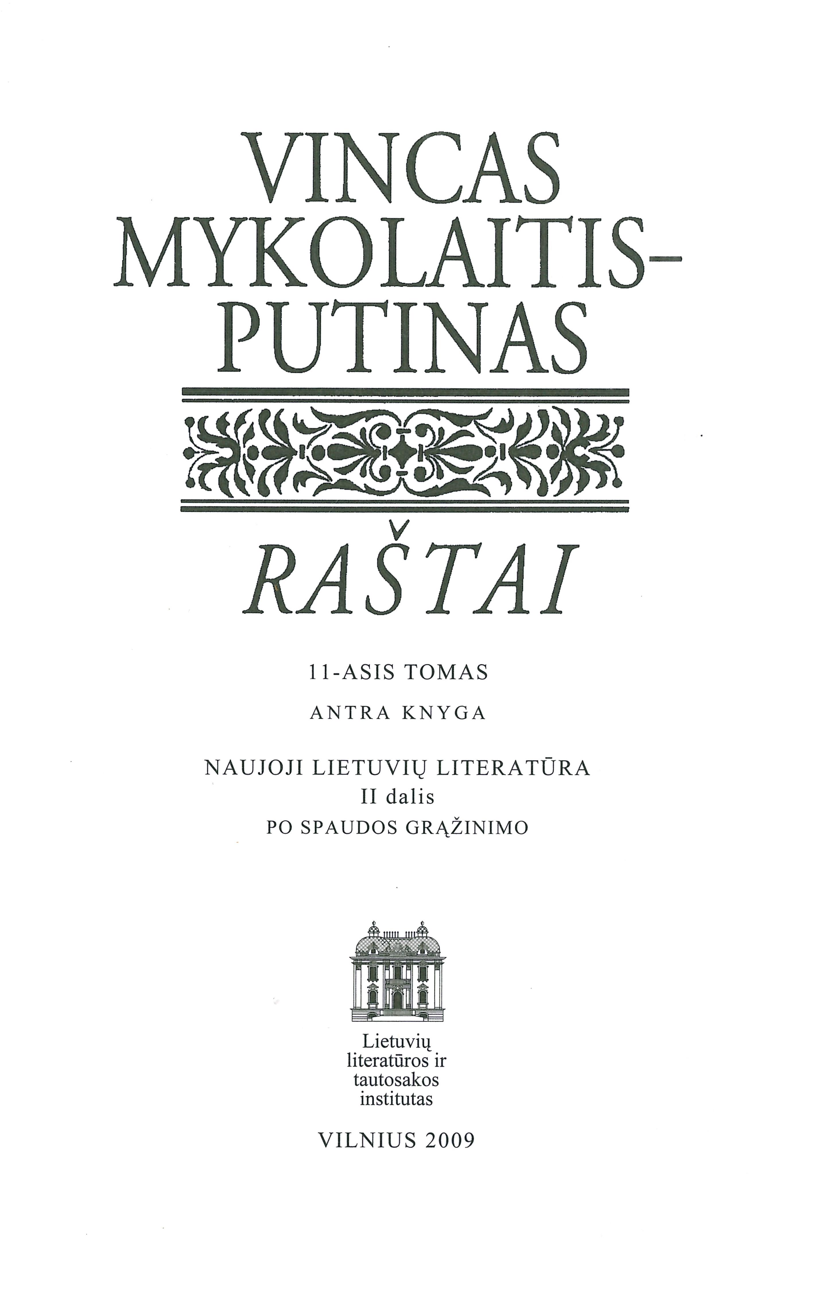 11-asis tomas, Antra knyga : Naujoji lietuvių literatūra, II dalis : Po spaudos grąžinimo. – Vilnius, 2009.