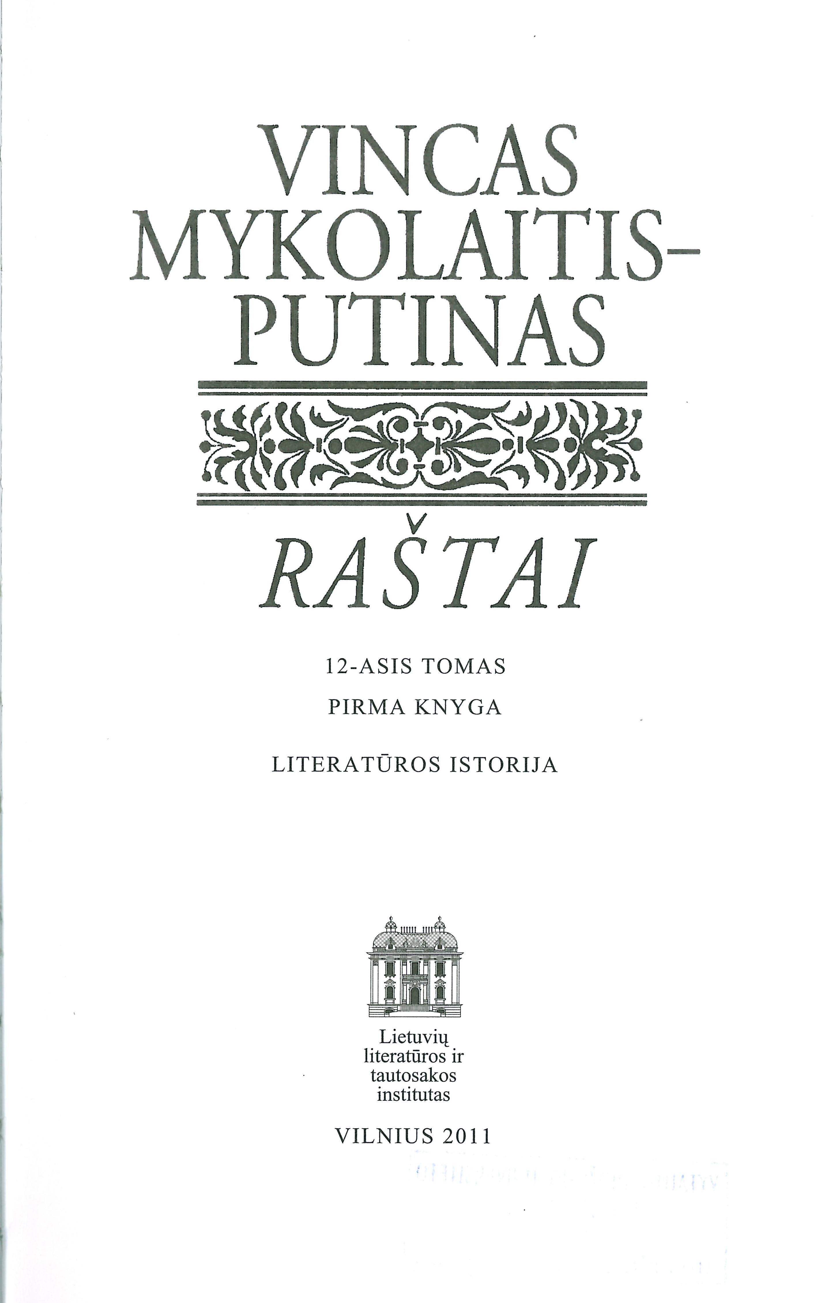 12-asis tomas, Pirma knyga : Literatūros istorija. – Vilnius, 2011.