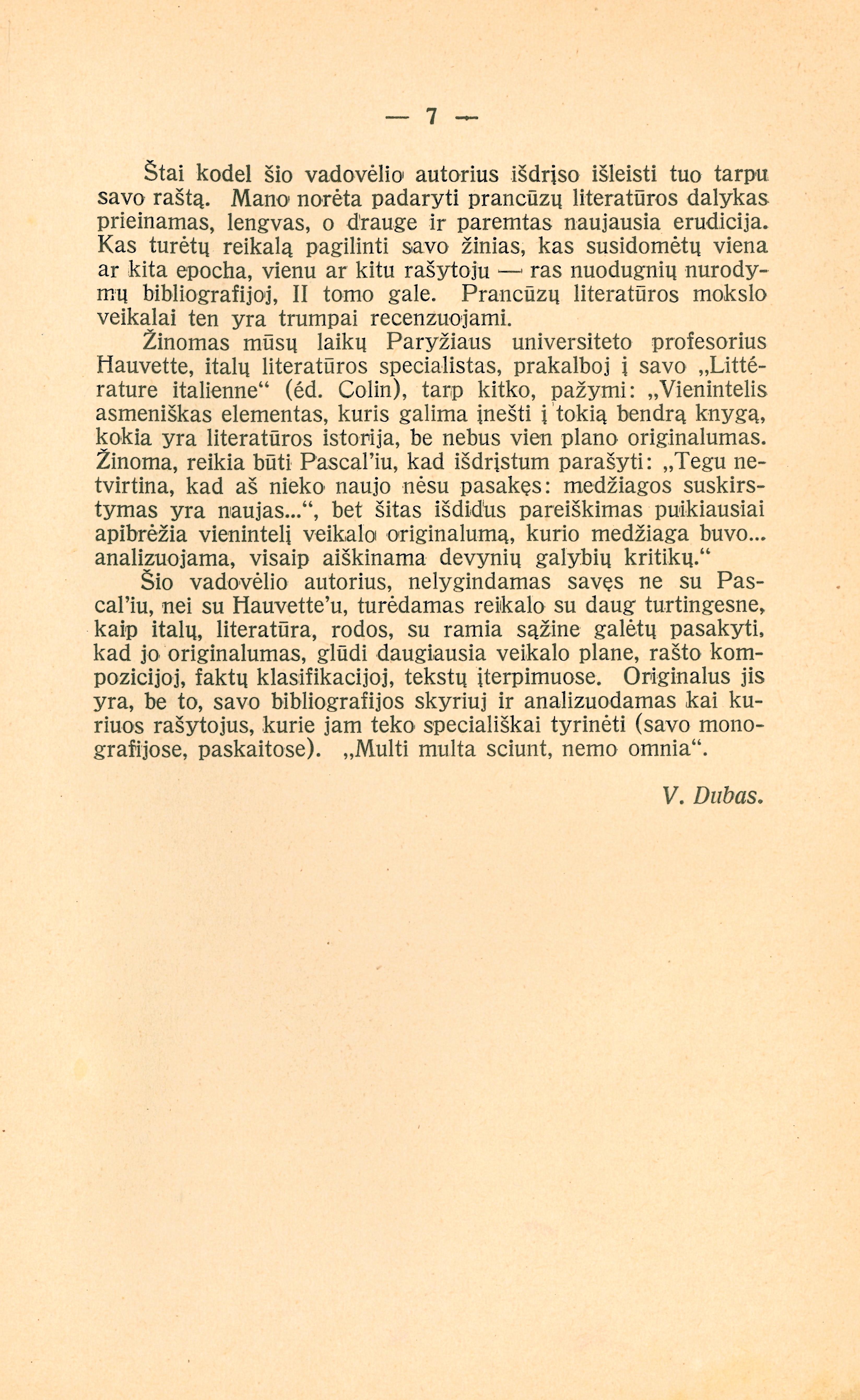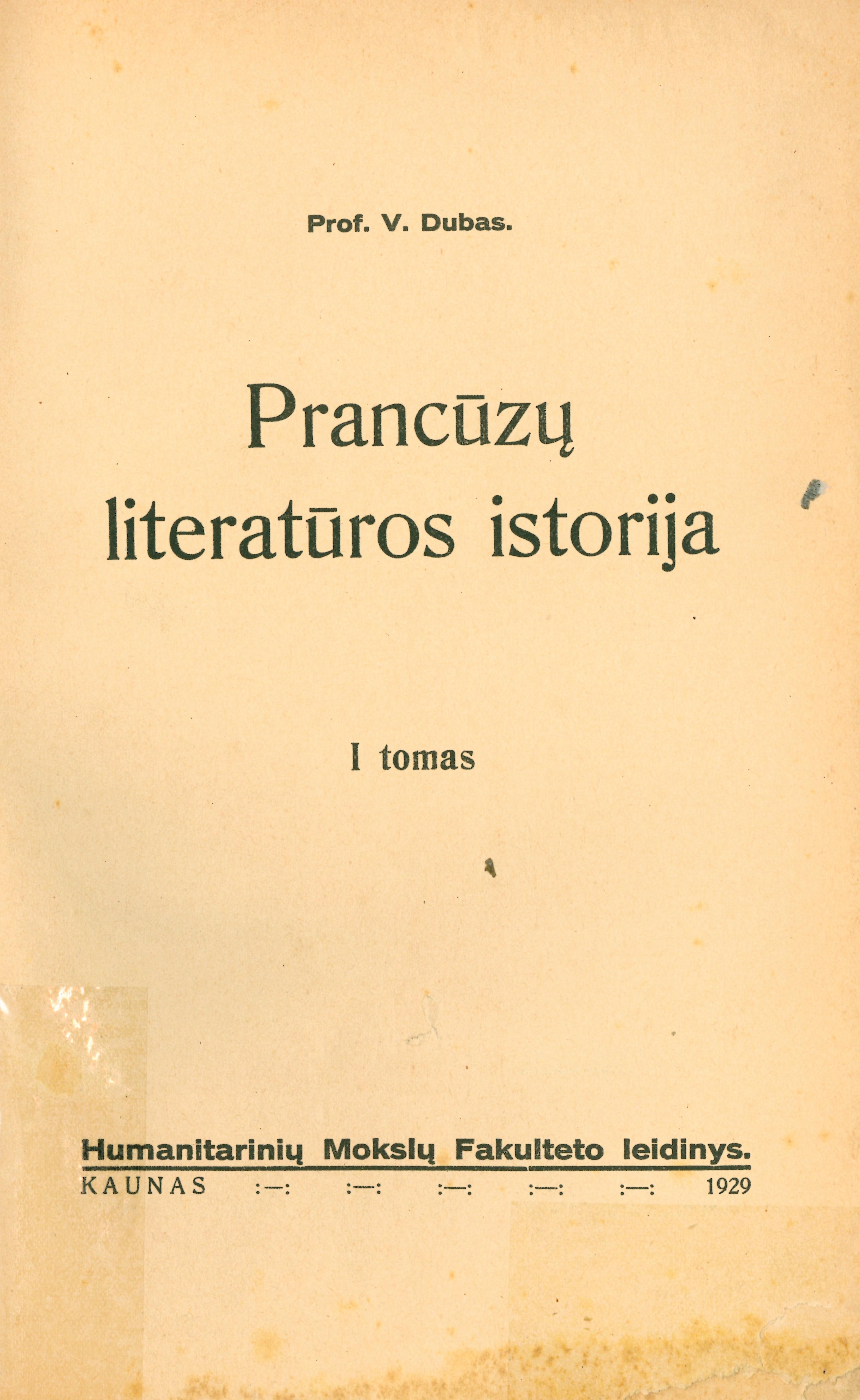 | Antraštė | Prancūzų literatūros istorija. T. 1 / V. Dubas. – Kaunas: Humanitarinių mokslų fakulteto leidinys, 1929. – 413 p. [lt] |