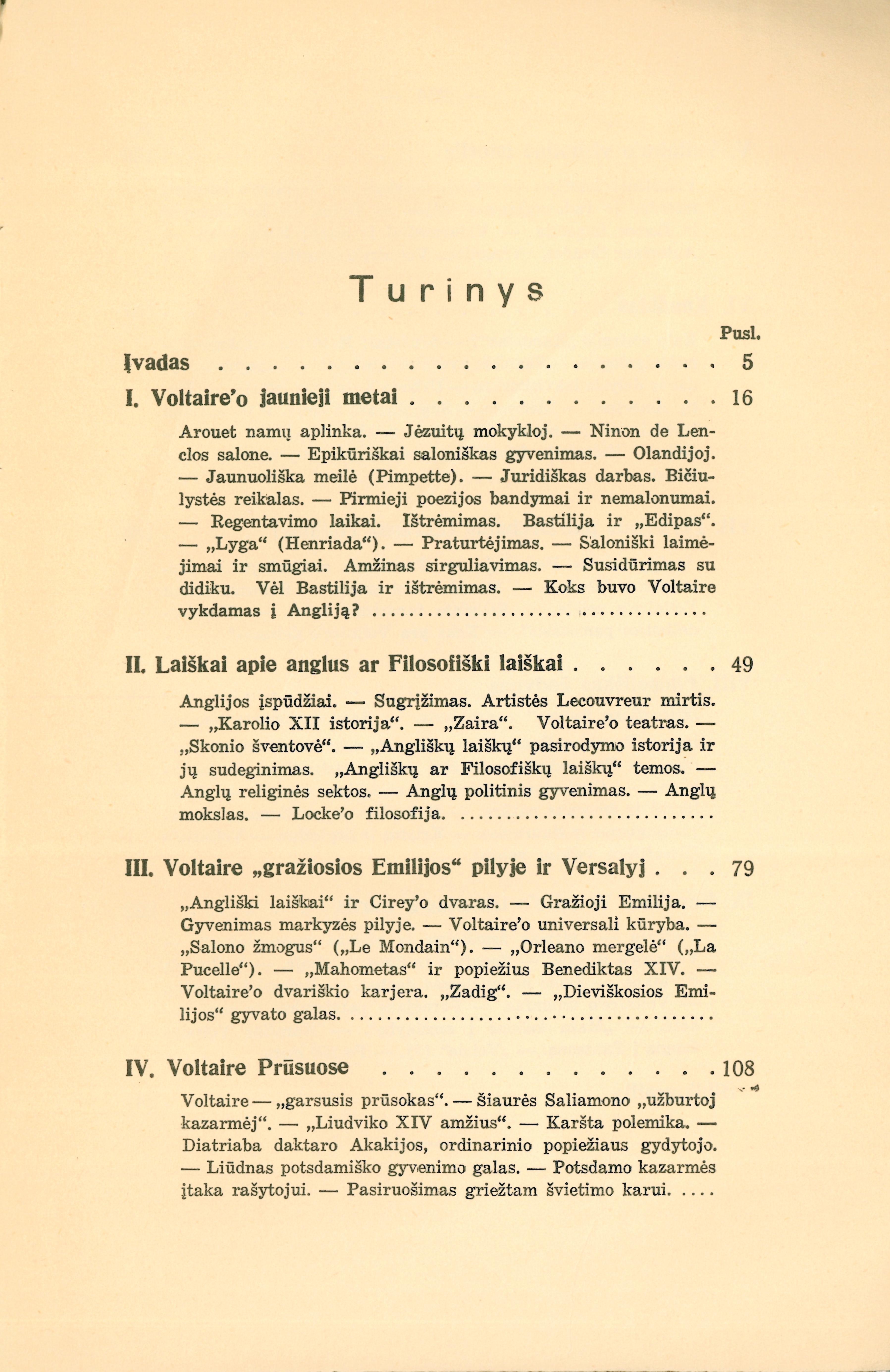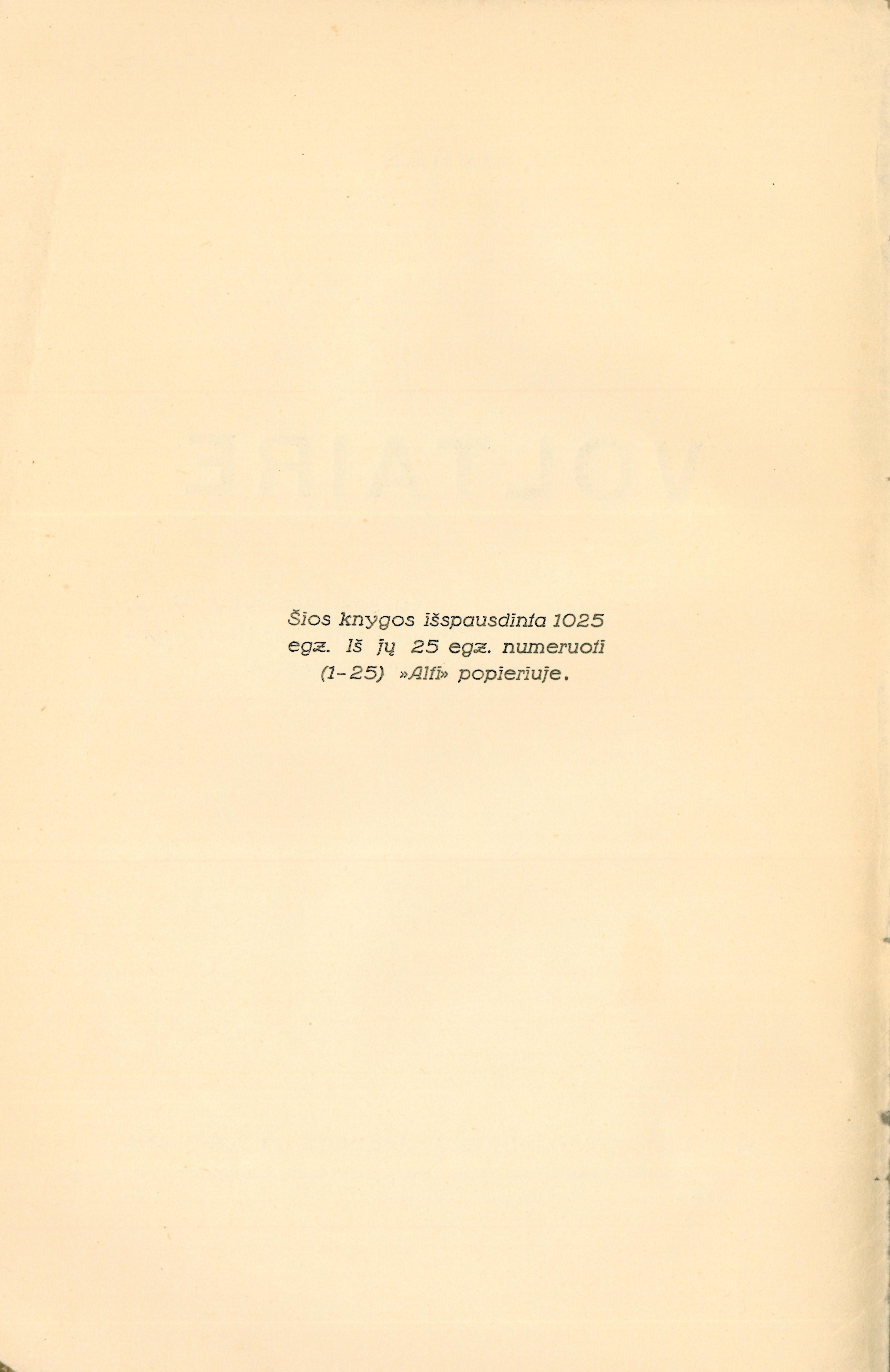 | Antraštė | Voltaire. Kursas, skaitytas V[ytauto] D[idžiojo] universitete per 1930 metų rudens semestrą / V. Dubas. – Kaunas: [VDU Humanitarinių mokslų fakultetas], 1932. – 254, [14] p. (Humanitarinių mokslų fakulteto raštai, kn. 10) [lt] |