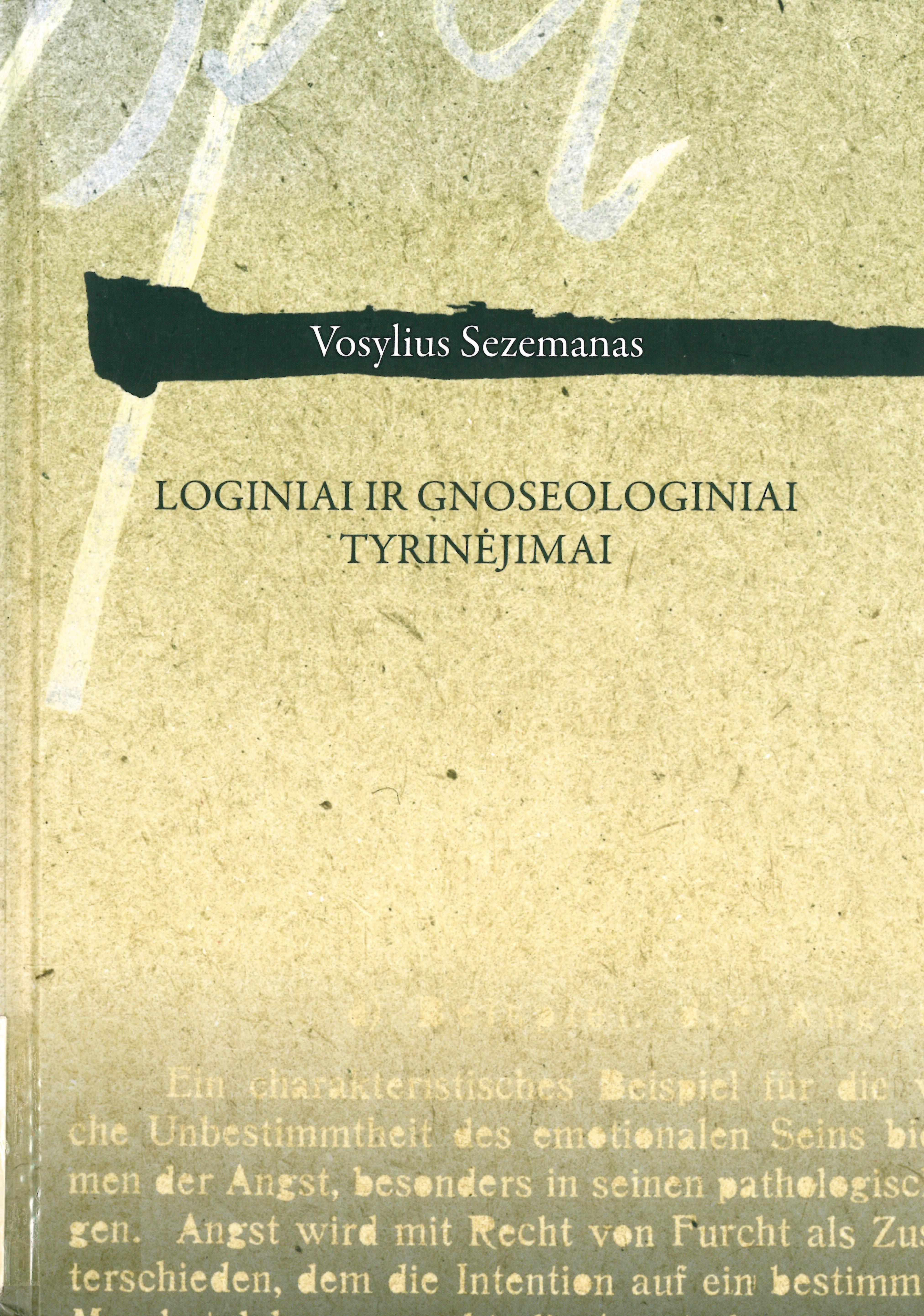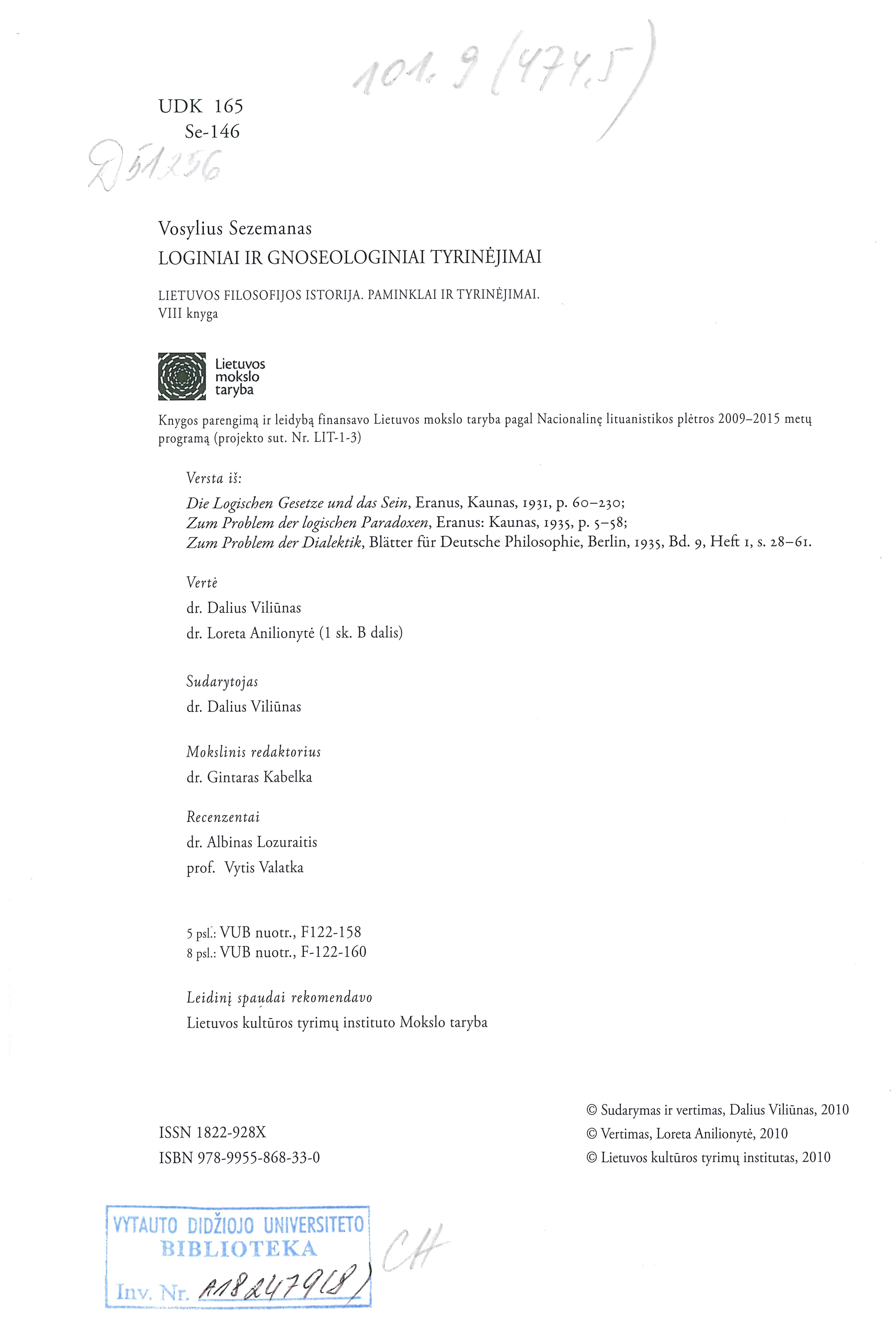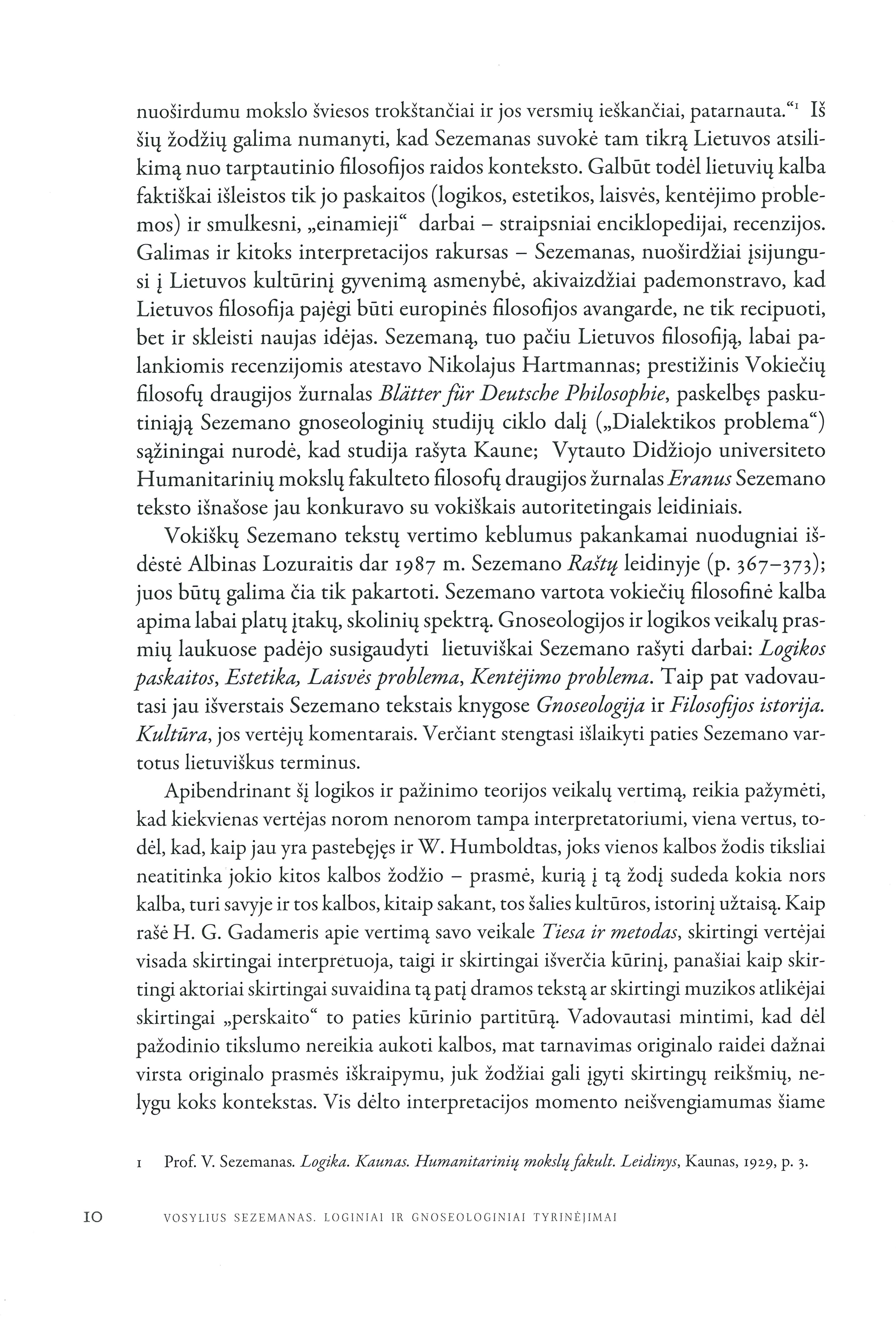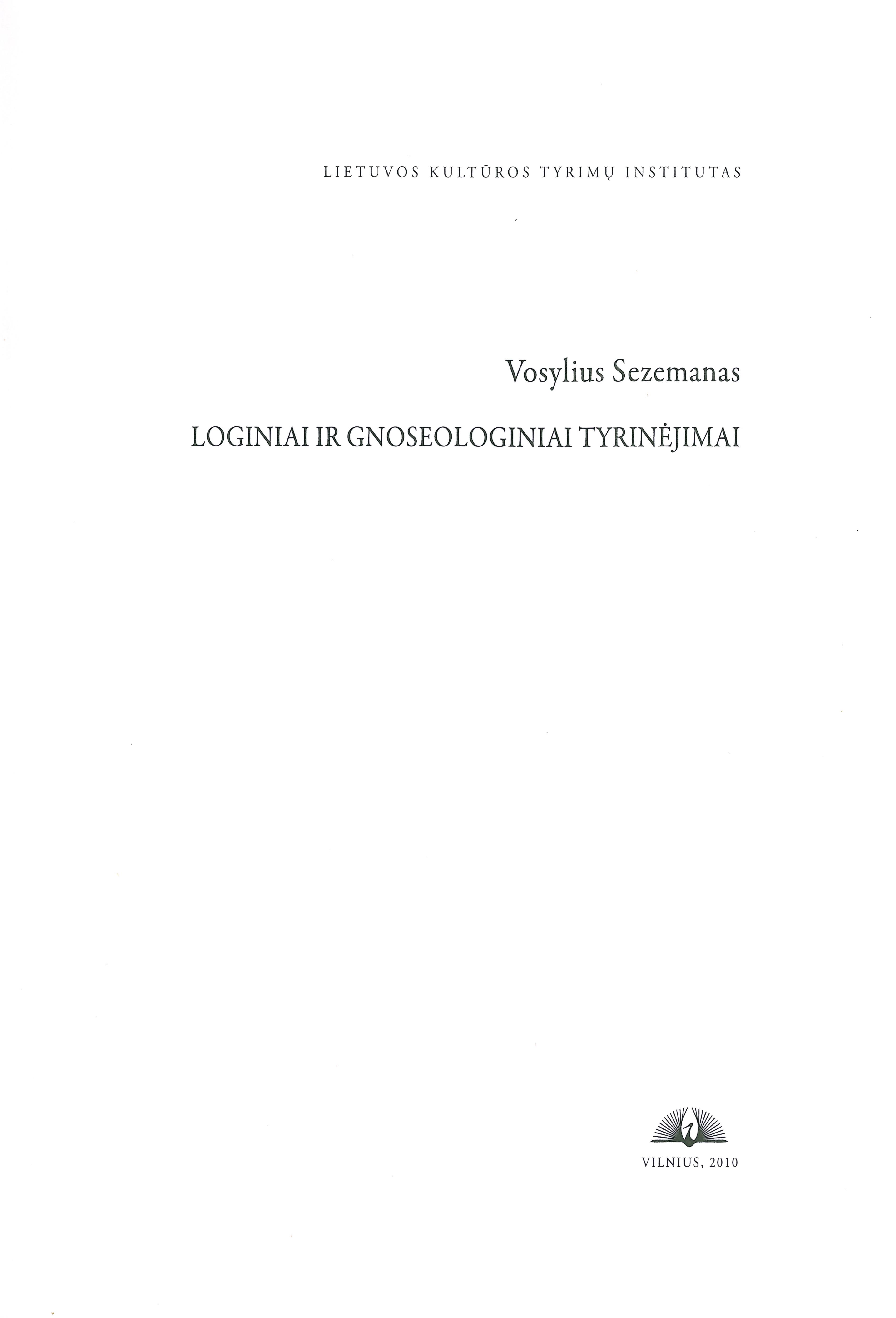 Loginiai ir gnoseologiniai tyrinėjimai / Vosylius Sezemanas ; Lietuvos kultūros tyrimų institutas. – Vilnius, 2010. – 215 p. : iliustr. – ISBN 9789955868330.